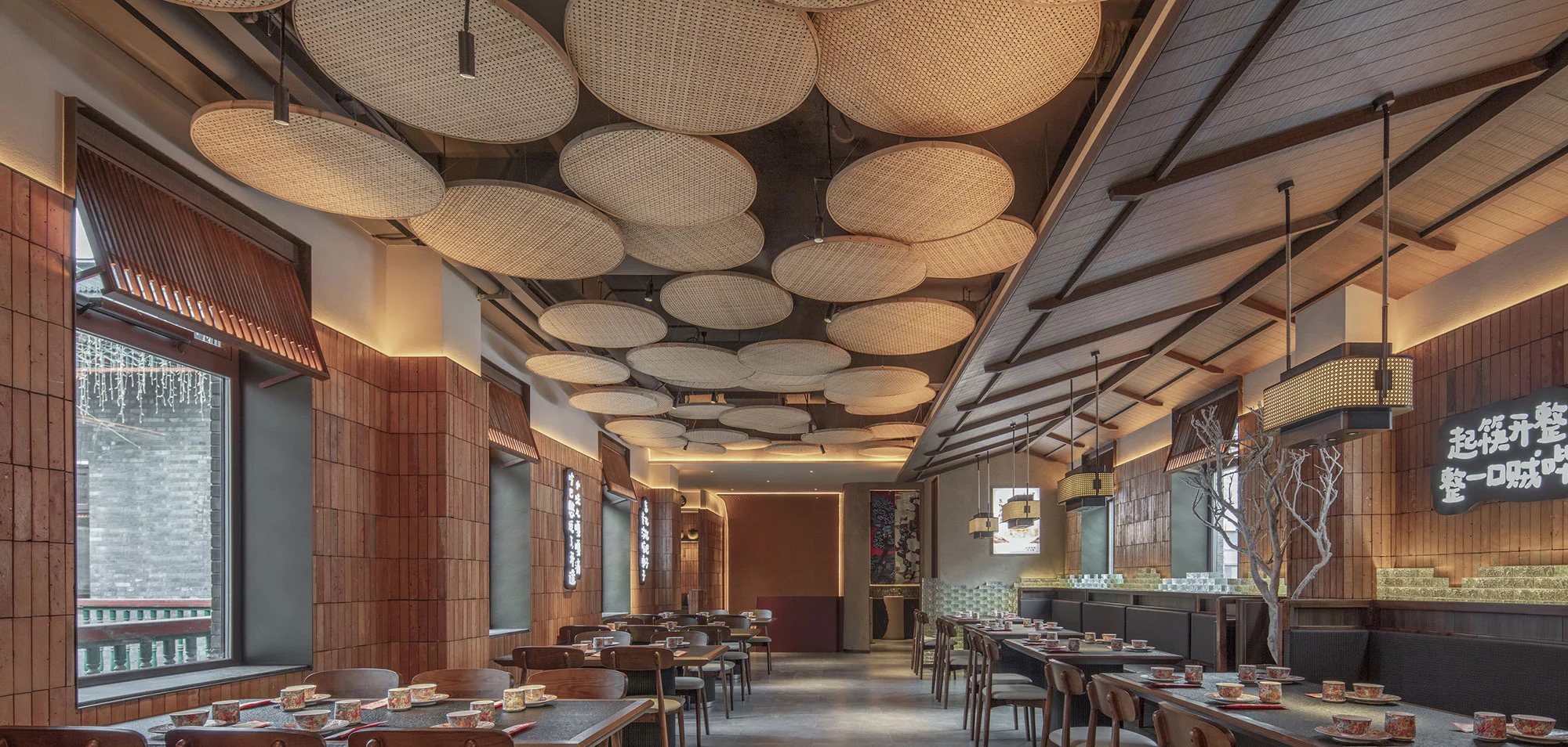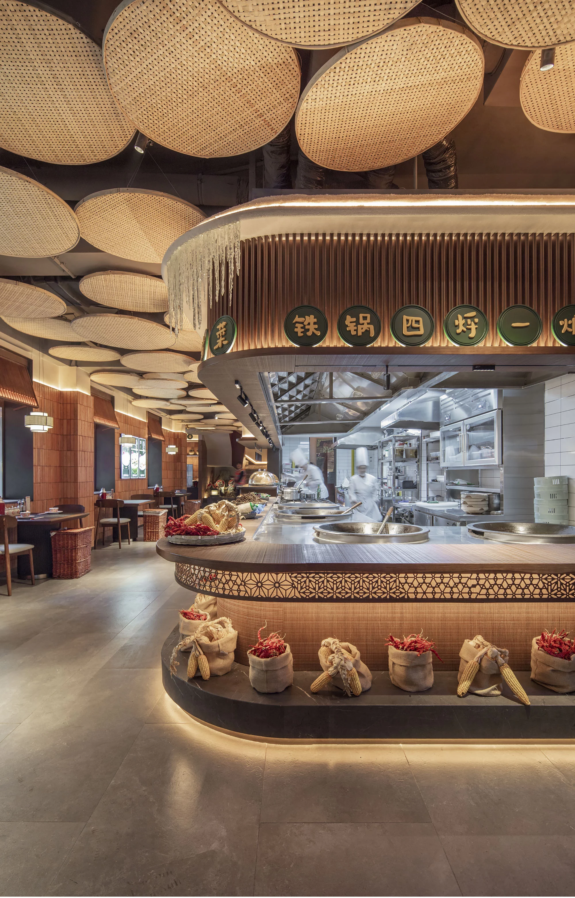 徜徉在老街,触摸时间的留痕,远离城市的喧嚣,便且暂归乡野,拥抱北方春的希望与冬的凛冽,走进新农村的烟火,品味一场舌尖上的盛宴,让味蕾与乡情,碰撞出人生至味。满汉人家注重打造独特且充满新农风尚的用餐空间,门面以青砖为背景,采用灯笼元素,承袭了老街的故事感,玉米、红辣椒、高粱等乡村符号充斥整个装饰空间,体现了北方农村的豁达与热情,与农家味道、回归自然的品牌属性相得益彰。