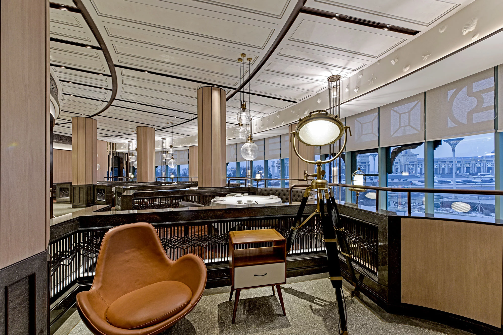 鱼乐轩——俄罗斯海鲜直供餐厅,是一家主营俄罗斯帝王蟹与龙虾的文化旅游主题餐厅。项目位于哈尔滨群力友谊西路和景江西路交汇处。作为离俄罗斯最近的省会城市,得天独厚的地理位置使其立足于无国界海鲜直供,保证了原料的新鲜。整体风格并没有完全以俄式风格为主体,而是在东方美学的基础上加以海洋的元素,形成具有专属性的风格空间。