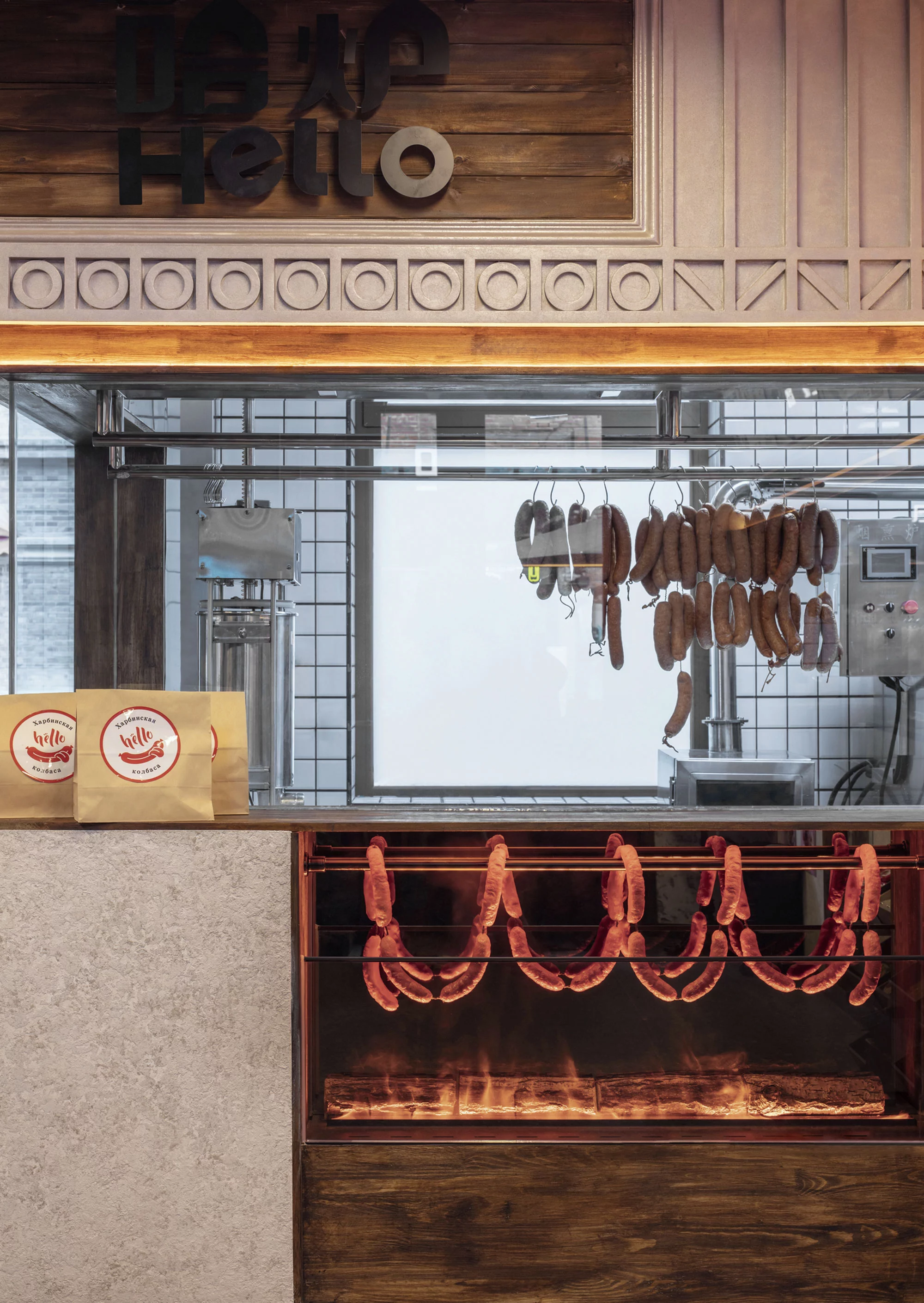 入口即化的是时代的低吟,更是匠人手中的时间与情感的结晶,购物区承袭历史建筑巴洛克的墙面风格,辅以暖光、明档,保持了空间的通透感,将匠人的匠心剖析于顾客眼前,以木柴、红肠烤炉和木框货架来营造原汁原味的制作氛围,从经典的红肠、鲜酿格瓦斯到地道的地方小吃,让人静下心来体悟一餐一品的匠心。