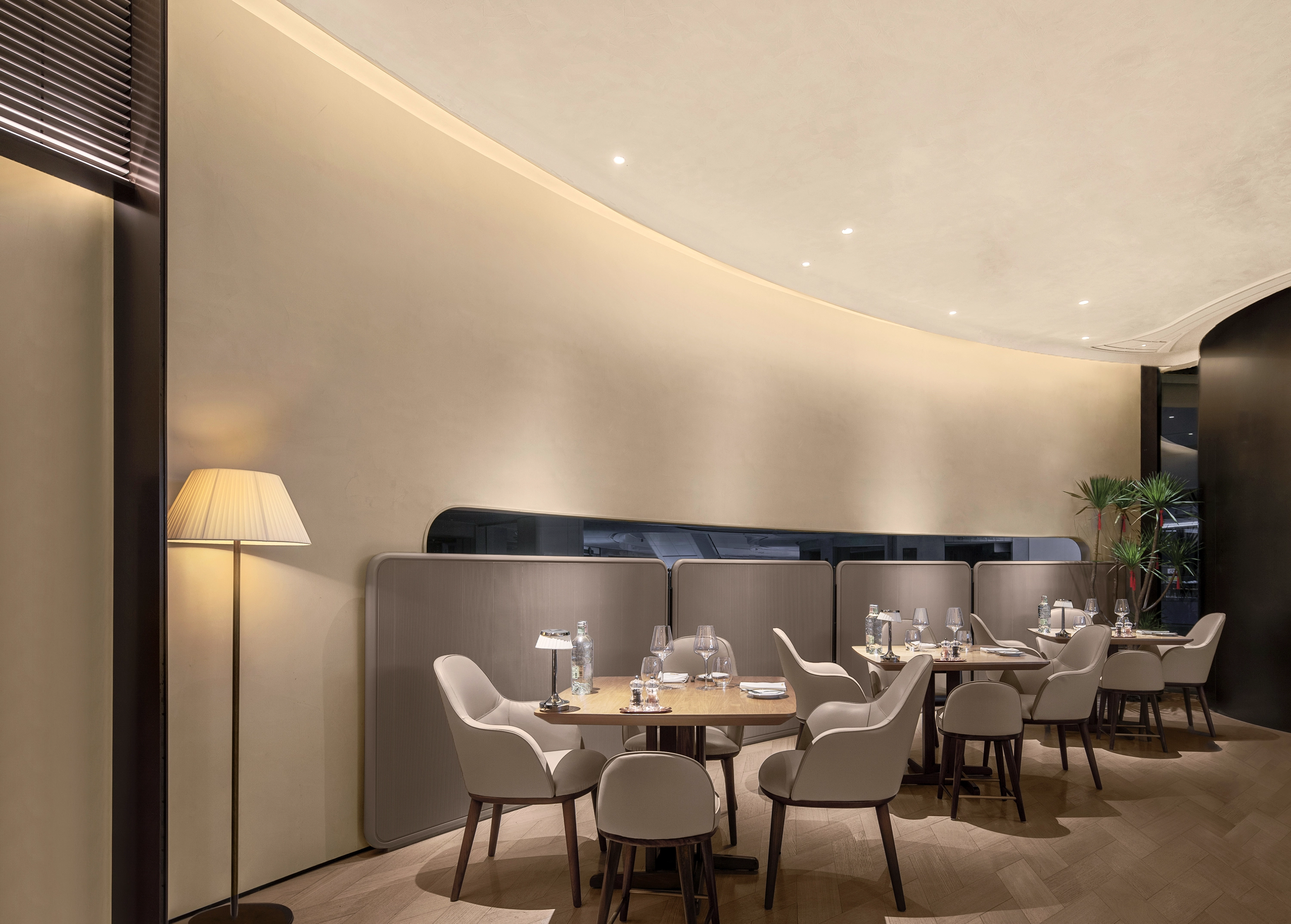 南昌红谷滩华润万象城内的牛排家餐厅,以"无国界现代美学"为设计纲领,通过空间叙事、功能逻辑与情感体验的三重维度融合,构建出兼具国际品位与地域温度的高端餐饮场域。
