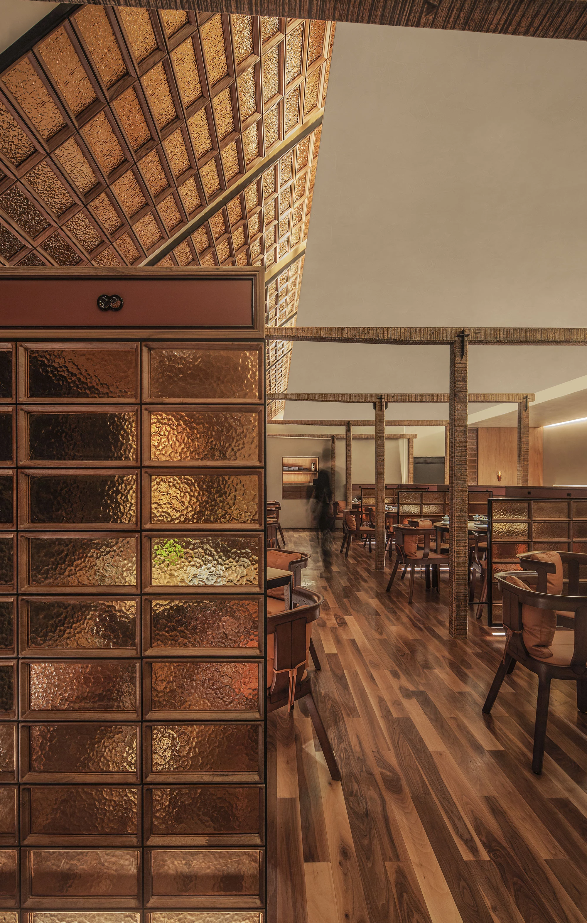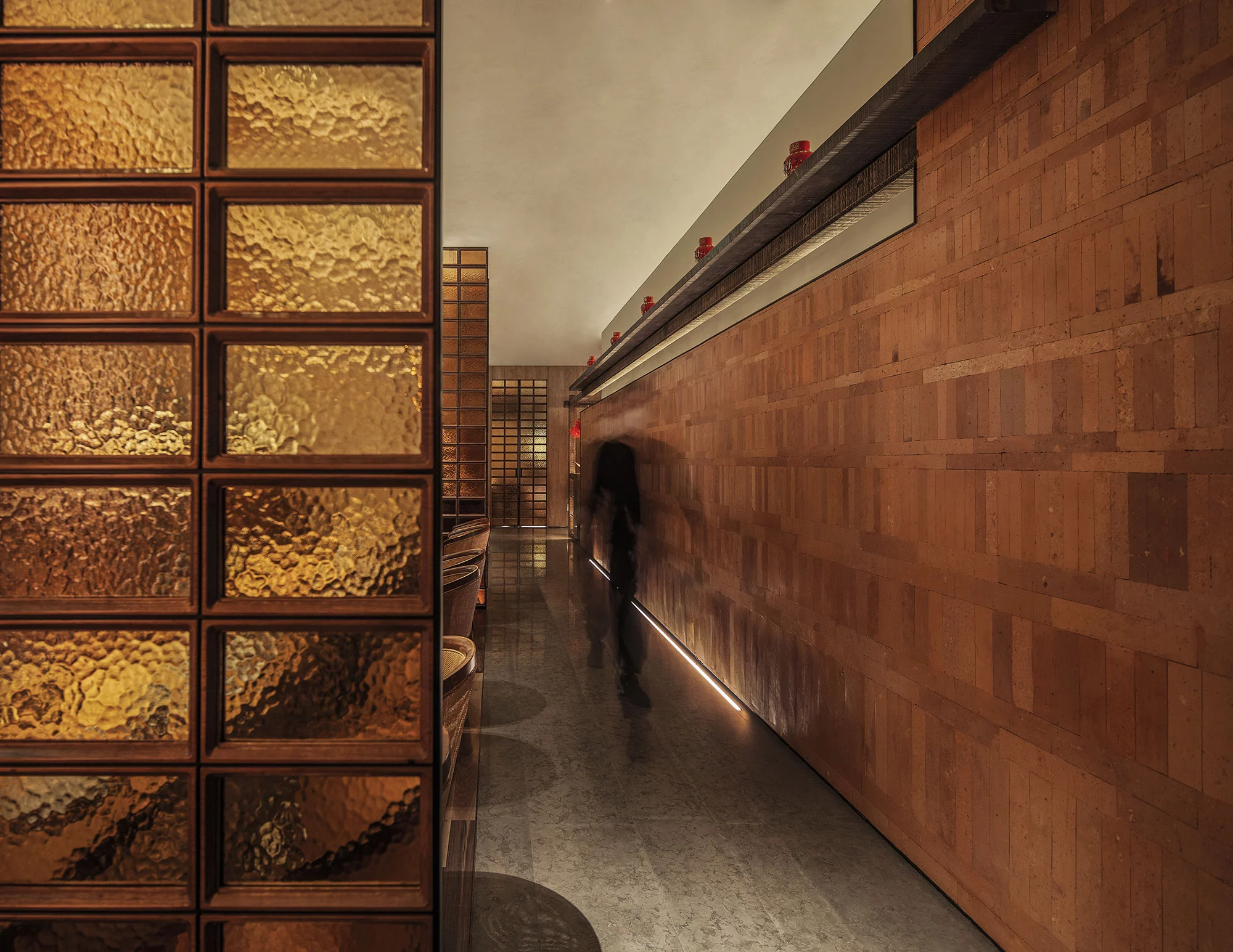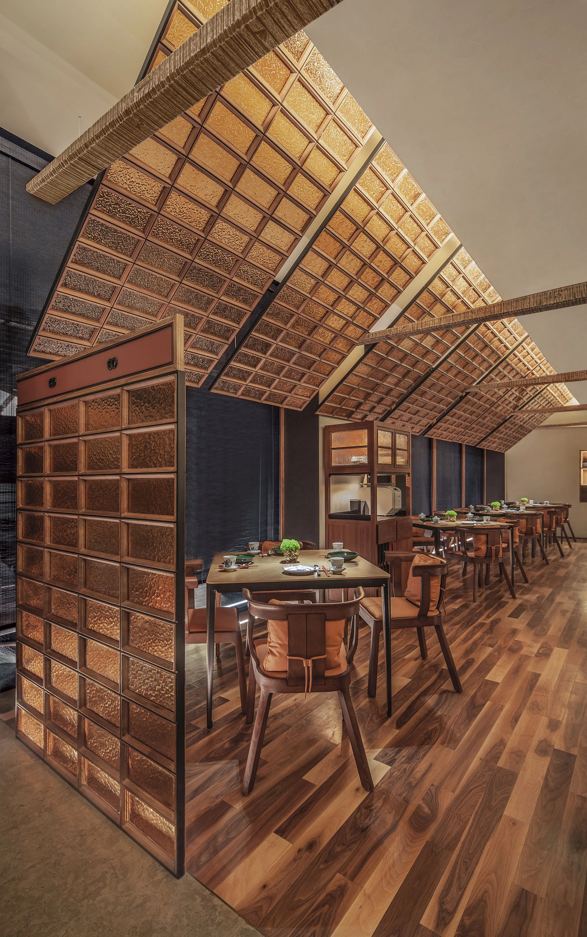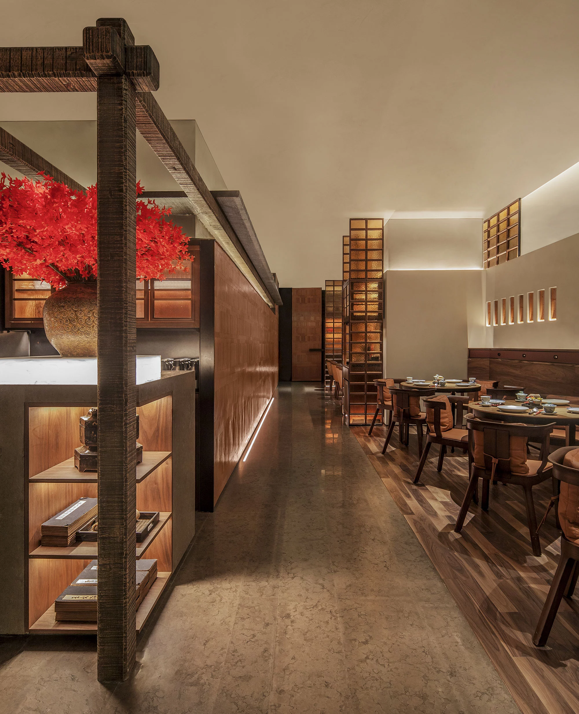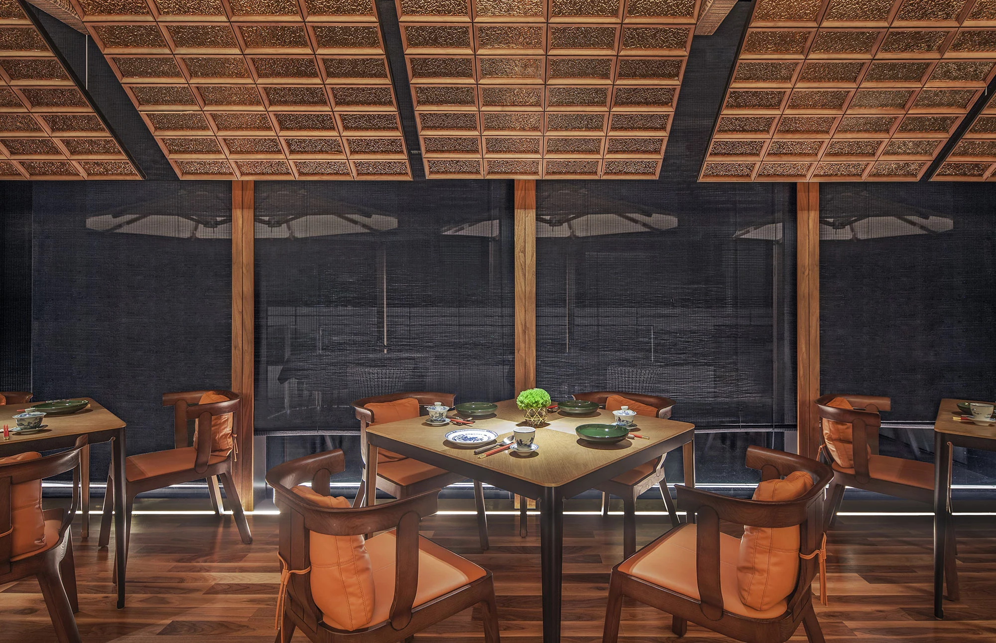 以中国古代建筑和传统文化为基础,运用现代设计理念营造出具有南京文化属性的空间意境。设计沿袭古制的表现形式,以平凡之物造境,触发全新感受。灯光焦聚在空间尺度与感知上力求平衡,营造出舒适的用餐氛围。