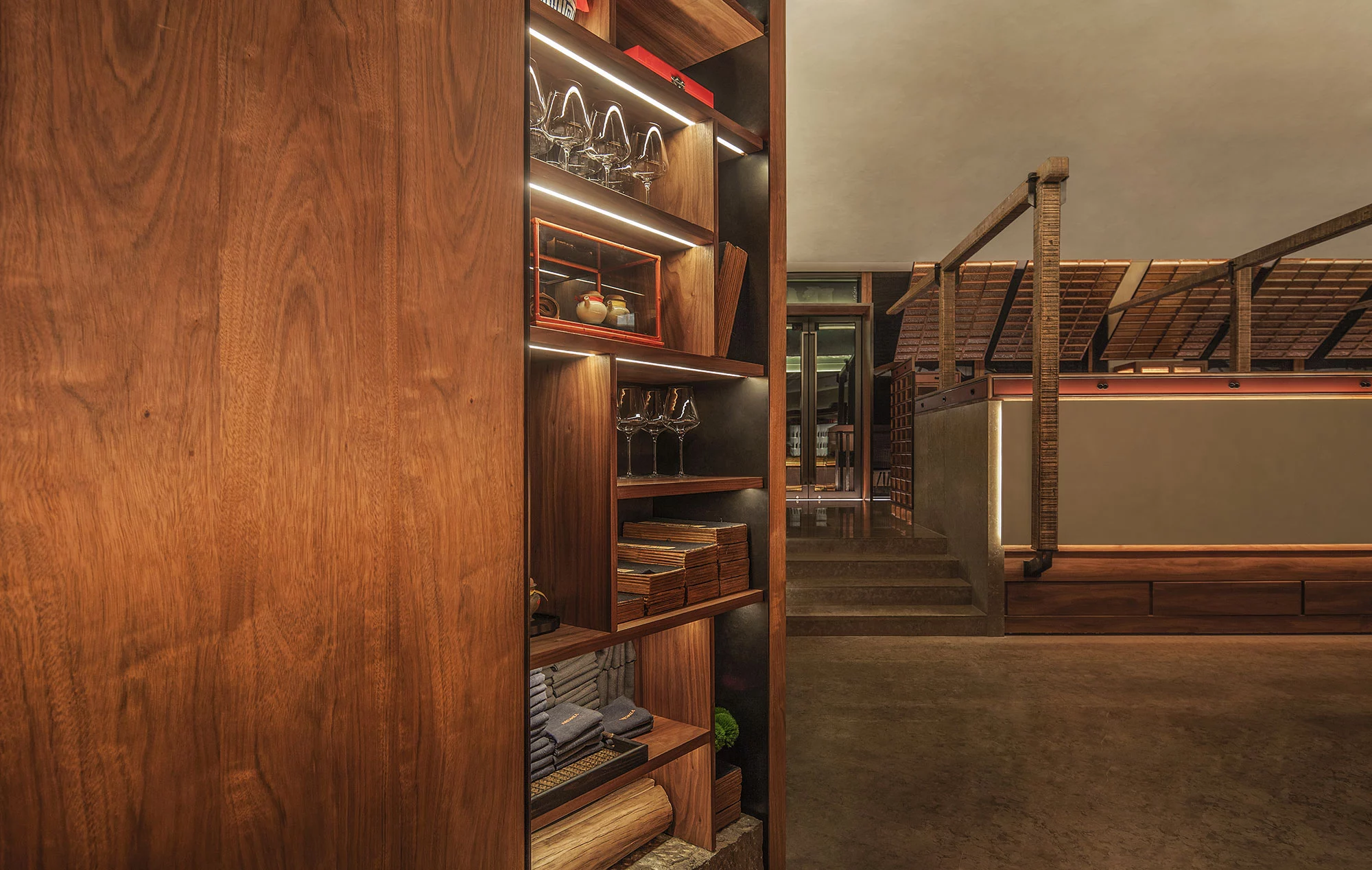 顾客可以在这里与朋友家人共享美食,畅谈一天的琐碎故事。这种人间烟火气的氛围可以让顾客感受到温暖和舒适。南京隐厨设计旨在通过融合古代建筑和传统文化元素,为顾客提供愉悦的用餐体验。