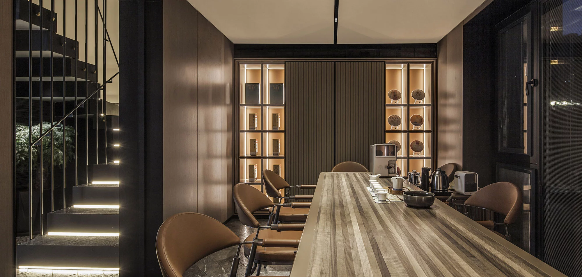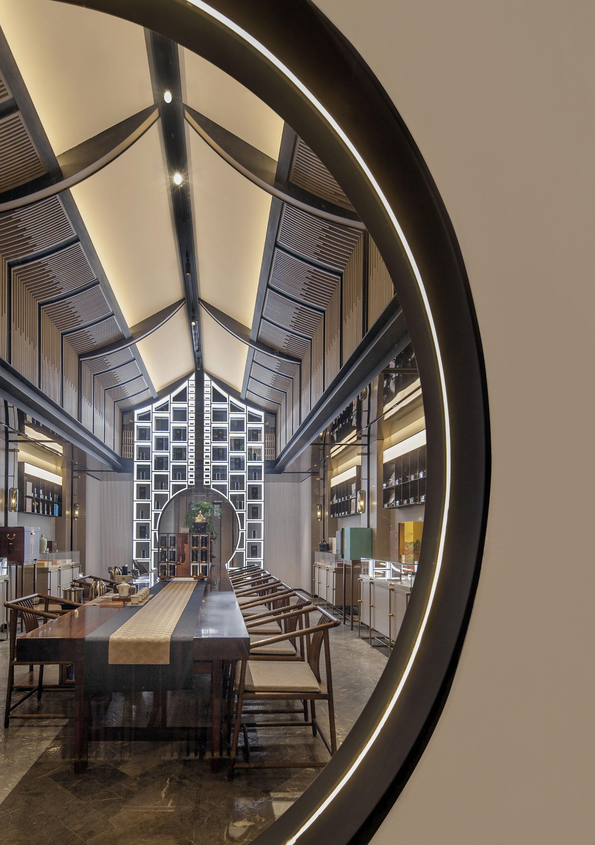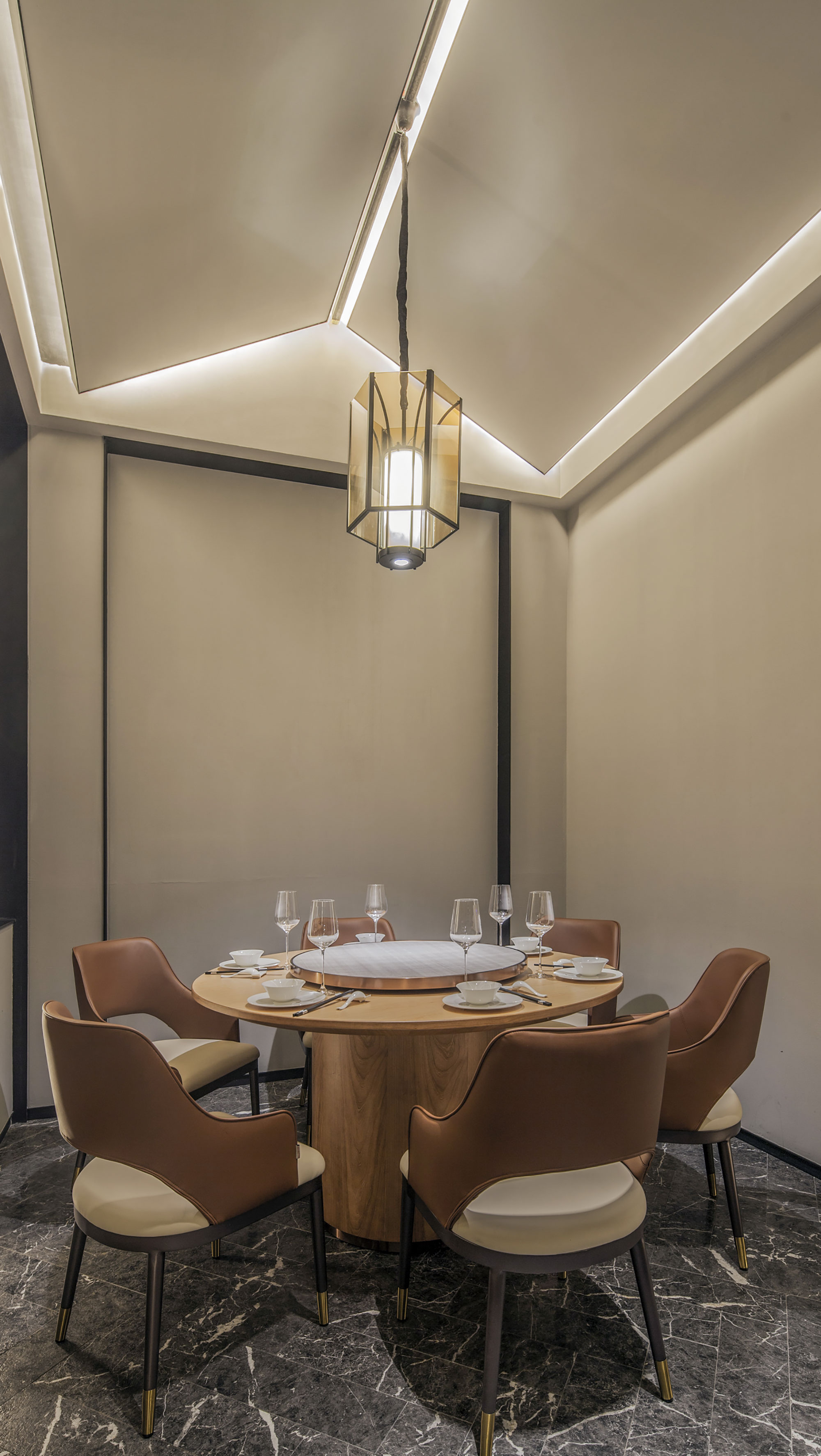 茶楼的风格多样,但以中式风格最能展示茶馆之神韵,以高空间,大深度的表现手法深化设计。材料一般以天然木材为主要装饰材料,保持材料的原始纹理与色泽。同时色彩使用得当,可以突出气氛。此方案以中式轻奢的风格让顾客在感受茶香的同时又不失场景带来的安逸。