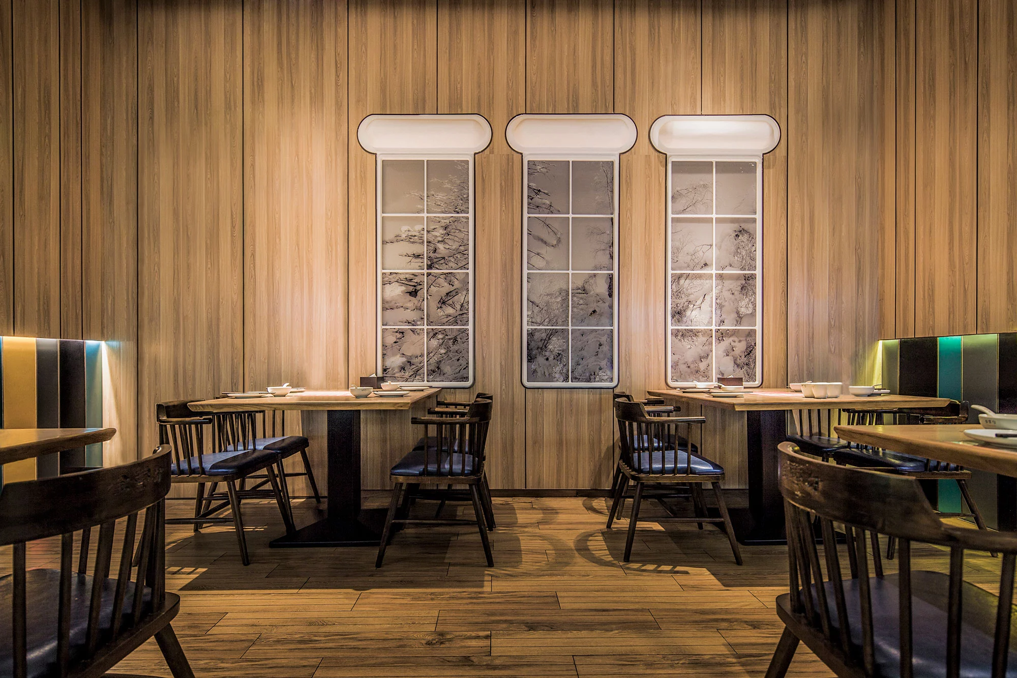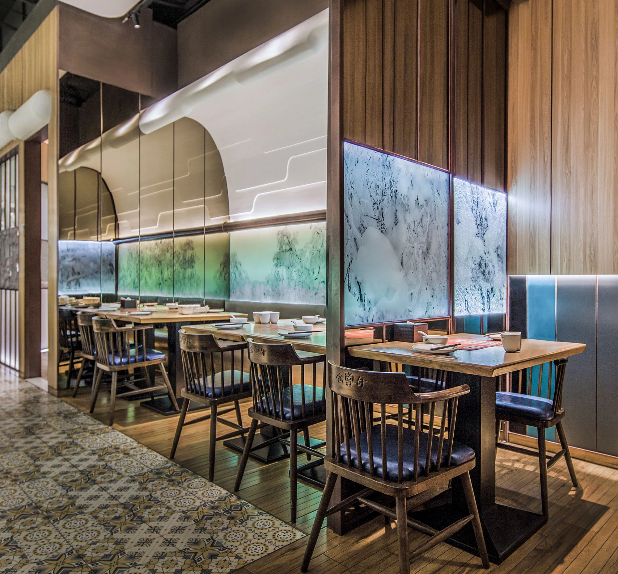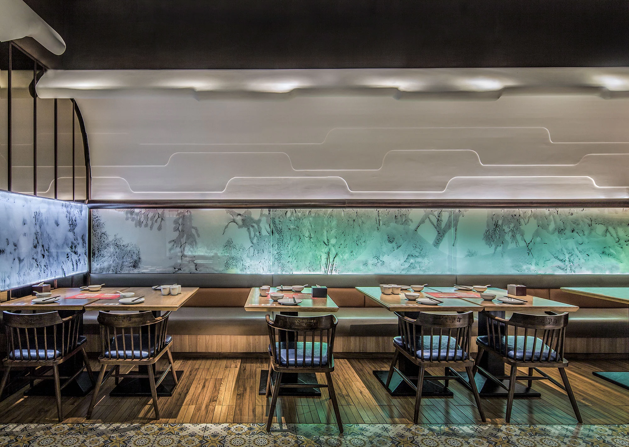 冰雪元素的运用为空间增添了一笔自然的含蓄,使之相得益彰。就餐氛围与商品的融合,让食客们有机会在北方的冰雪空间中来一场舌尖奇遇。