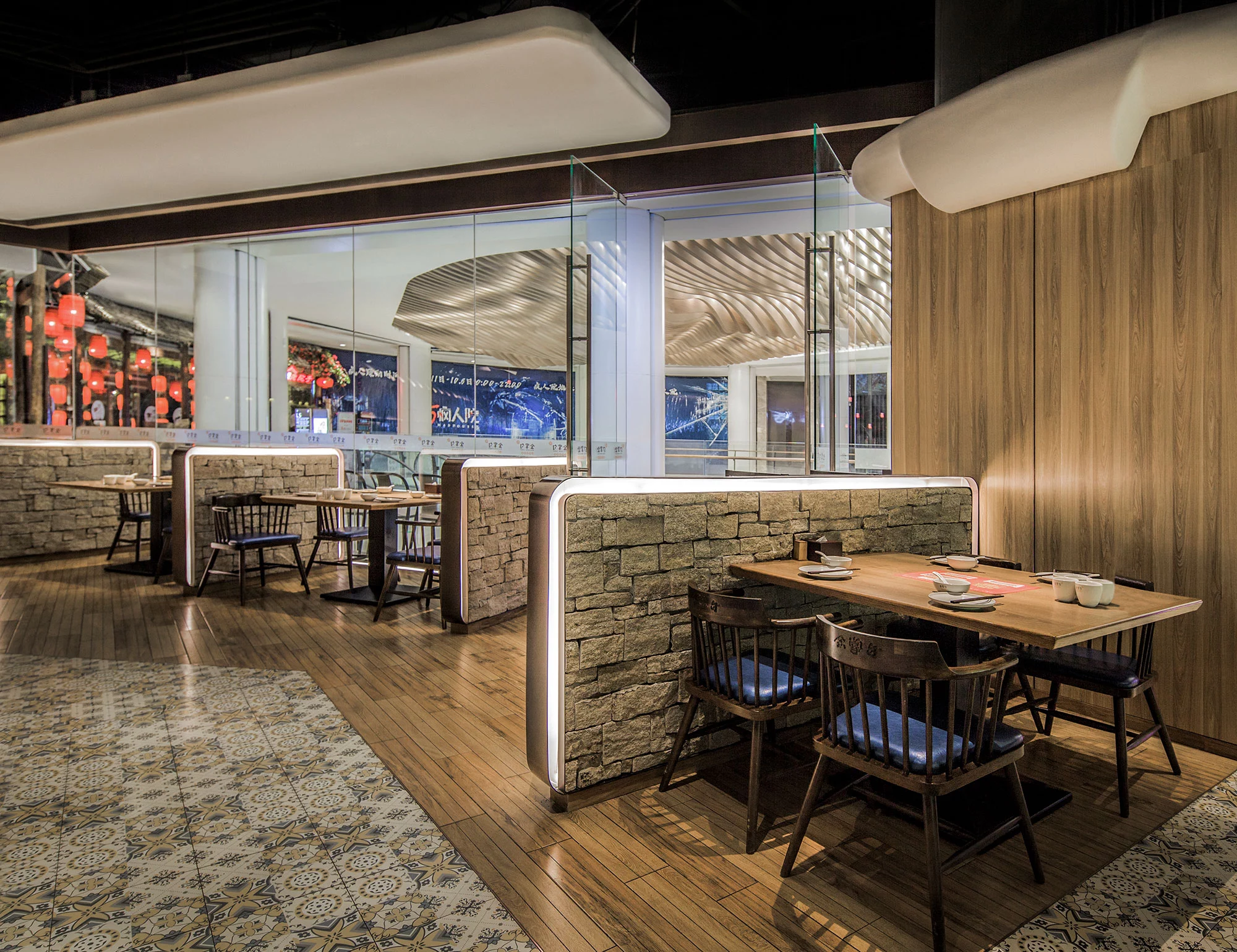 “金掌勺”位于河北省石家庄万象城购物中心,空间中借用自然的印象来感受北方的氛围,为空间注入新的生命。