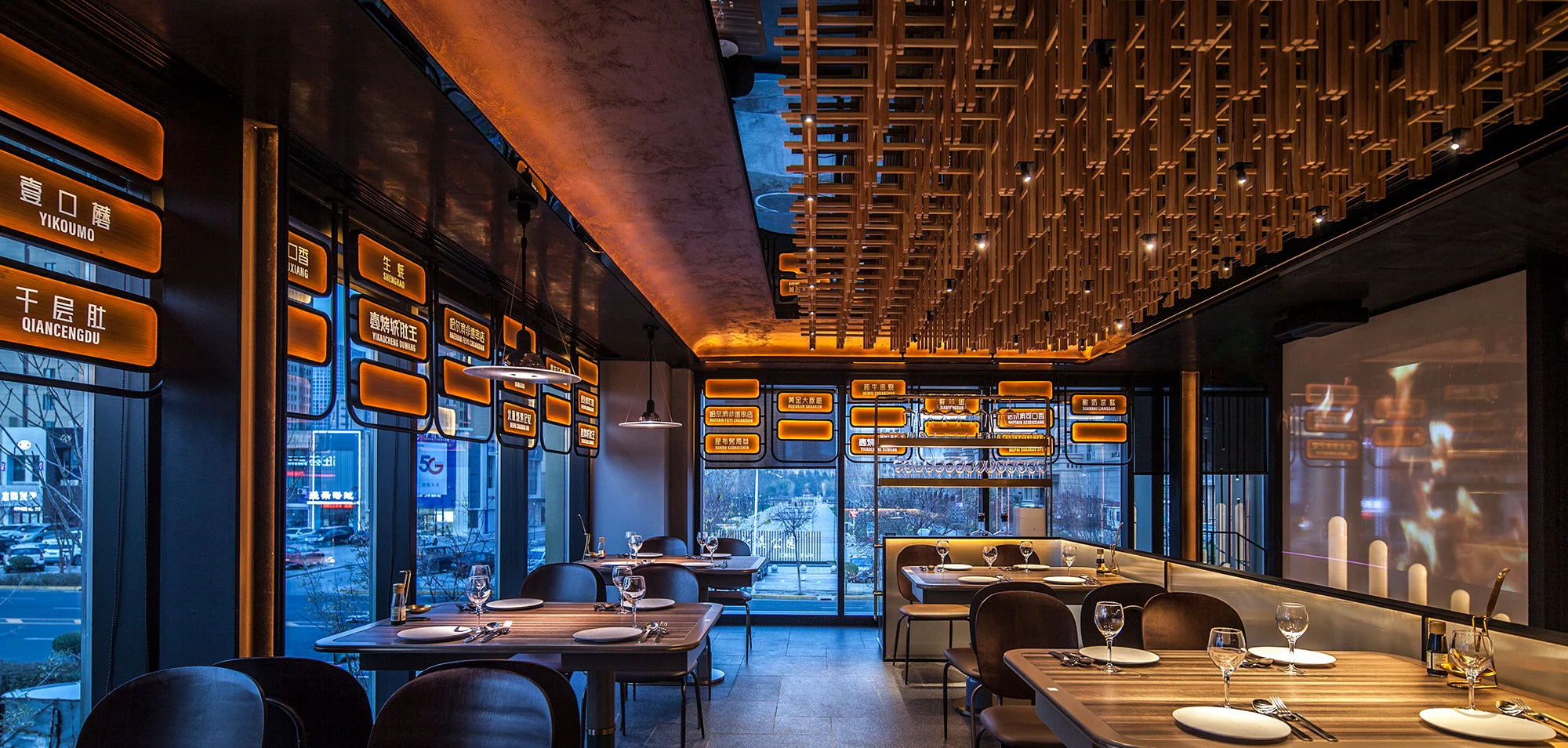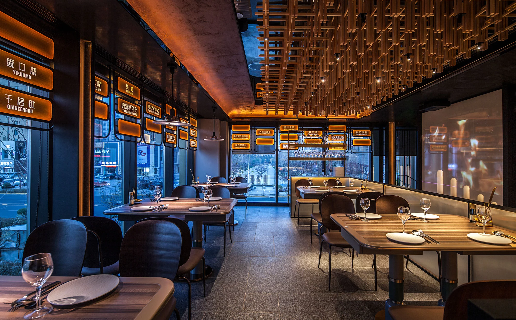 红之典雅,光之幻影;红色与灯光的融合带给人们时尚魔幻的气息;光影与明暗塑造着丰富的色彩层次,呈现细腻的光韵质感;既有沉稳之质,又有流转的温度,一种于平静中暗自涌动的美在空间中流转……