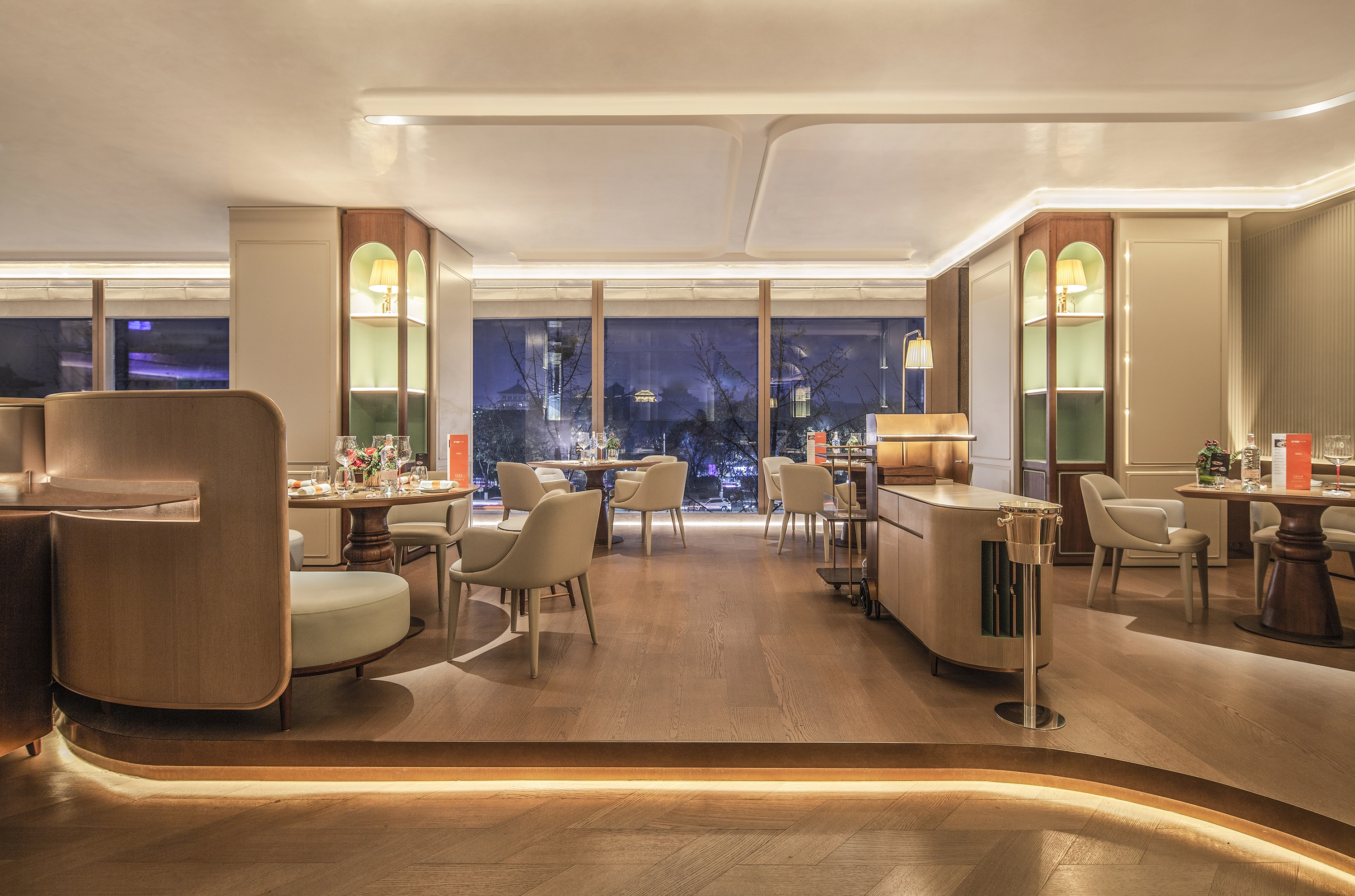 基于地理位置的特殊性,面对着古城墙、历史文化等因素,给基础功能与历史文明的结合提供了可能。空间布局随着时间流与空间场而形成,整体采用弧形设计形态,弧之美充斥着整个空间。置身其中把人的视线引向室外,透过窗能看到古老的城墙,欣赏西安的悠久与历史,与古城产生交流。
