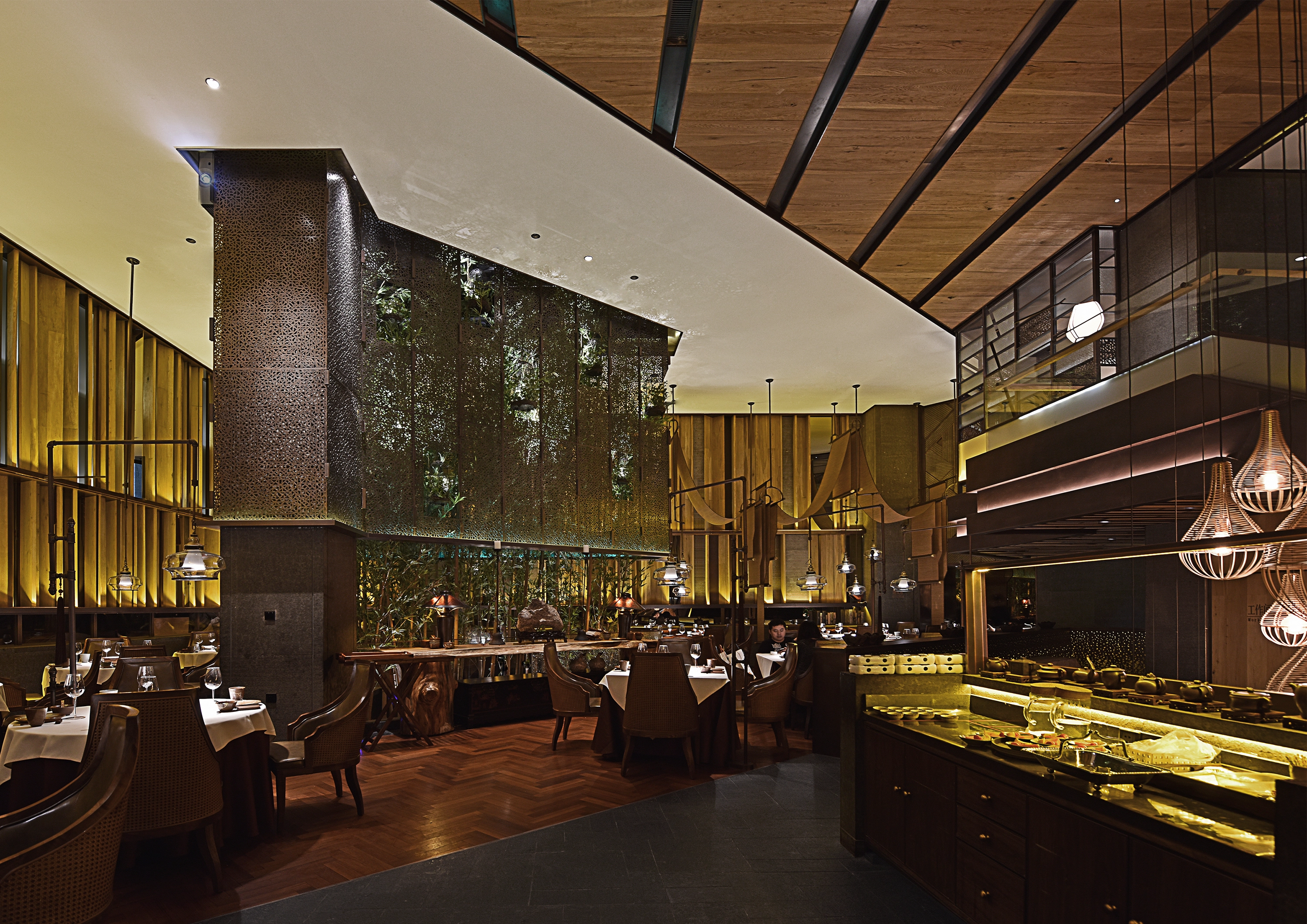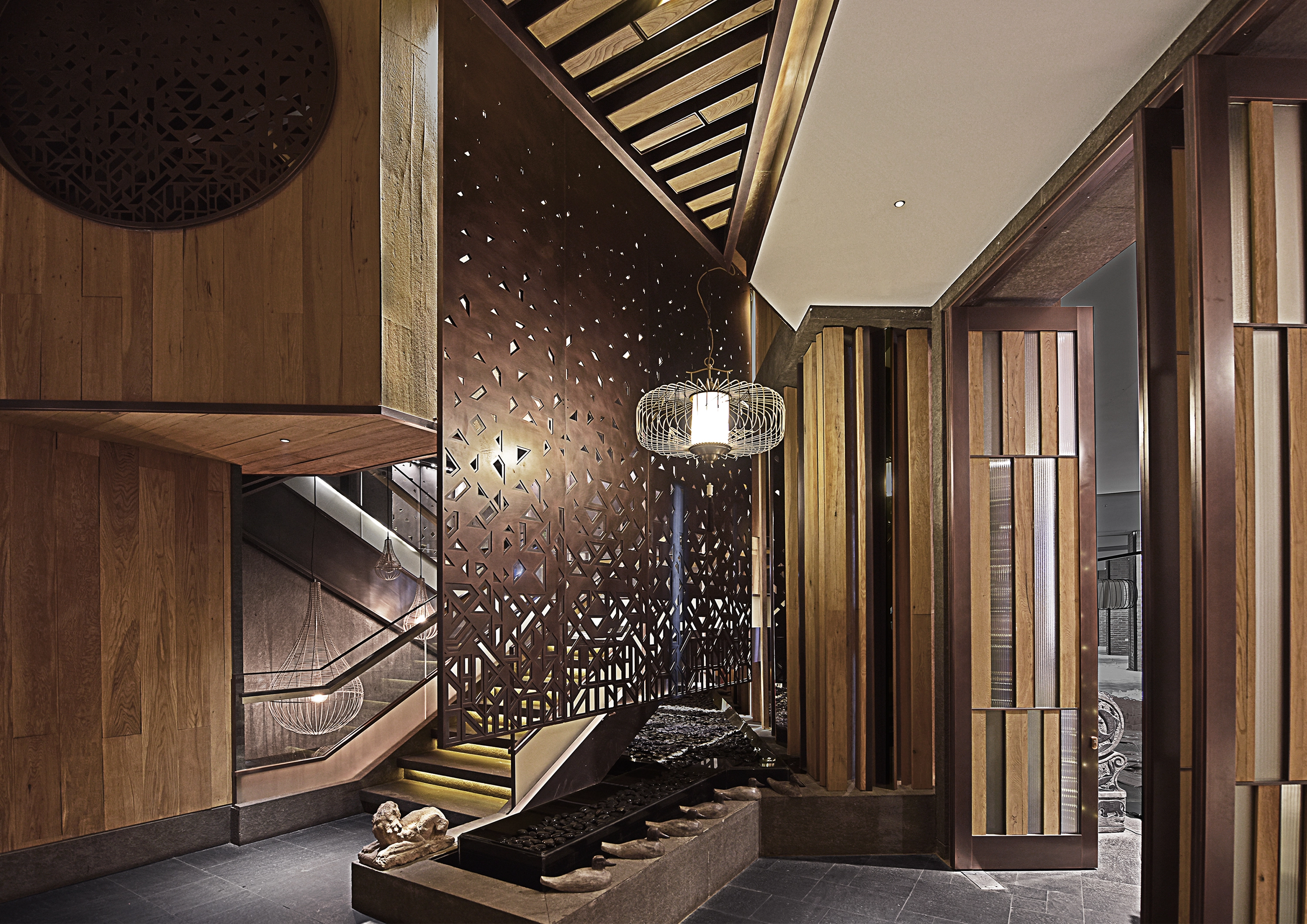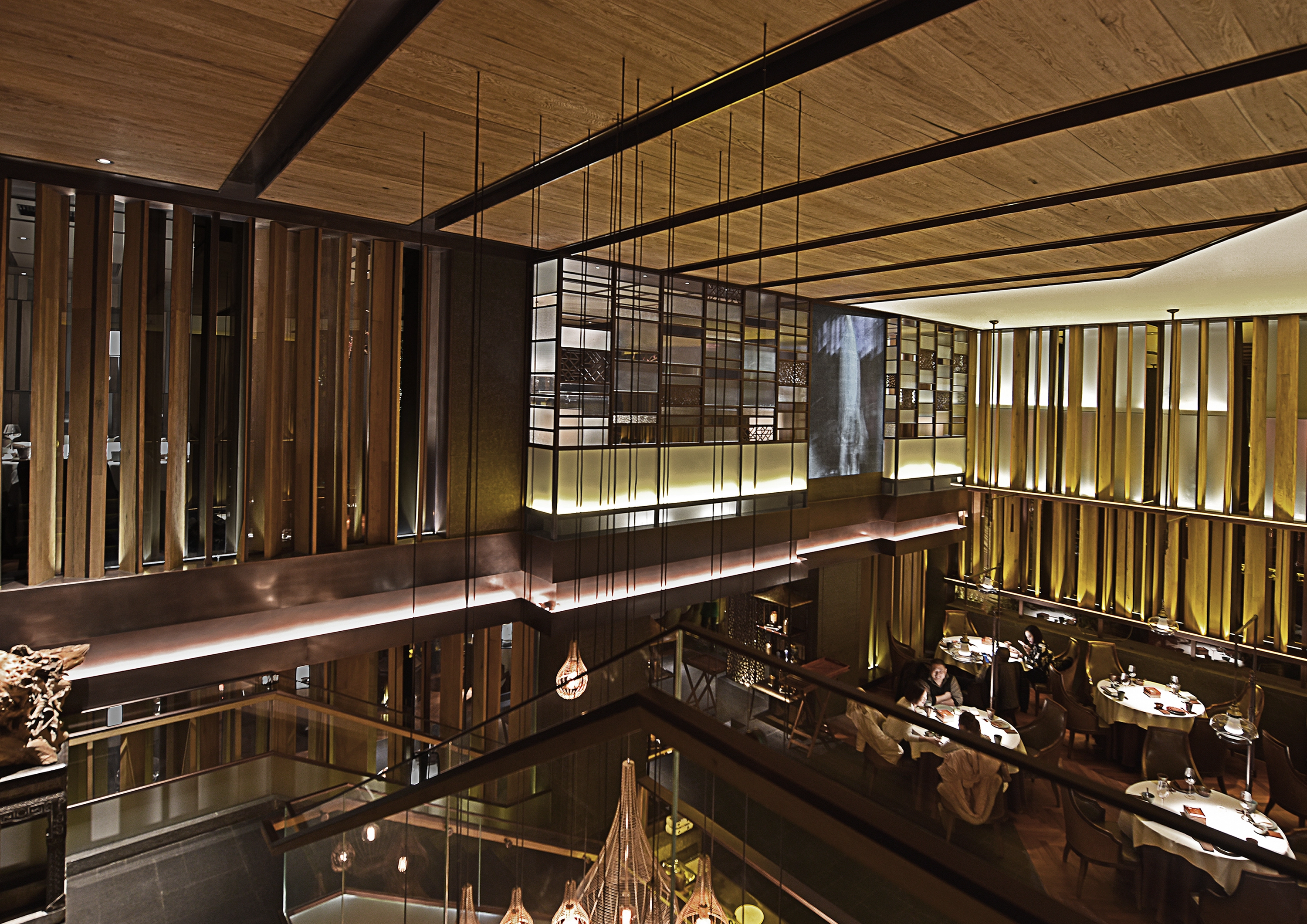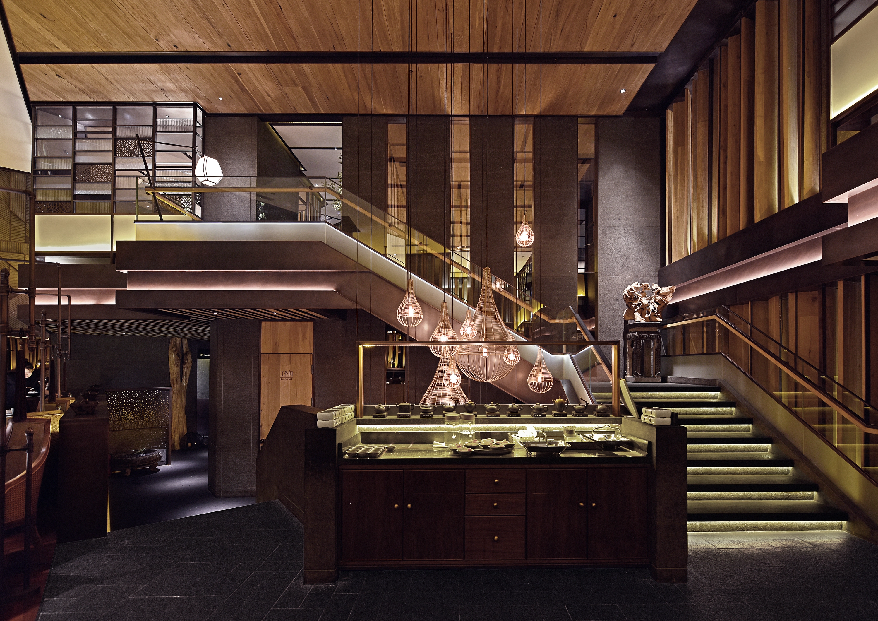 材质本身的色彩与肌理能使其空间渗透着自然的气息。内封闭合的空间经过光的渗透,减缓人们心里的压力。灯光的书写能雕琢出空间的味道。叠加和并置把空间的定义感性的组合起来。不同界面的起止点通过变化,来活跃视觉的观赏角度。婆娑的竹影、纵向的分割、斑斓的星光、悬窗的内外,情景的共荣,把空间的商业性质赋予人文故事,使其内不同位置的就餐者,都能感受和拥有空间所给与自己的那份独有温情,偷闲着城市的美好时光。