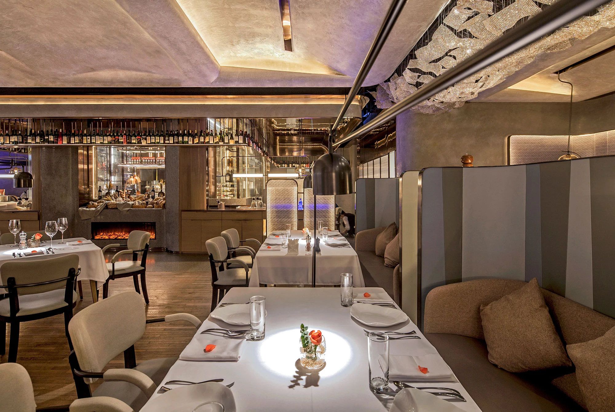 目之所及,以多变的曲线元素来柔化就餐氛围,消减石材与金属的硬度,视觉上内敛淡然,带来轻松惬意之感。刚与柔,契合空间调度,每一处皆是不凡。