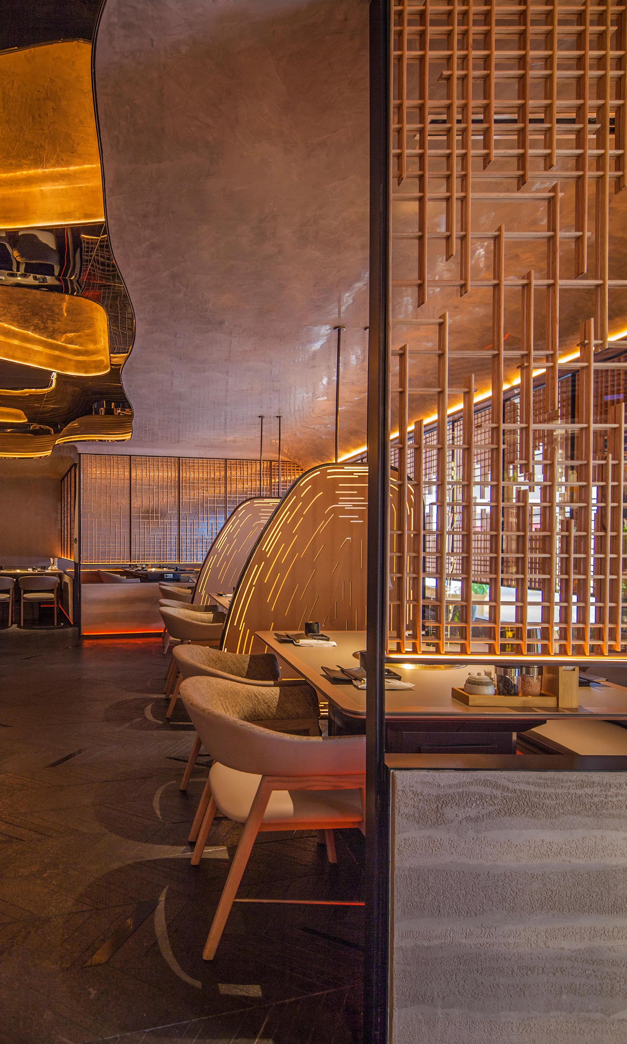夯土肌理透露出自然的朴素,彰显“日式风情”在现代设计的衬托下,传递别致的韵味,享受它独有的安逸。
