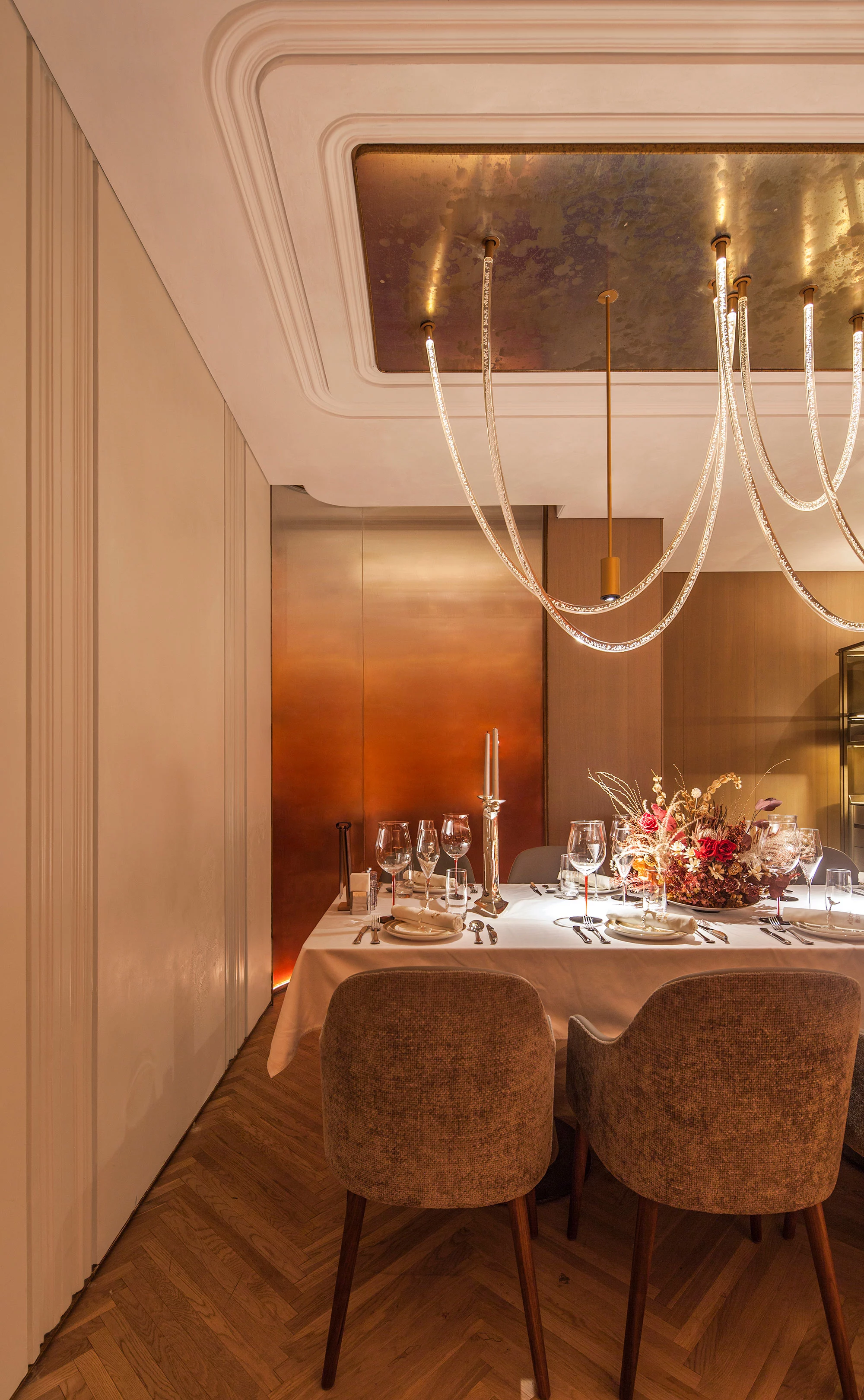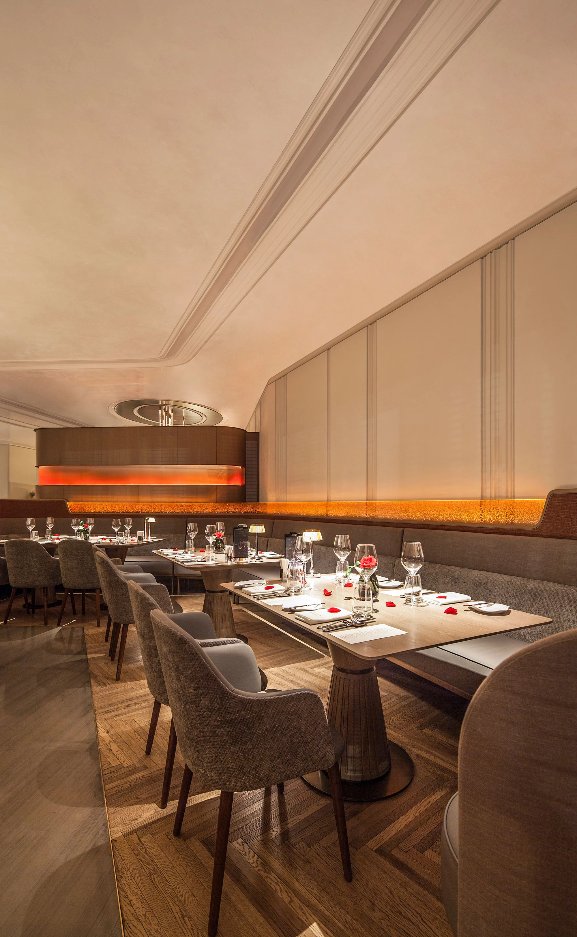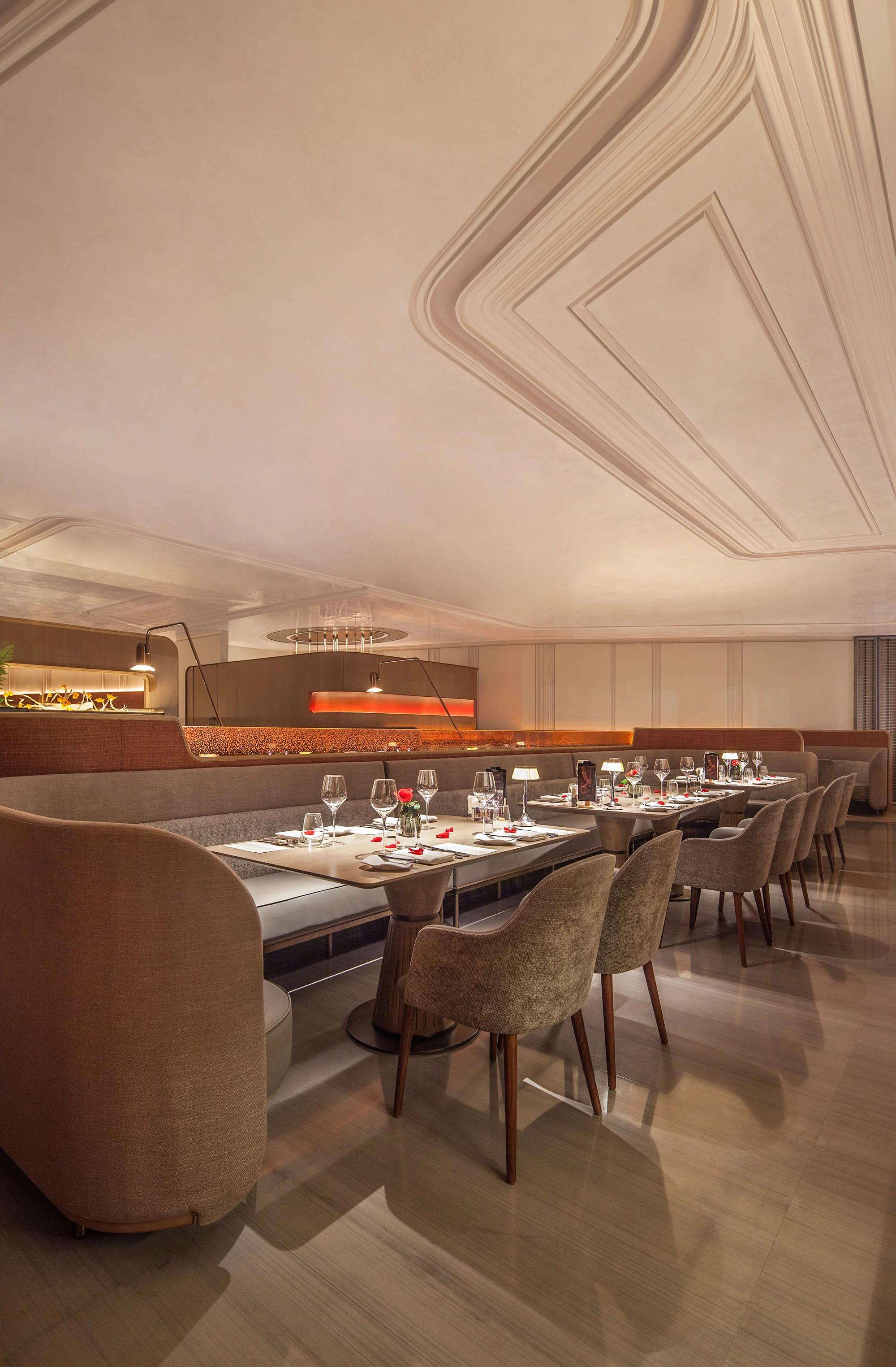 城市变迁的探索过程中充满体验感的空间具有令人向往的力量,它们将原本平凡的日常转化的充满异地特色,材质温润、色调柔和又充满活力,落地的玻璃幕墙围合出自然呼吸的内场空间,其内在是创造情感的视觉语境,温柔且优雅的诚邀客人共赴一场美食之约。