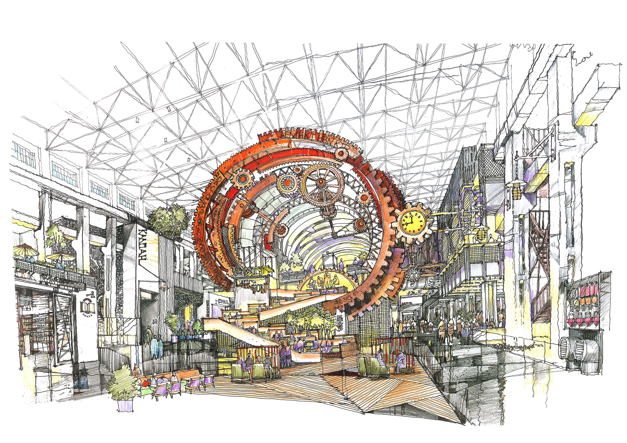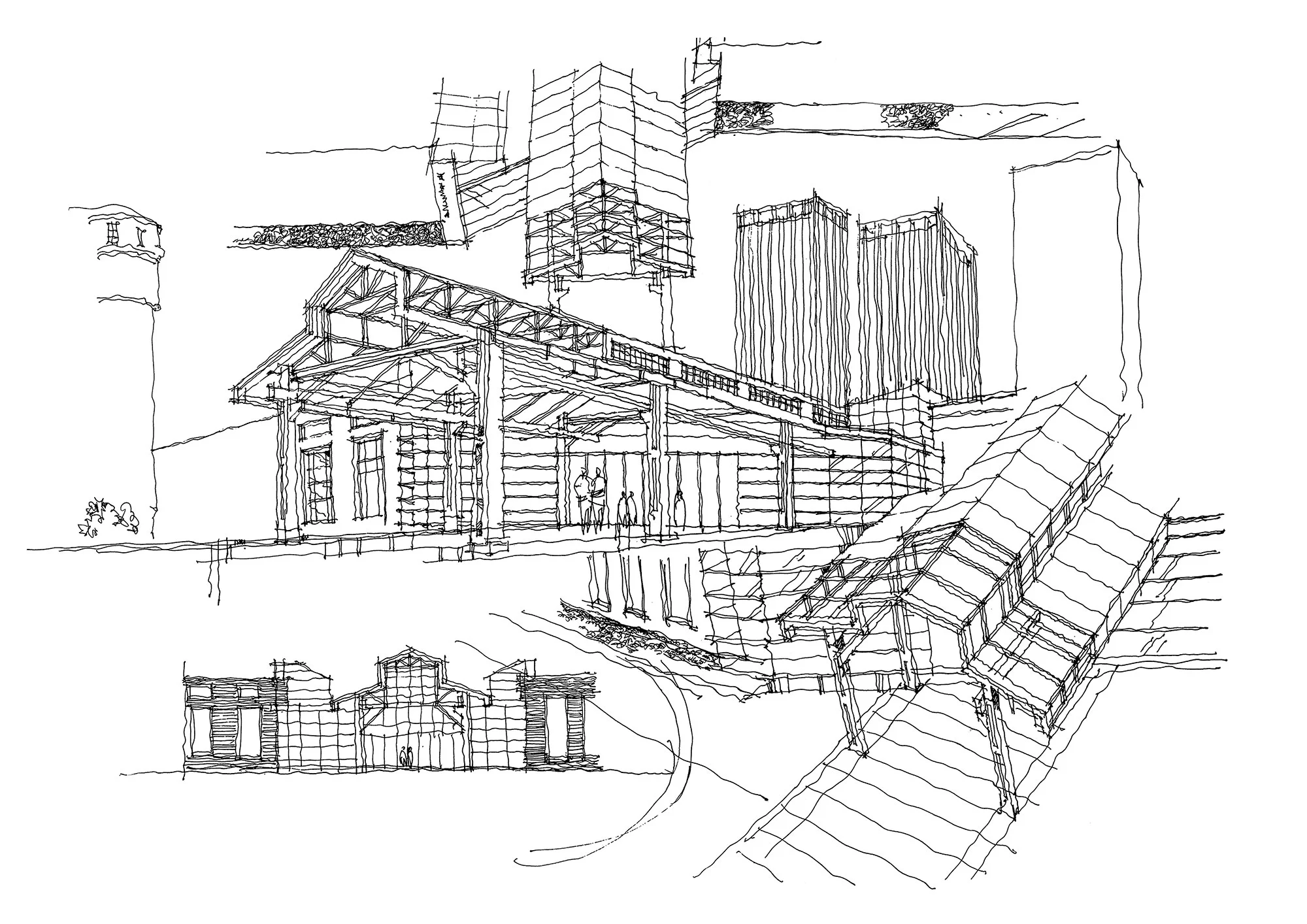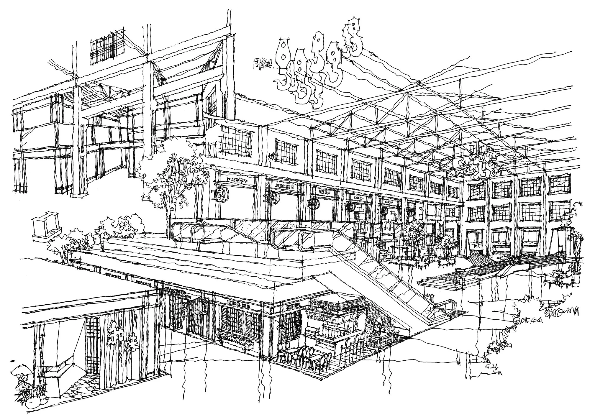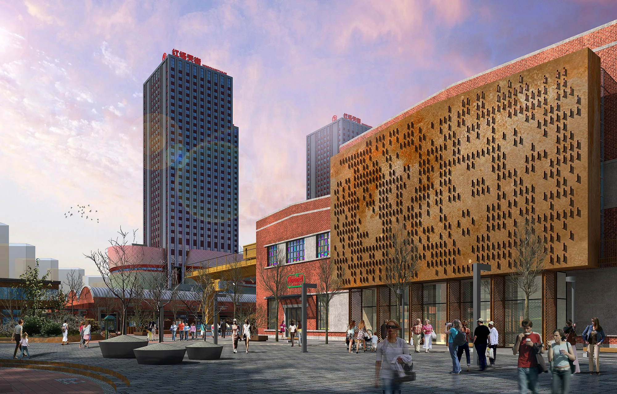 本次建筑设计原则上本着老的更老、新的更新,通过桁架结构及色彩有机的结合,为城市人们呈献一个优雅的文化艺术集群。