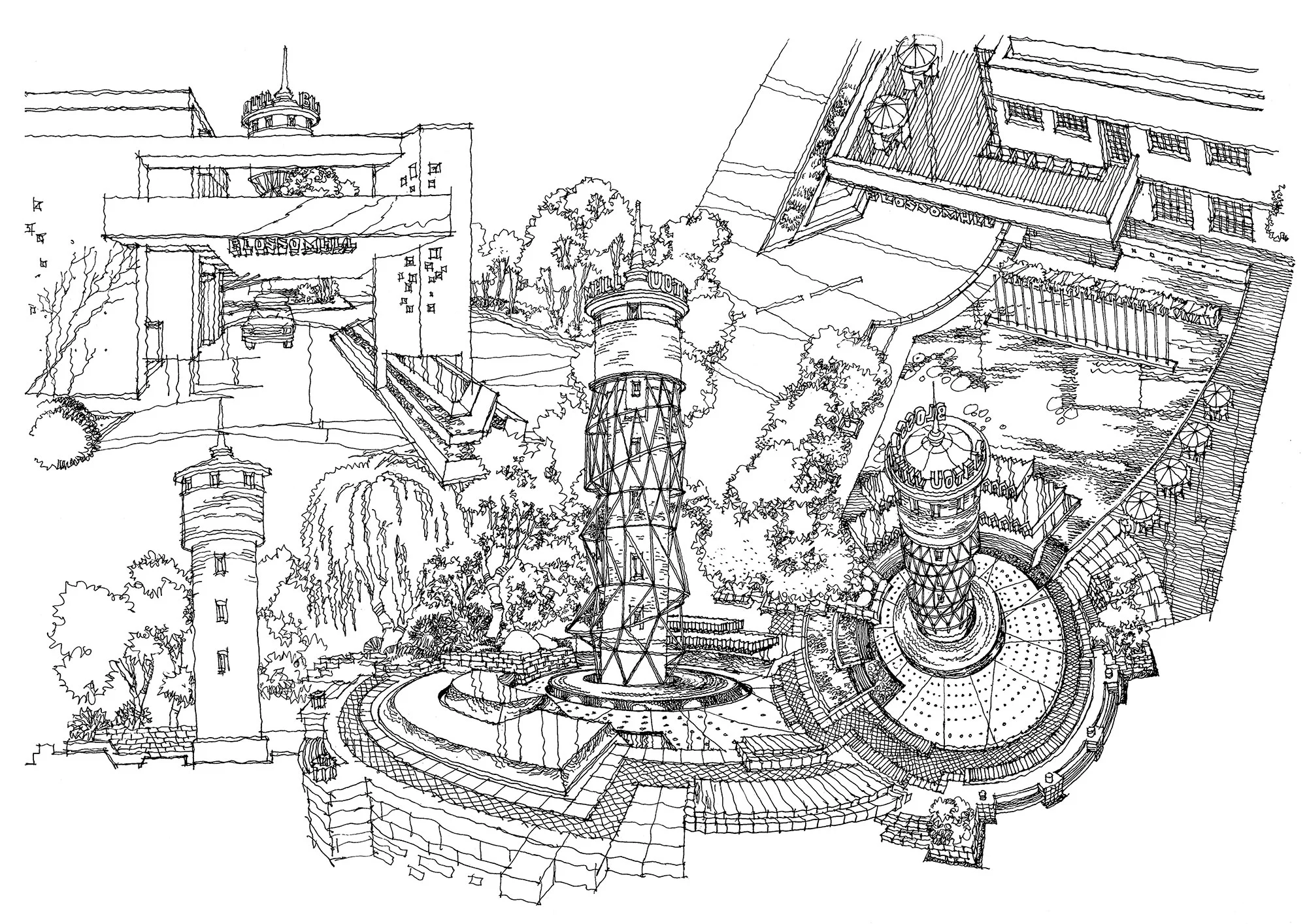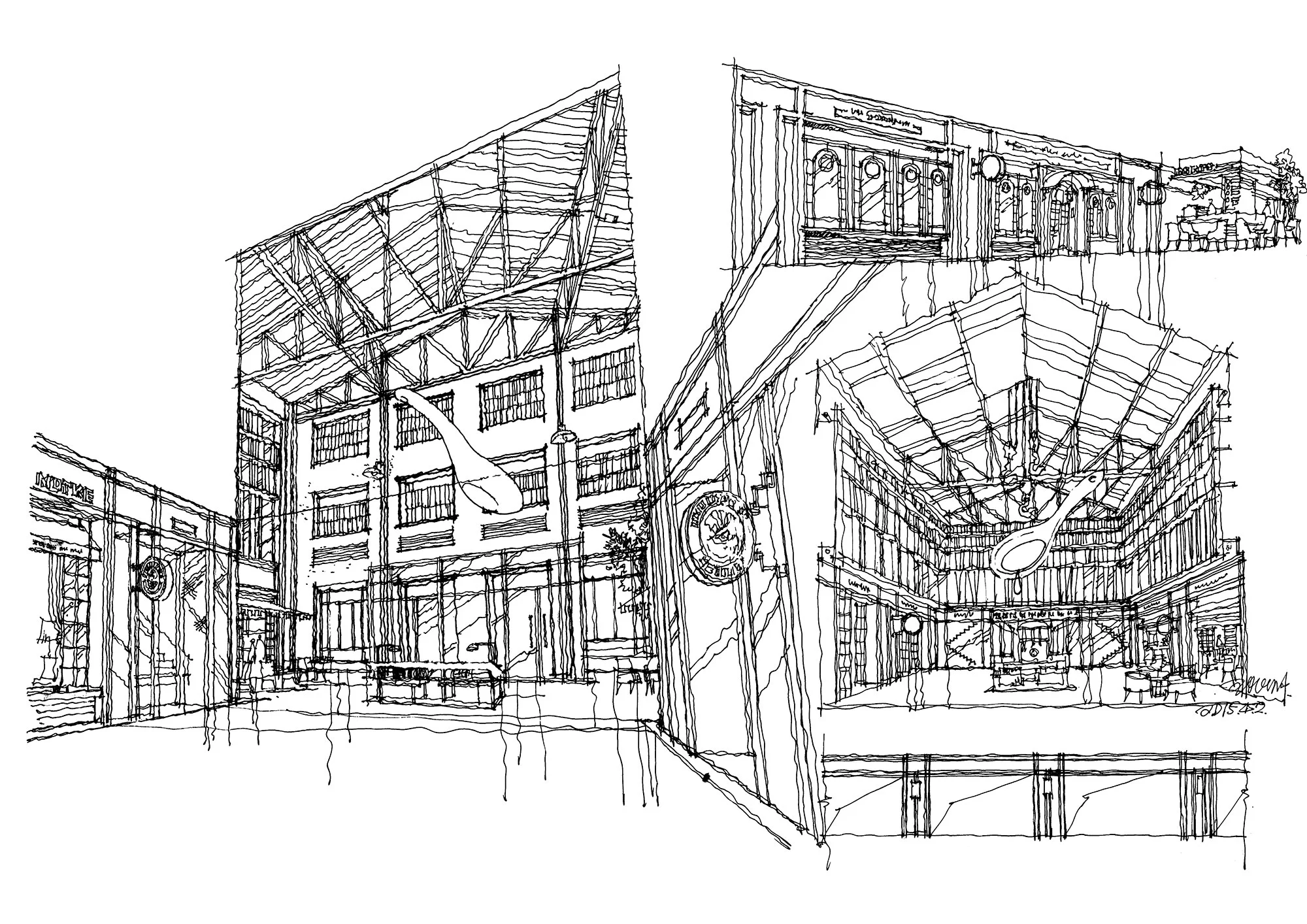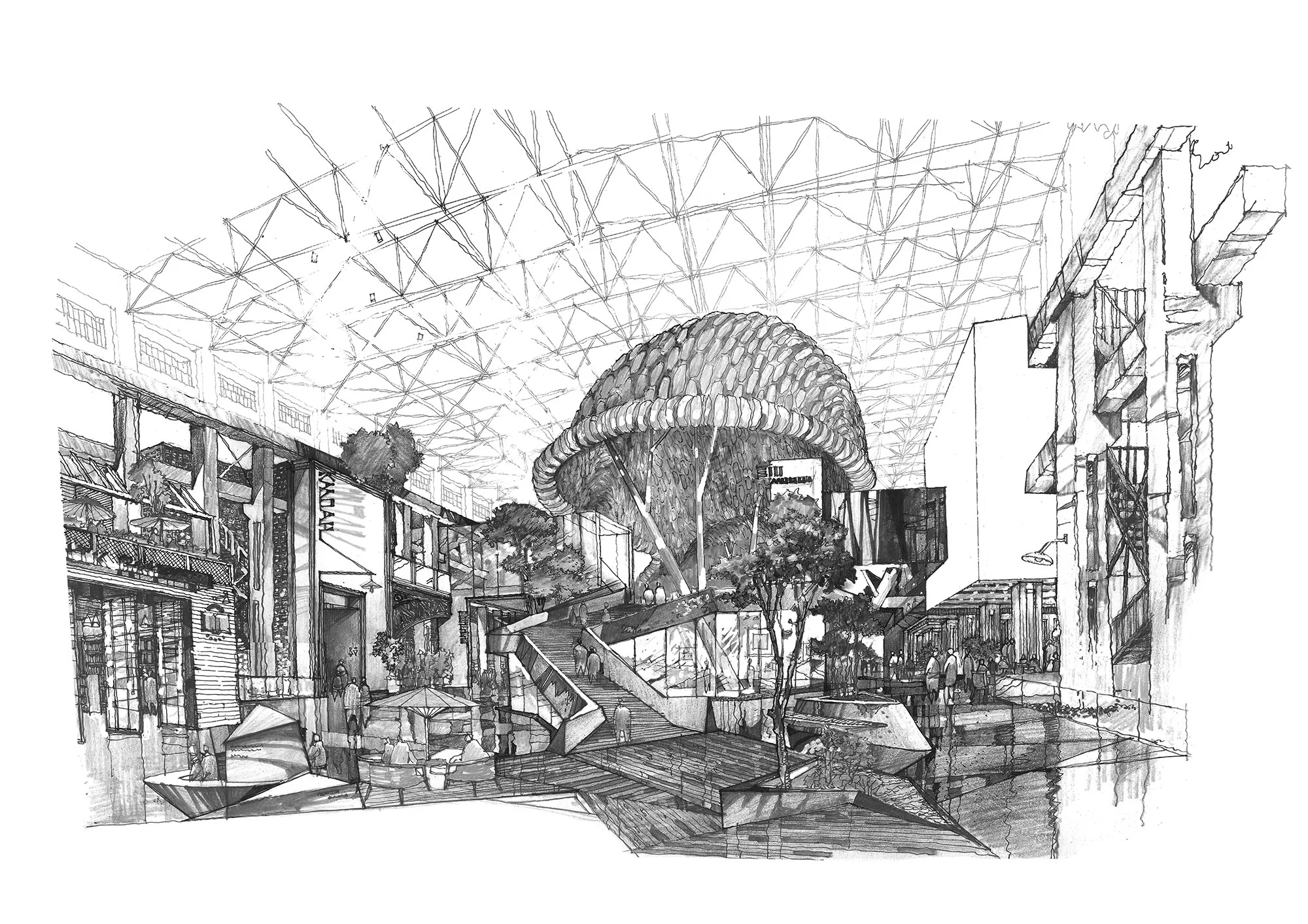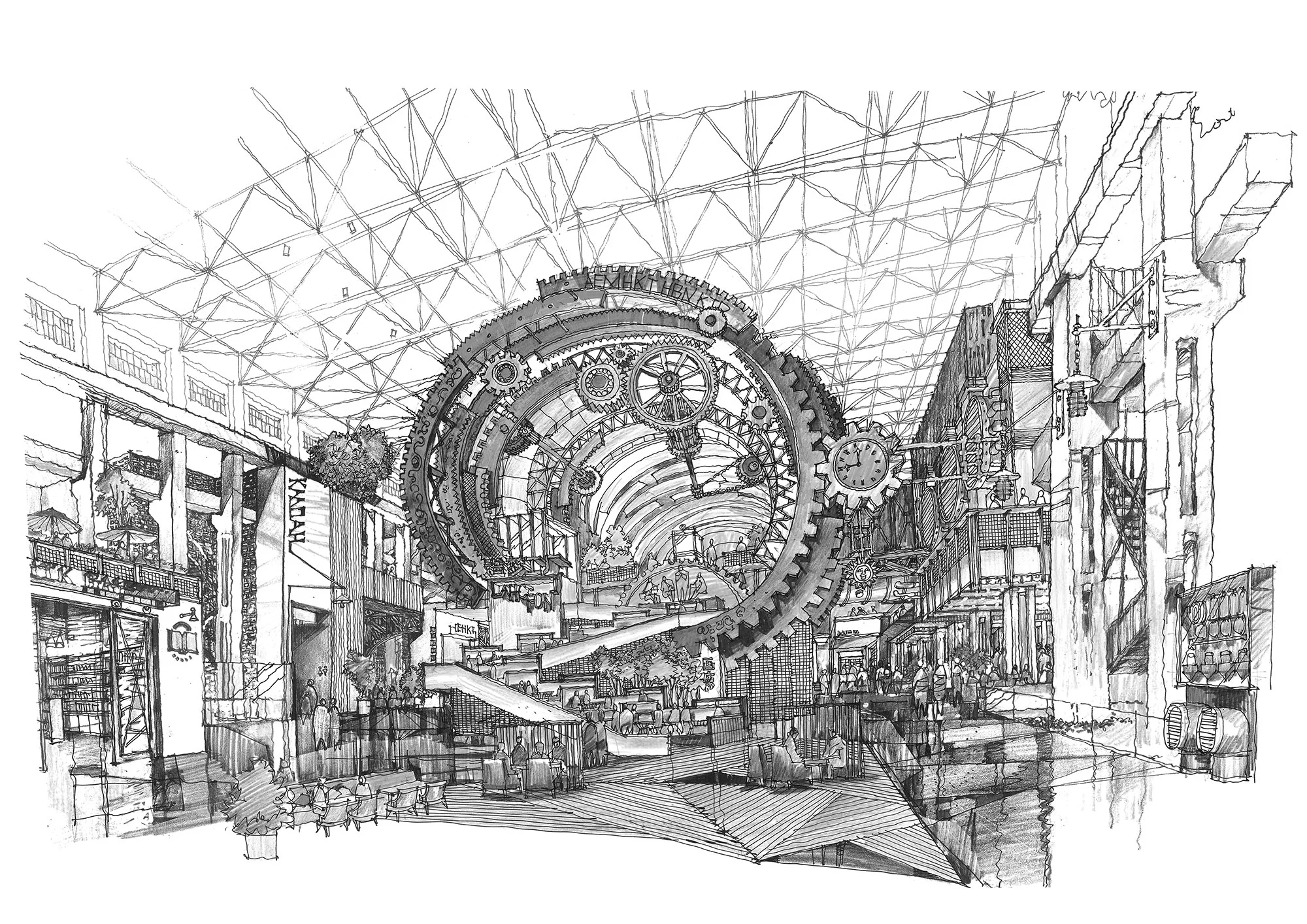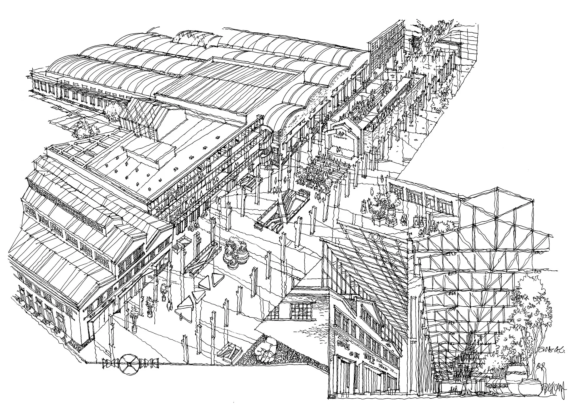 本次建筑设计原则上本着老的更老、新的更新,通过桁架结构及色彩有机的结合,为城市人们呈献一个优雅的文化艺术集群。