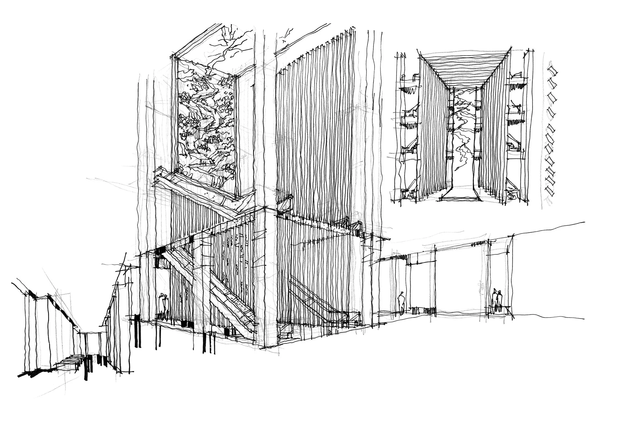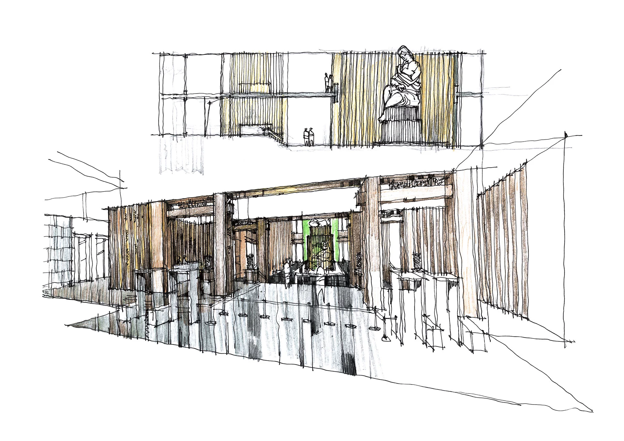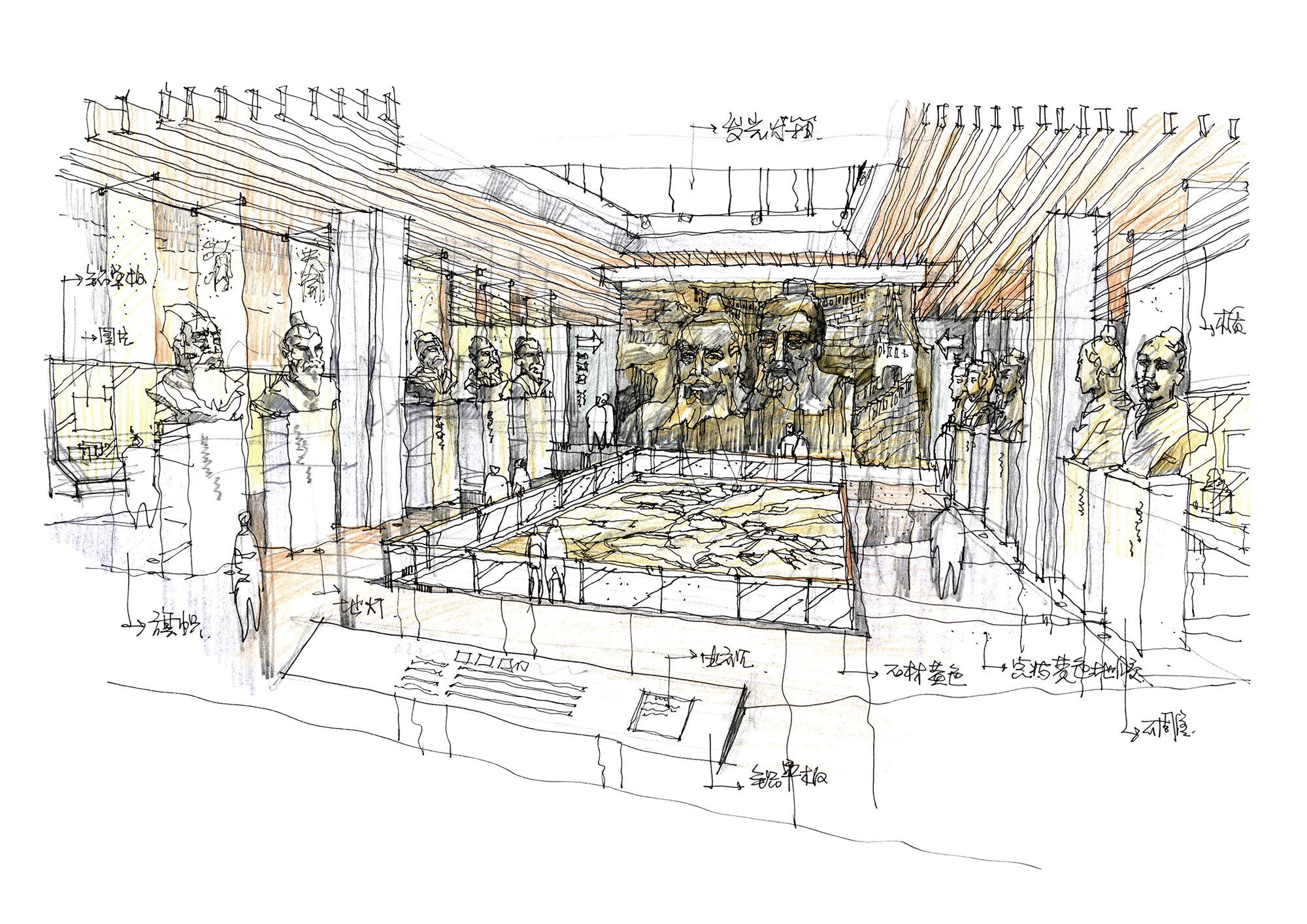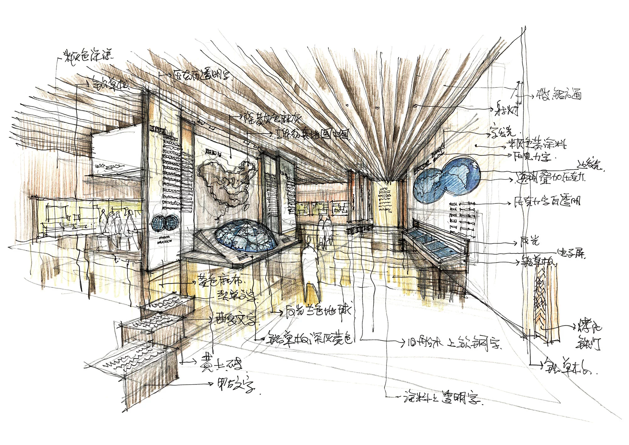 设计者对空间功能及整体风格进行了严密的推敲和精准的定位。观展空间的营造与建筑主题相融,整体风格既尊重主流文化——凝重沉稳,又具有时代气息——活跃灵动。