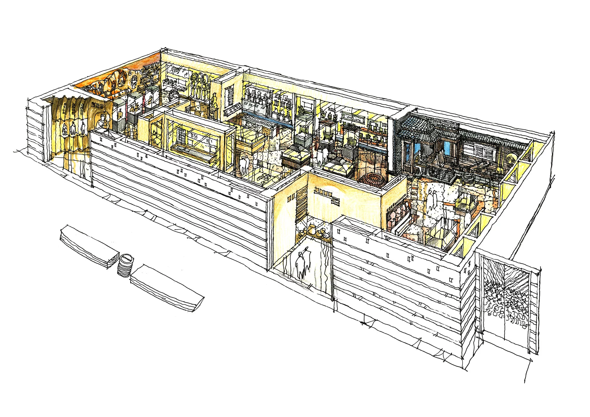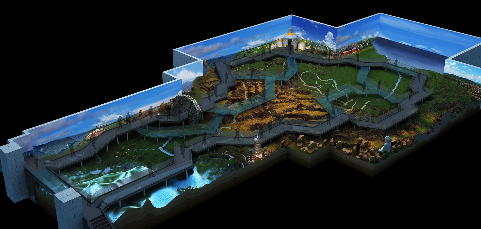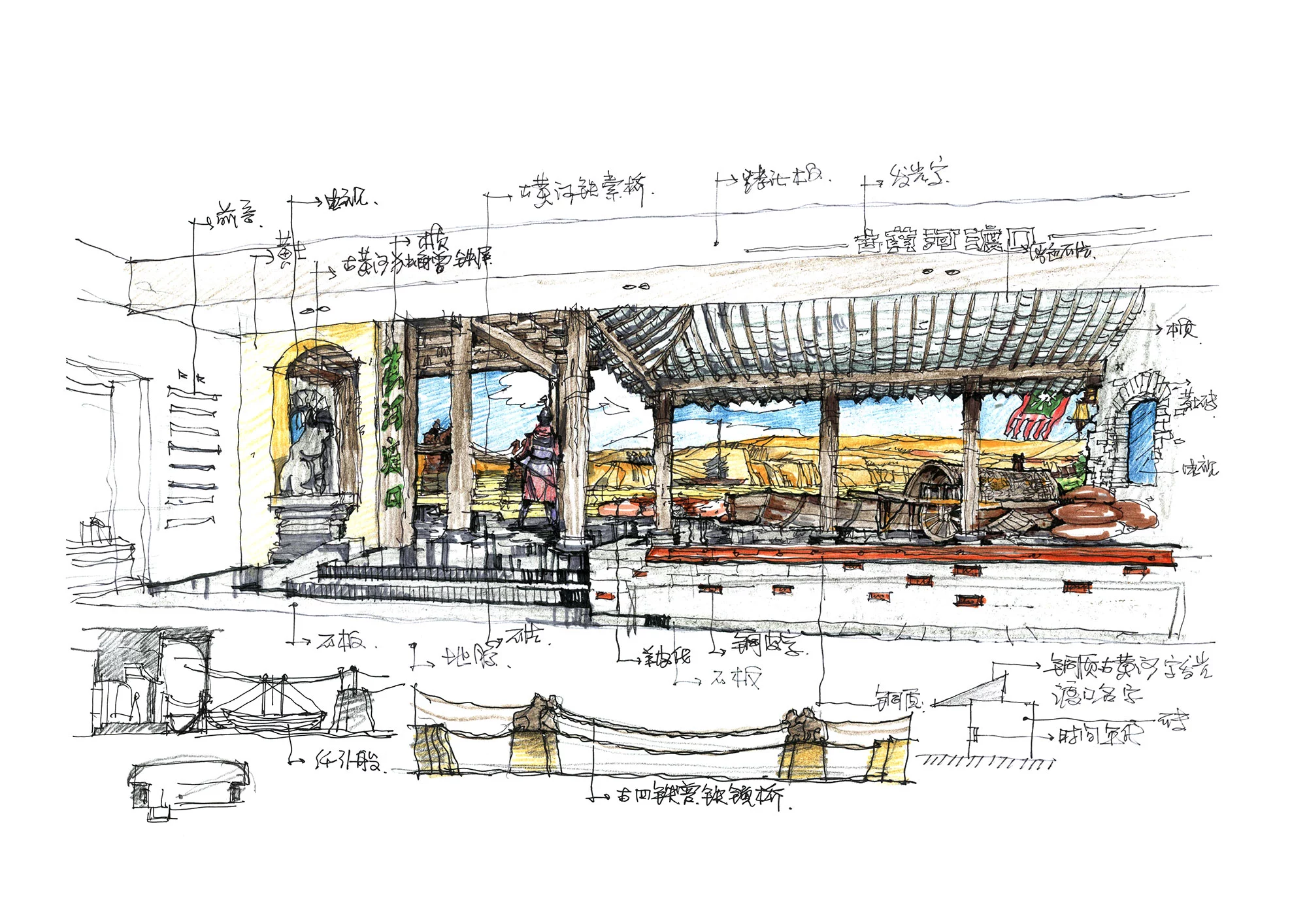 本案的设计主体是以黄河文化——世界上最古老的人类文明为主题的公益性博物馆。设计者喻浓情于其中,努力探求和思考将宏大而深远的黄河主题更完美地呈现。该方案运用赋予思想性艺术性的设计手法,将融合众多展品的八大主题展馆融入有限的展陈空间中,同时也要满足观展交通流线、商业休闲等公共空间的功能布局。使观展者通过浏览展示内容和体验展陈空间后,对黄河有更深层次的认识和感知,从而引发思考,体味黄河之魂与艺术相结合所散发的强大感召力,激发人们内心深处浓浓的黄河情。