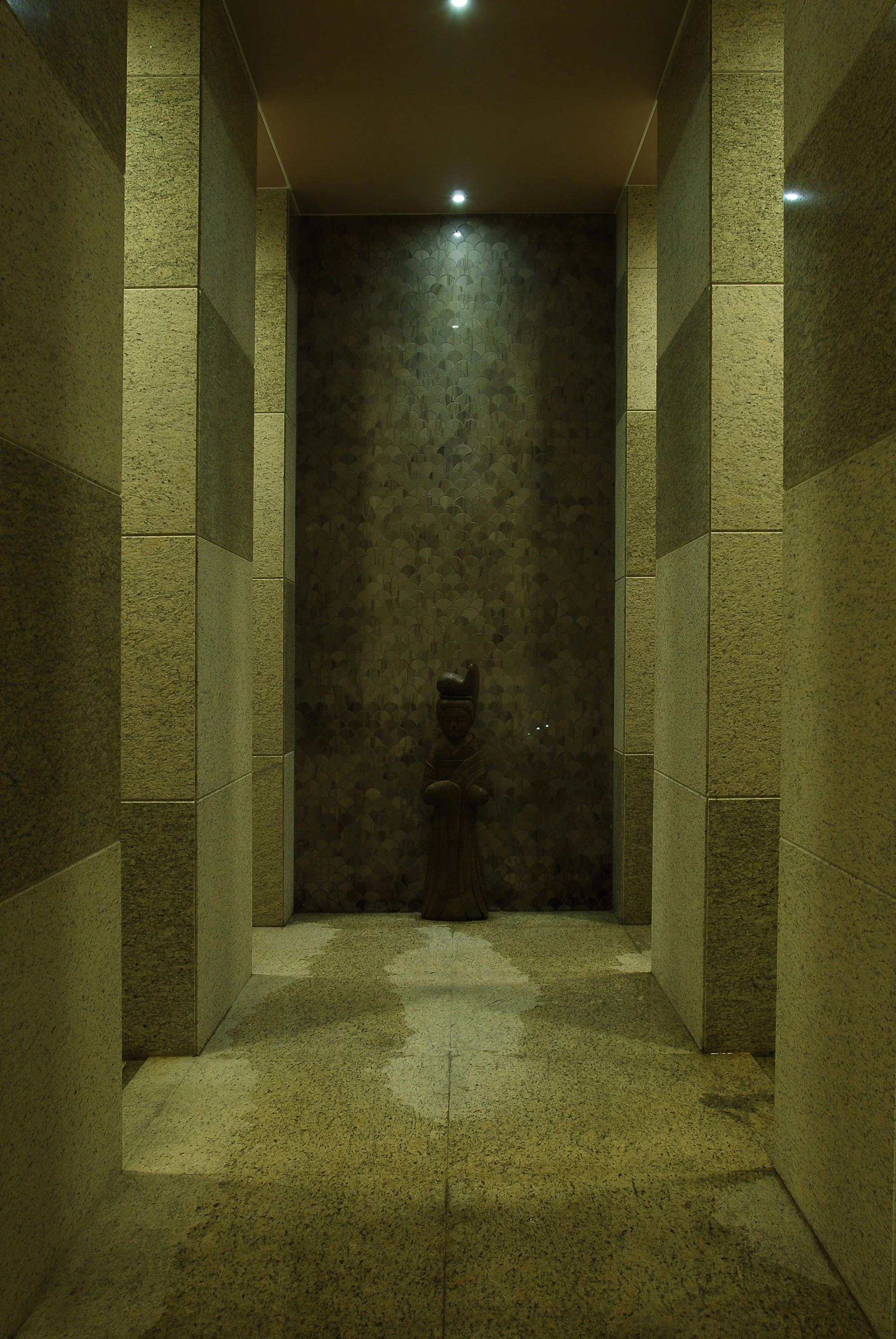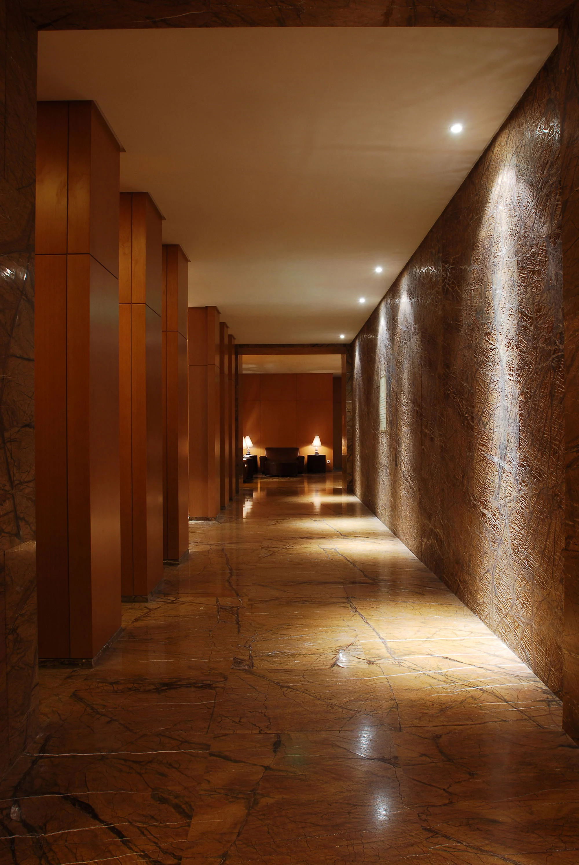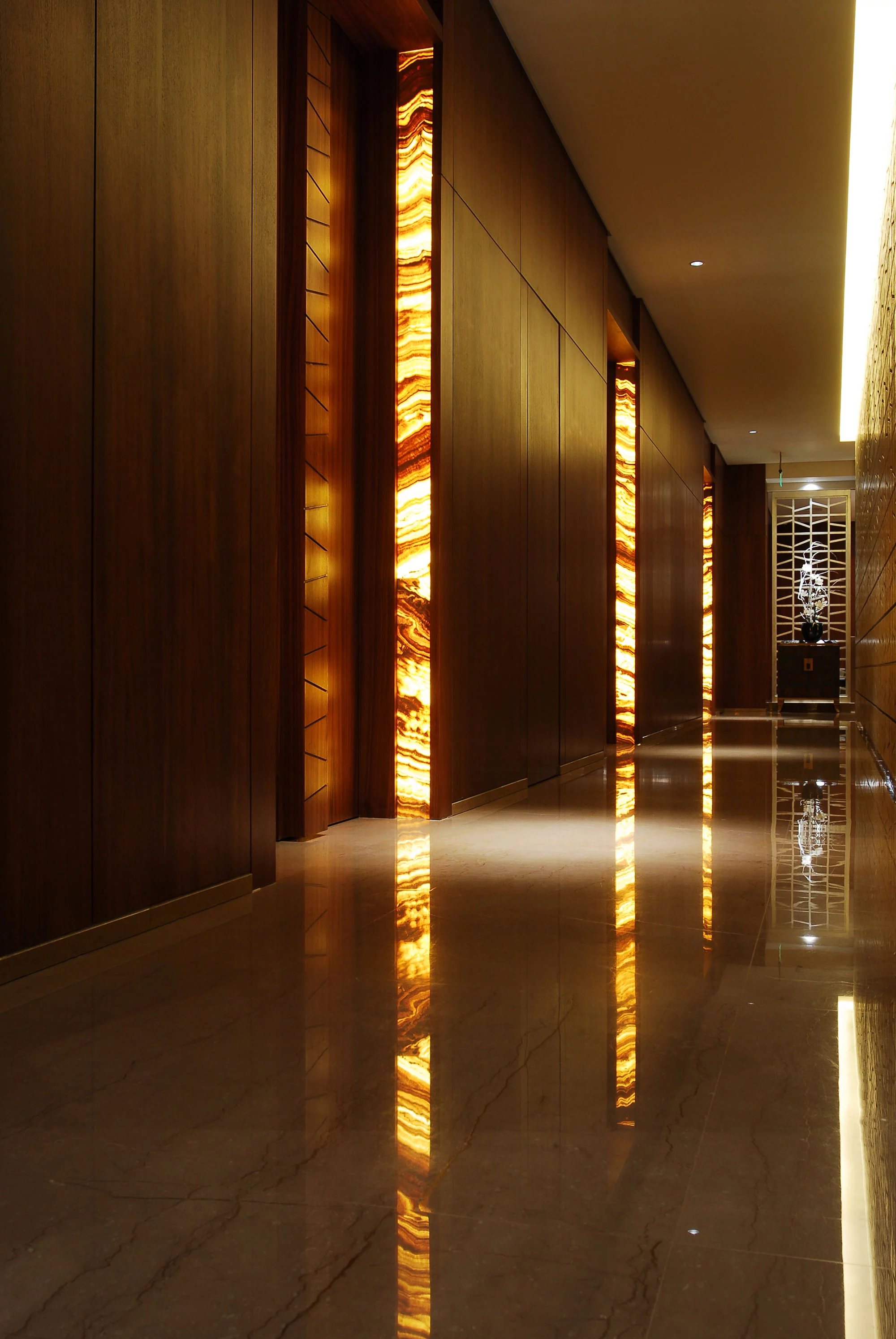 我们做了四个月的概念和初步扩充设计时,业主就急着开工了,这让我们好多设计工作措手不及。勘察和放线的过程更是问题百出。由于空间内的墙体是根据室内功能划分后建成的,所以细部的图纸是在墙体形成后完成。设计时间大量用在调整图纸和现场问题的解决上。好在我们几名设计师都有很强的责任心和丰富的现场经验,从异形的放样和材料的选择,到地面的放线、灯光的调配、洗浴设备的定型等,他们以专业的敬业精神化解出现的问题,减少失误,最终把这个工程完好的实现。