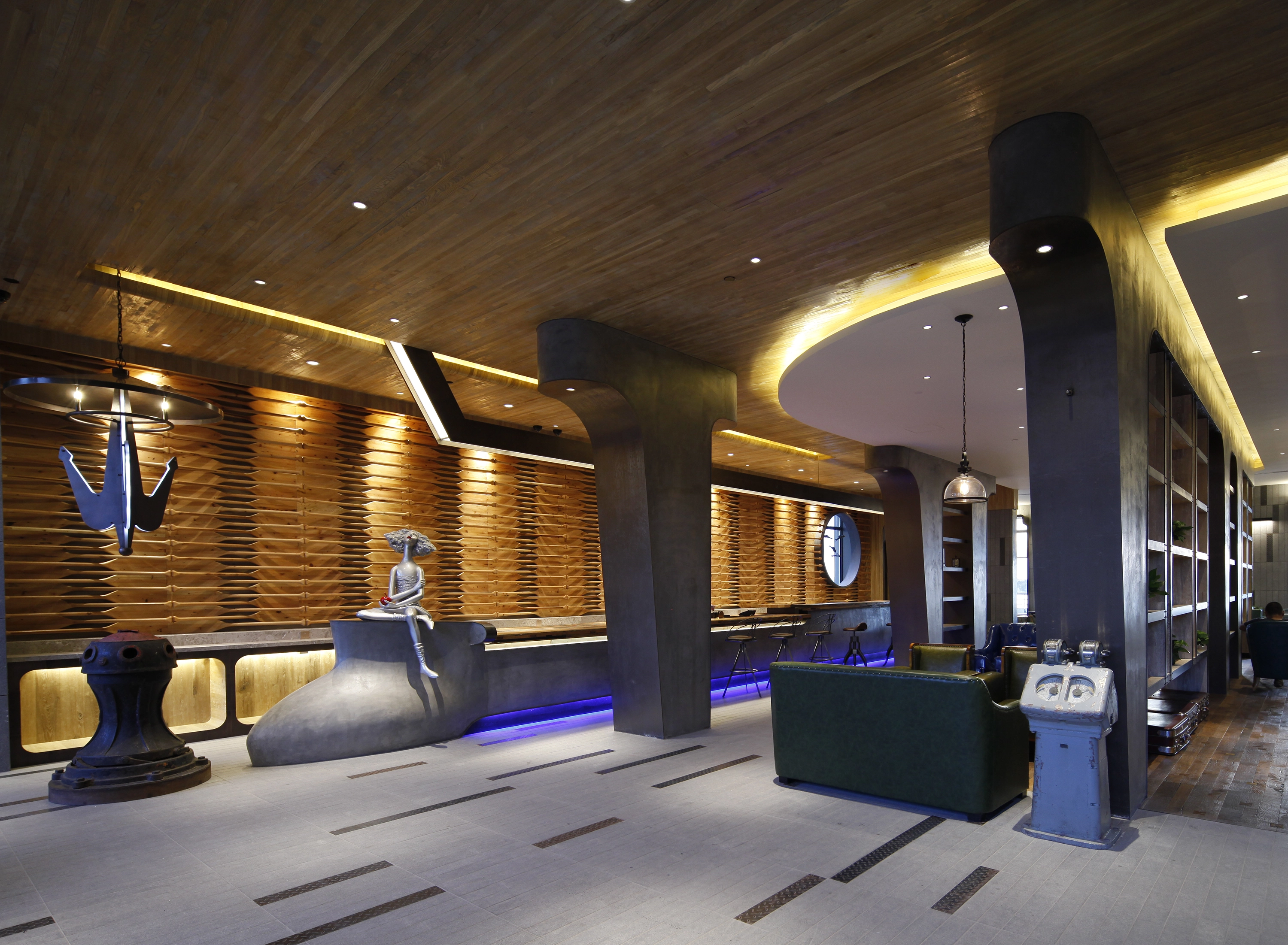 时间的推移,渐渐的迷恋有岁月痕迹的物件,船桨、船灯、船锚、栀杆、甲板、螺旋桨等等,它们保留着岁月的纹理和各自的故事。这里的故事有城市进程的节点,这里的故事有哈尔滨历史的见证。航运文化博物馆书吧、惬意的江景简餐厅,以百年码头为出发点的工业风格设计,向过去致敬。让老物新生,把曾经的气质带进新的空间,保存着那时刻的记忆,相信更是对那段历史的尊敬!