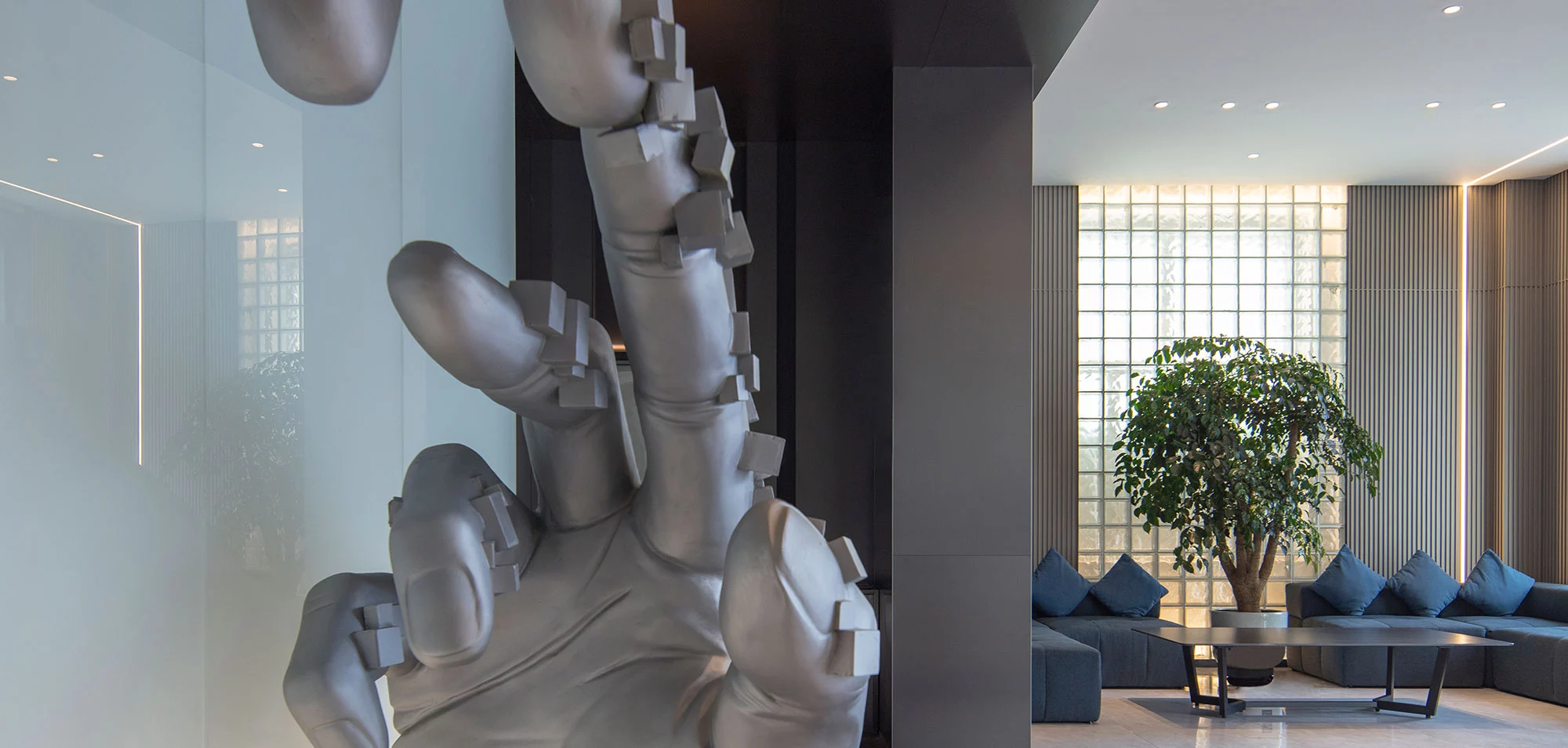 感性与理性的融合,“解锁”办公空间新美学。个性鲜明现代化的办公是本次设计的特点,用极简的线条勾勒出最具有灵性的空间。进入到一爱城市服务集团,首先映入眼帘的是宽敞明亮的空间布局。我们深知一个舒适的环境对于激发创造力与提升工作效率的重要性。