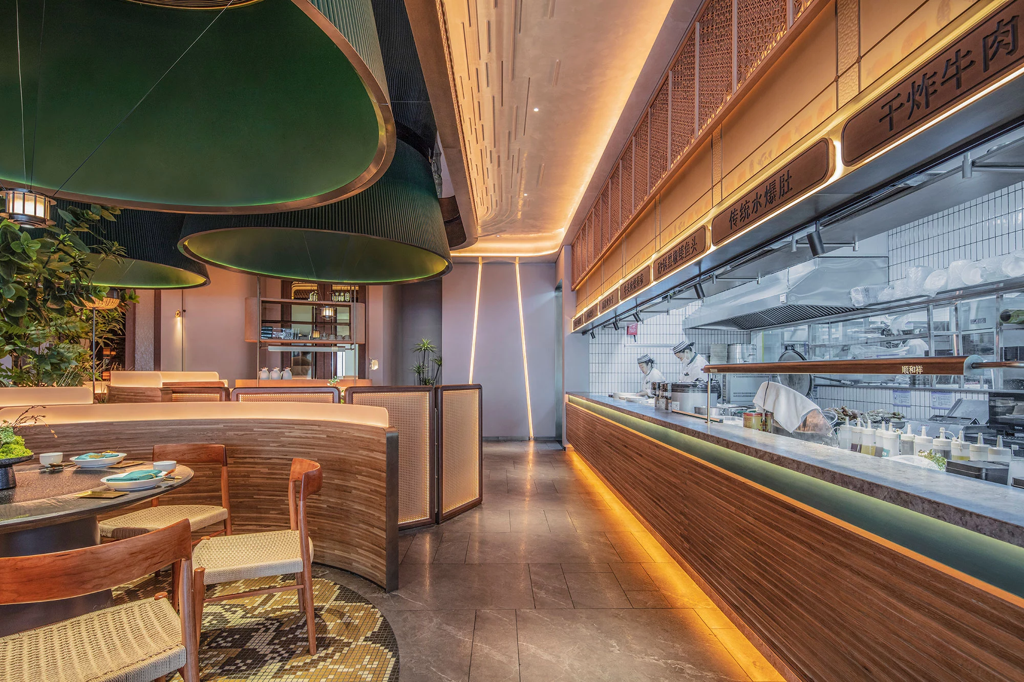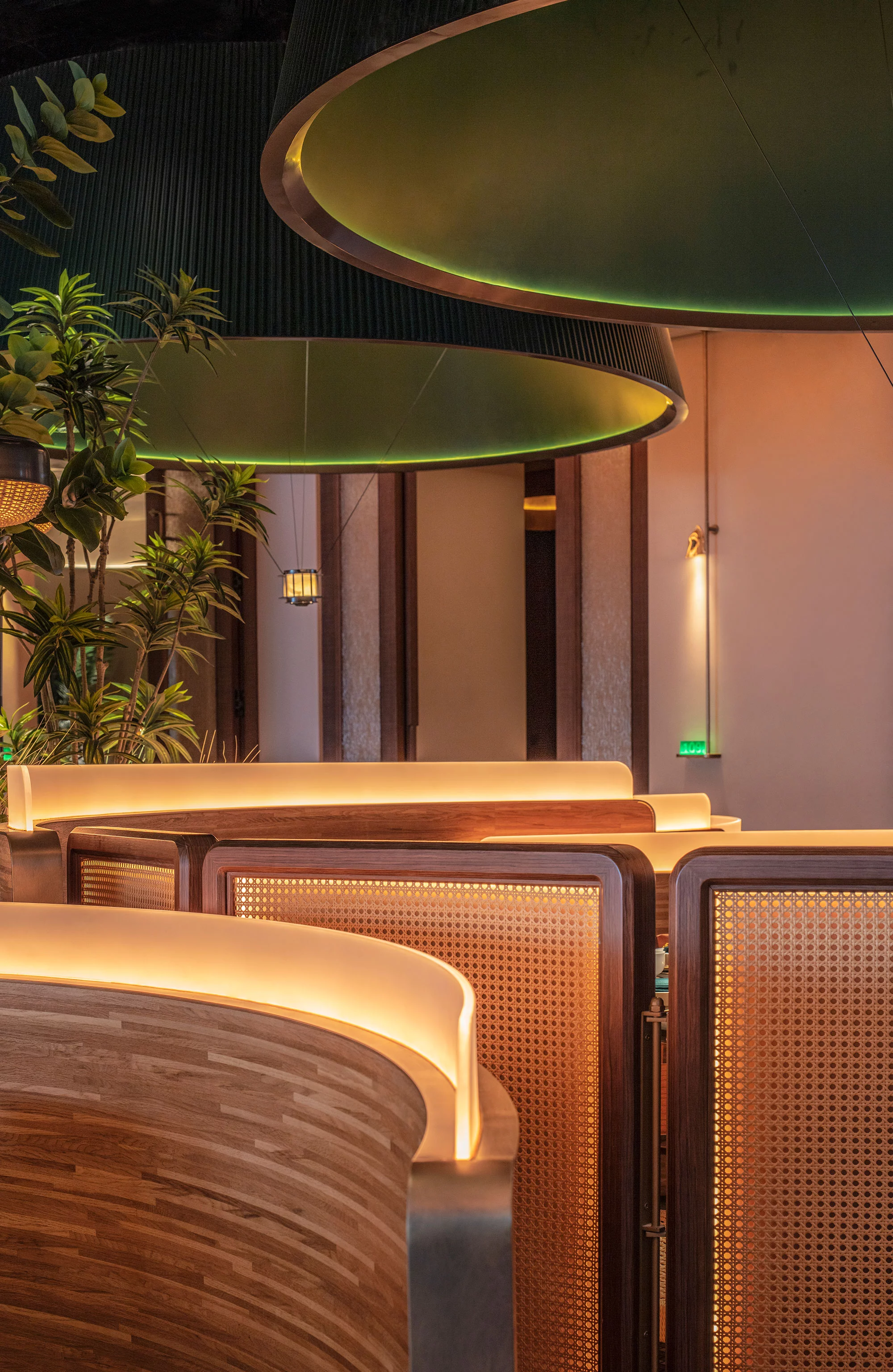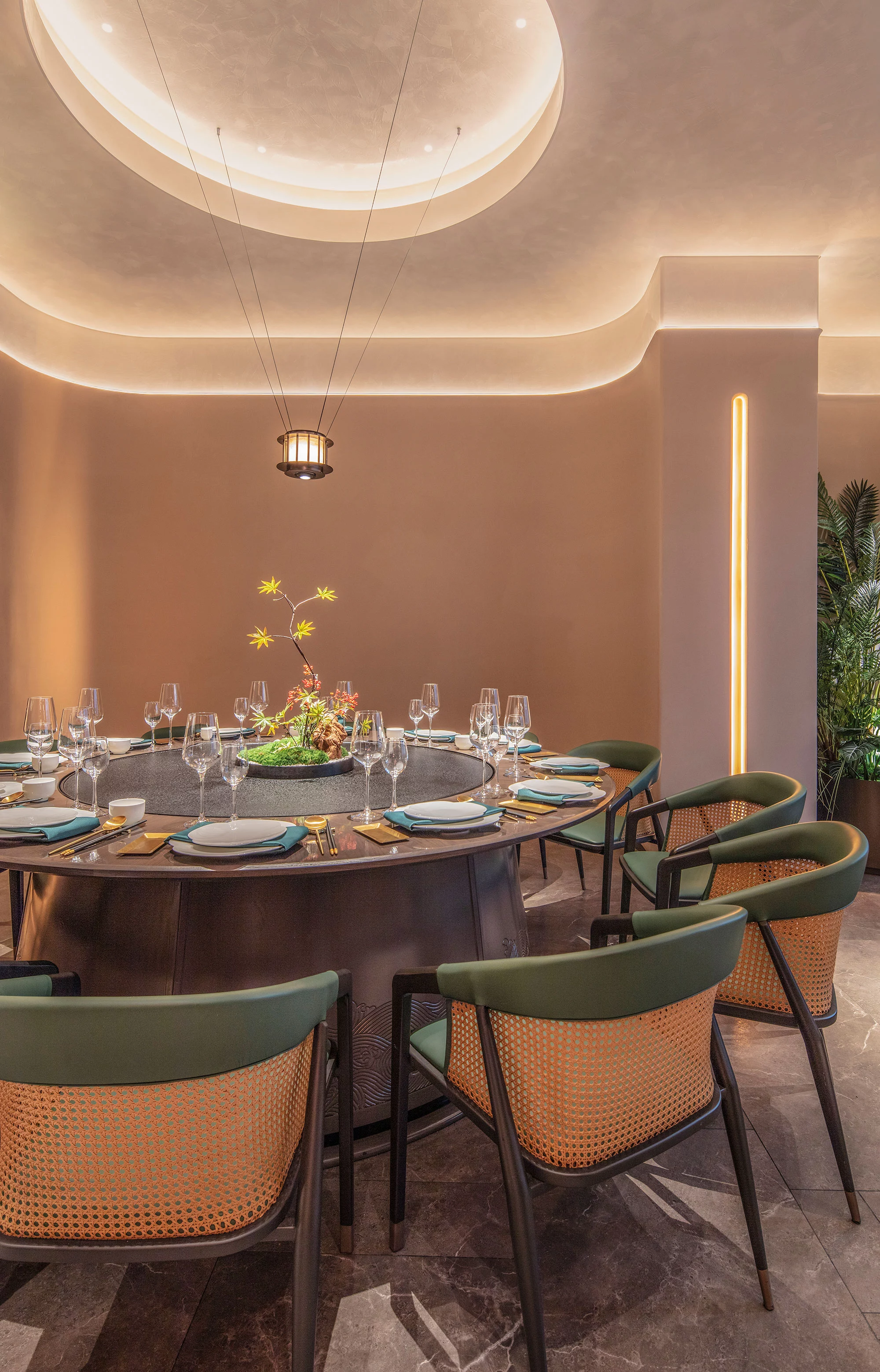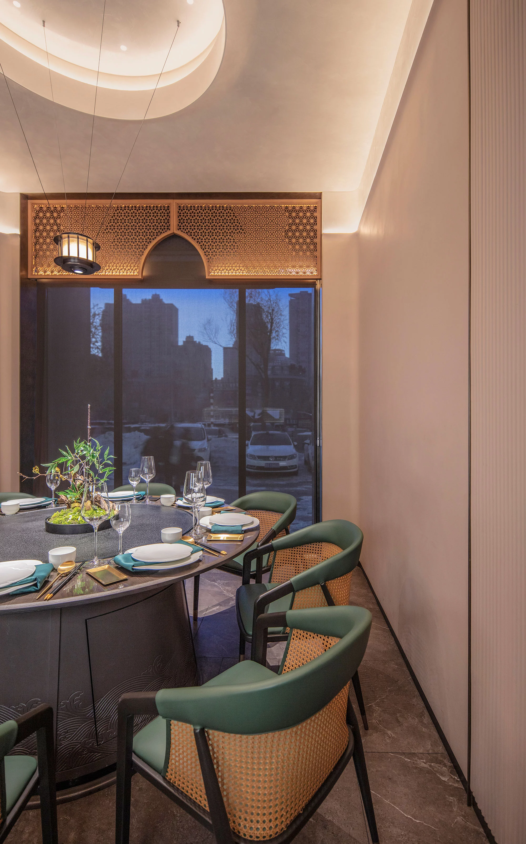 餐厅的座位布置为顾客提供宽敞舒适的用餐区域,同时也考虑到隐私和安静的需求。设计了一些私人包间或分隔区域,以满足不同客人的需求。既有靠近花园的半包围卡包,也有室内的包间。半包围卡包让顾客可以尽情地欣赏花园的美景,感受大自然的气息;而室内的包间则提供了更为私密的空间,适合亲朋好友聚会或者商务洽谈。