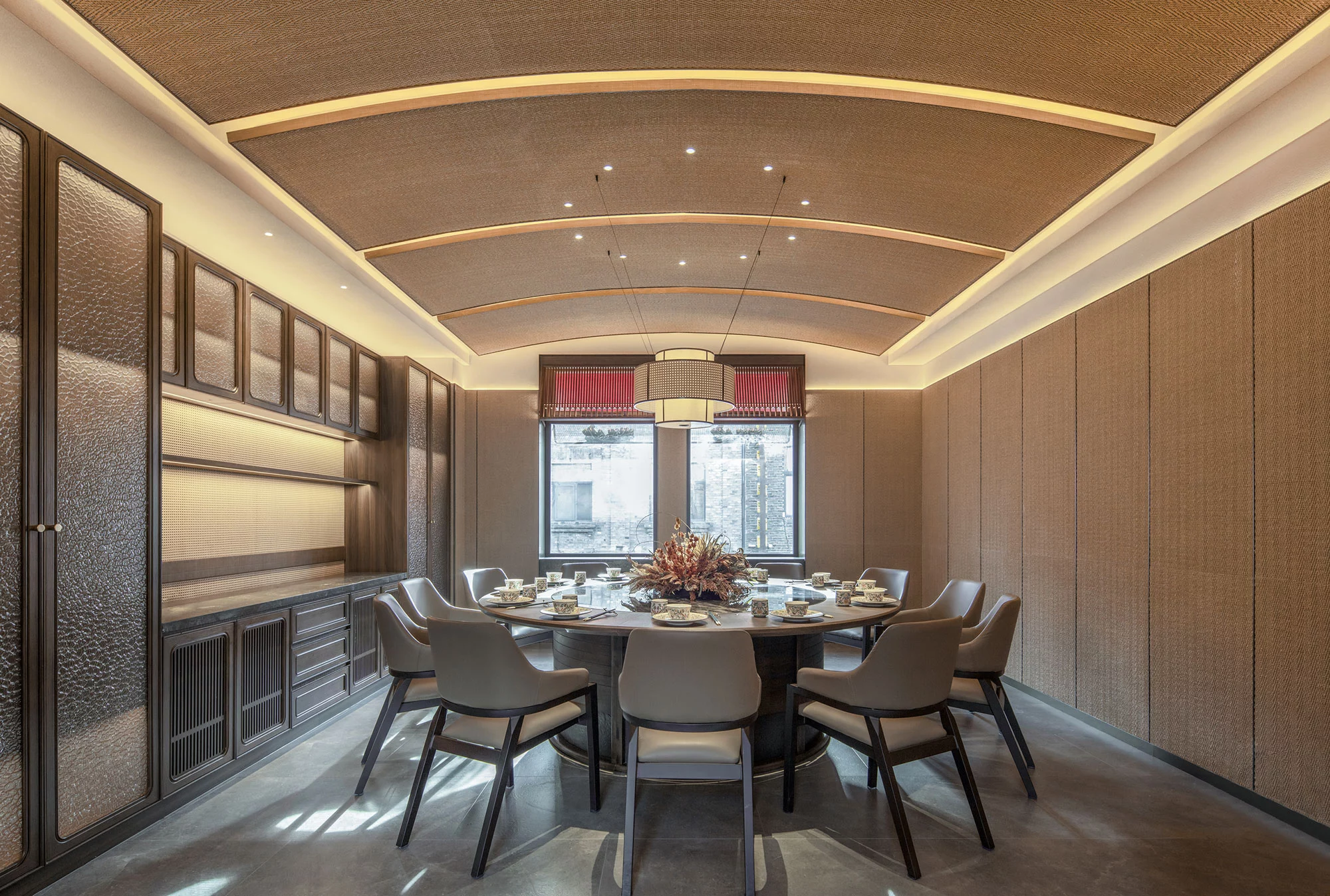 “春生、夏长、秋收、冬藏”,四时和顺,五谷丰收。二楼厢名以八节命名,呼应一楼五谷丰登小景,自出一派质朴。包厢中配以自然元素的艺术品,虽不是自然景象,却构成了自然表达,用现代手法追忆乡村的美好时光,跨越城市与乡村,让整个就餐空间既温馨雅致,又流淌着乡野雅韵。