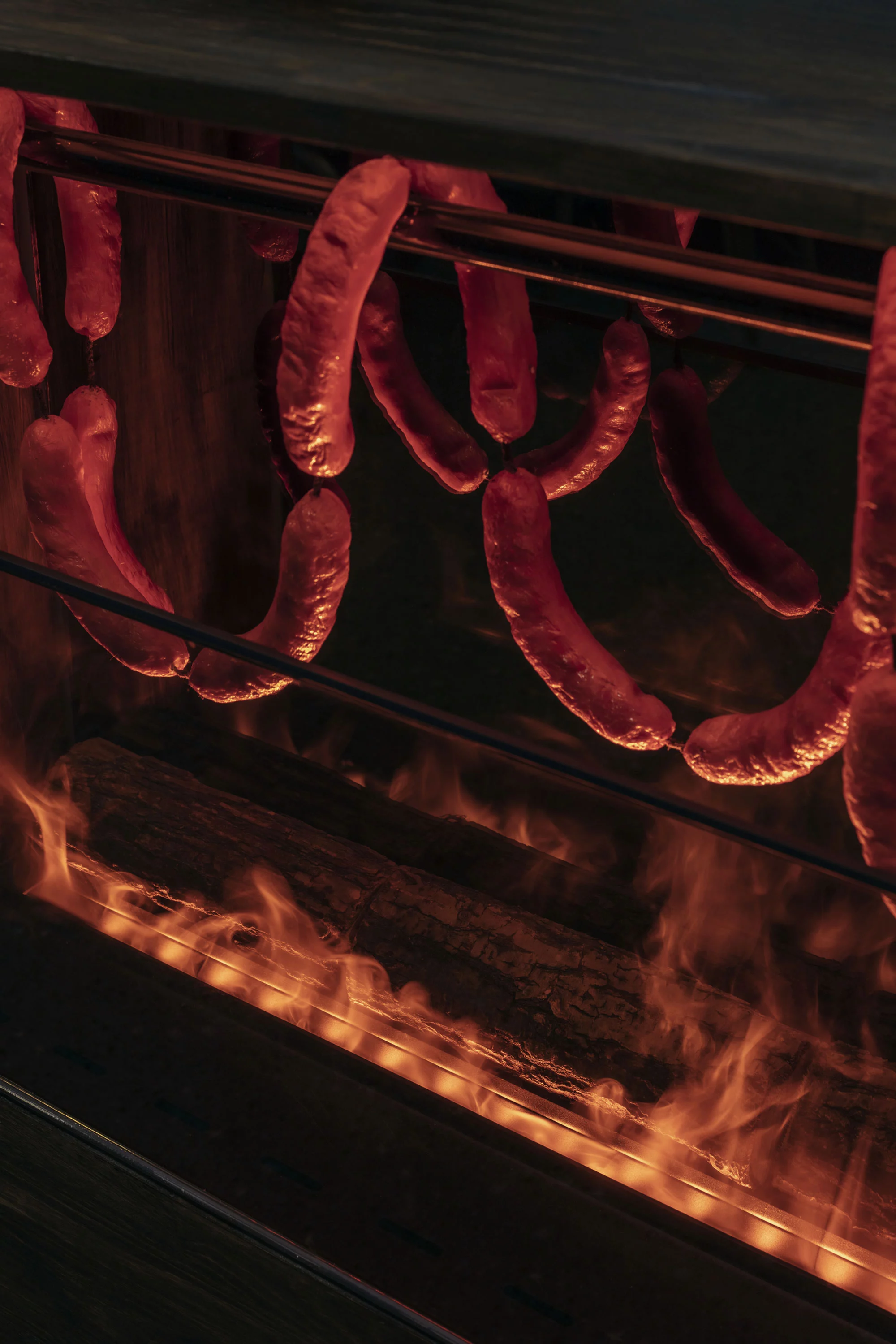 入口即化的是时代的低吟,更是匠人手中的时间与情感的结晶,购物区承袭历史建筑巴洛克的墙面风格,辅以暖光、明档,保持了空间的通透感,将匠人的匠心剖析于顾客眼前,以木柴、红肠烤炉和木框货架来营造原汁原味的制作氛围,从经典的红肠、鲜酿格瓦斯到地道的地方小吃,让人静下心来体悟一餐一品的匠心。