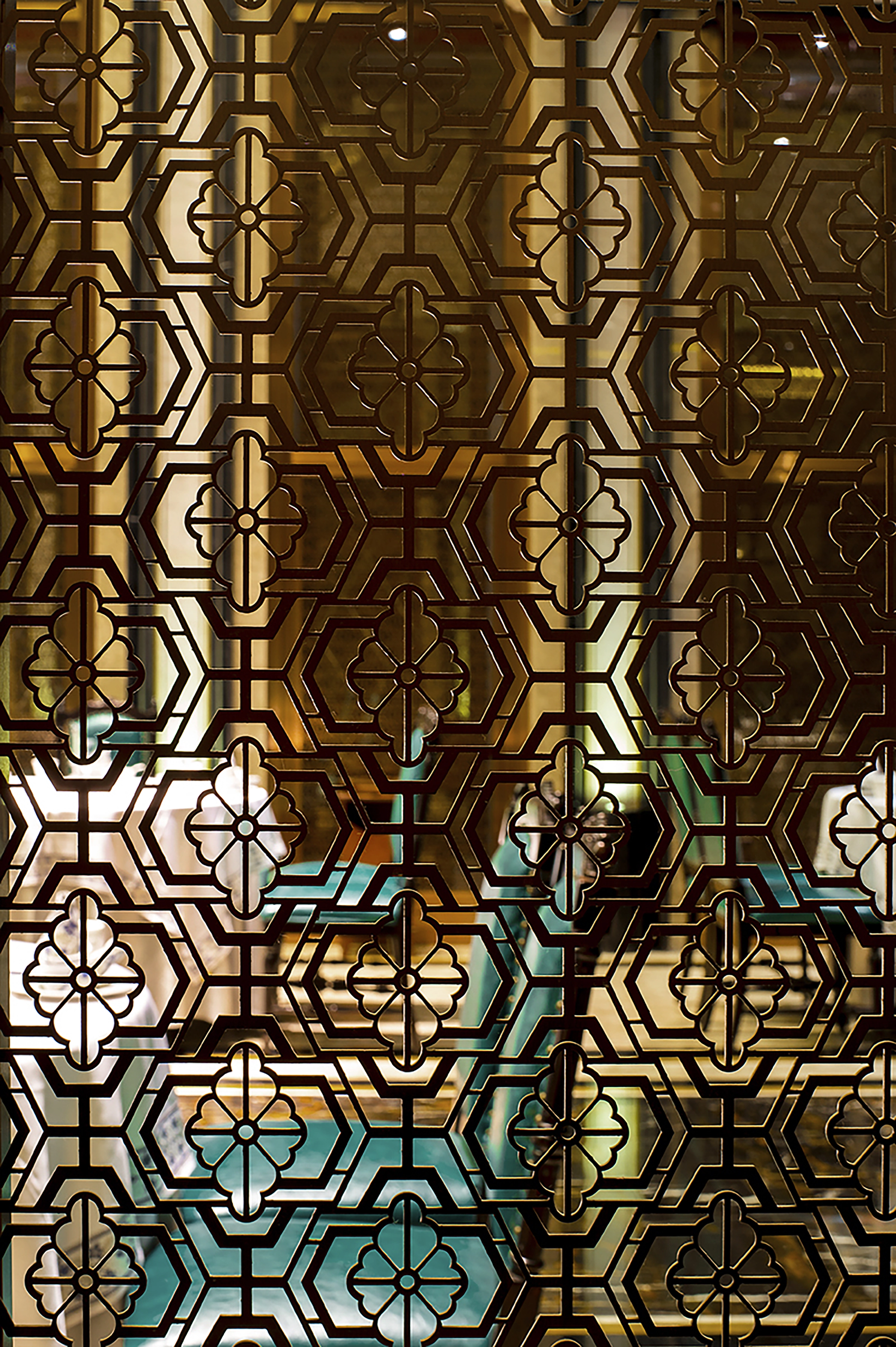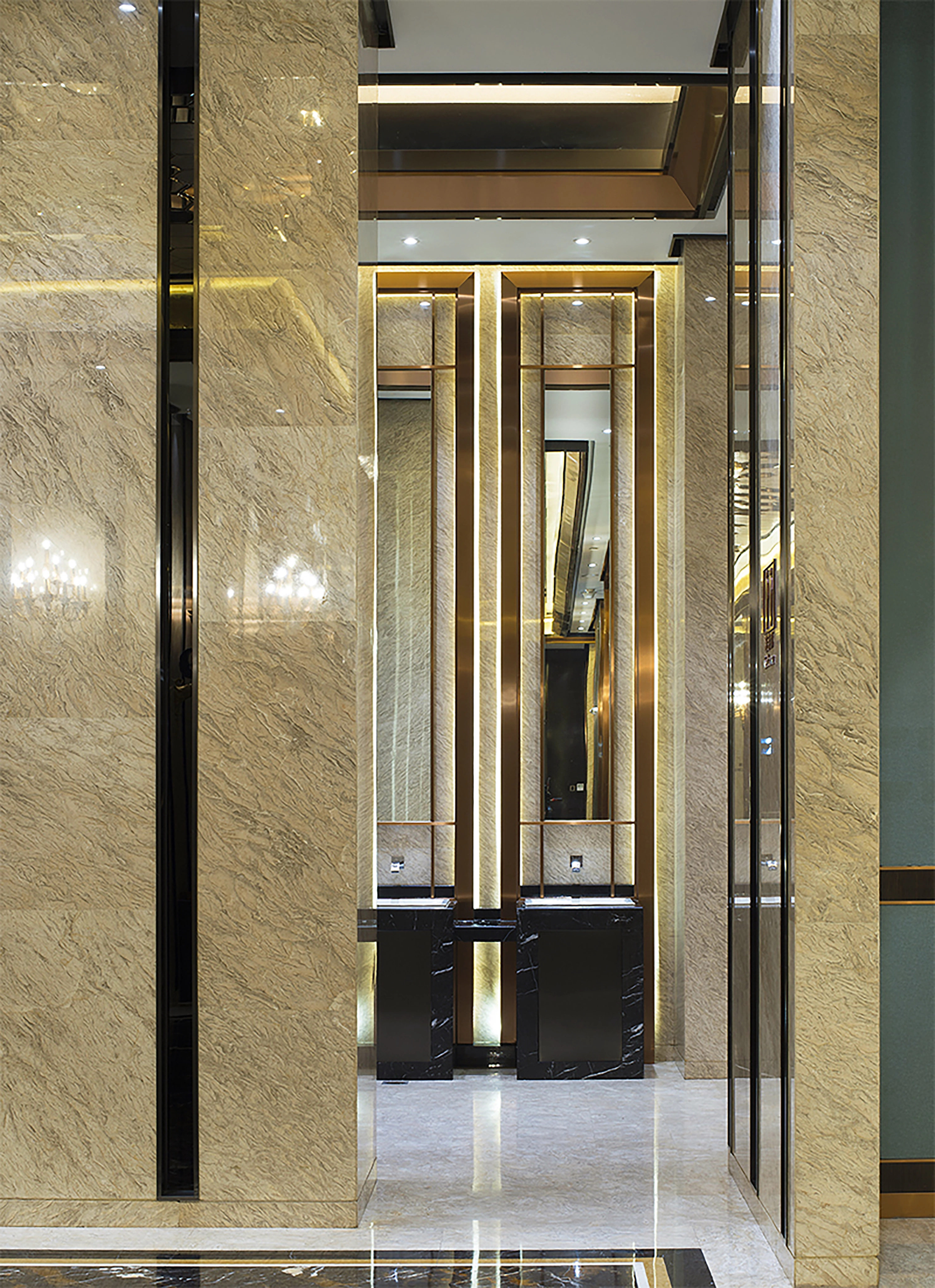 在材料使用方面,强调变奏效应融合软硬两种材质的性质通过极富金属感的玫瑰金不锈钢雕花及硬包围合空间,制造私属领地让每一位客人都有专属感觉。六边形镜面及不锈钢很好地烘托出了梦幻与迷离的感觉。