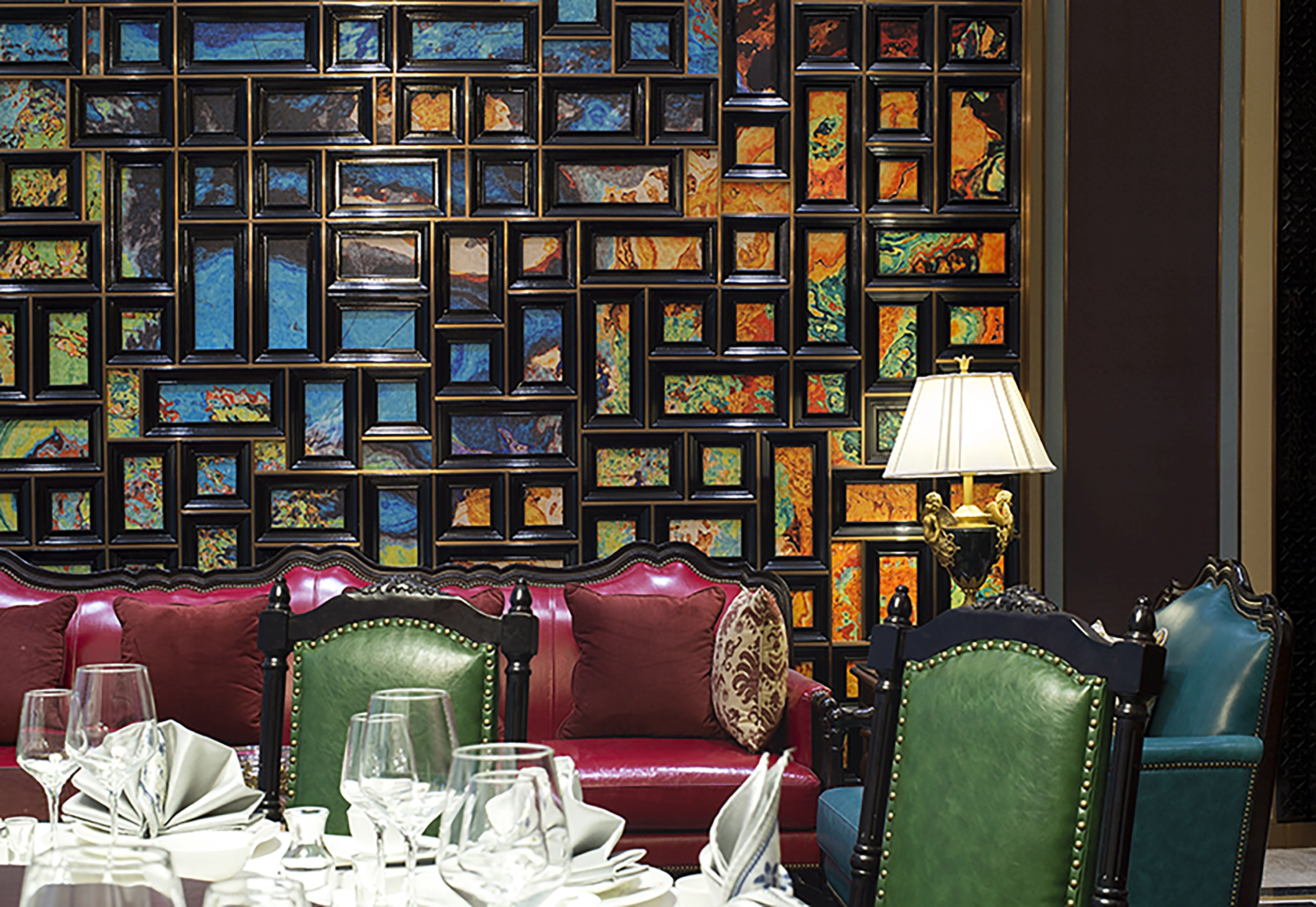 宝轩渔府设计充分利用各种材质的质感和色泽进行组合搭配在对比中寻找永恒的自然美感并将现代时尚与奢华很好地结合在一起。