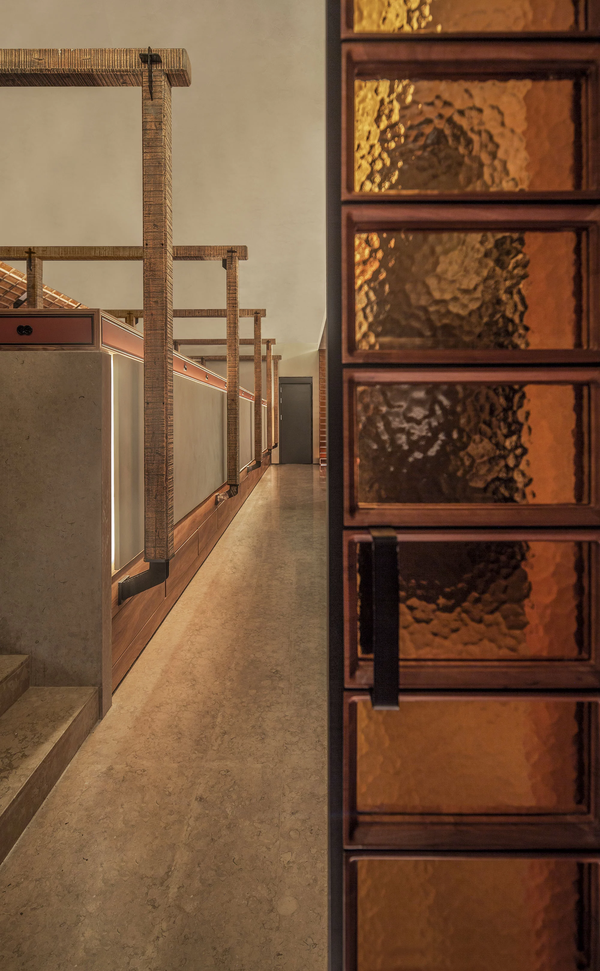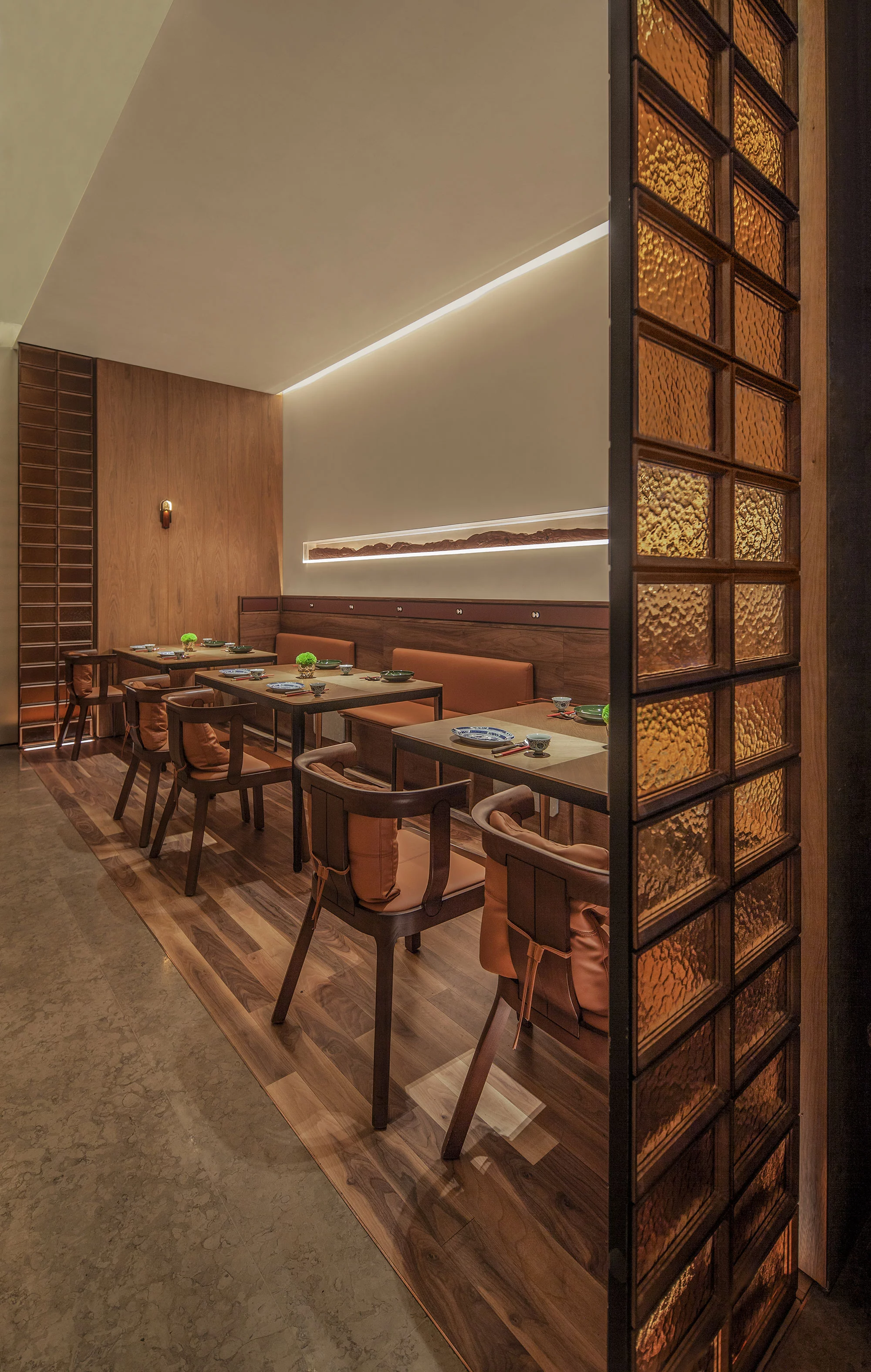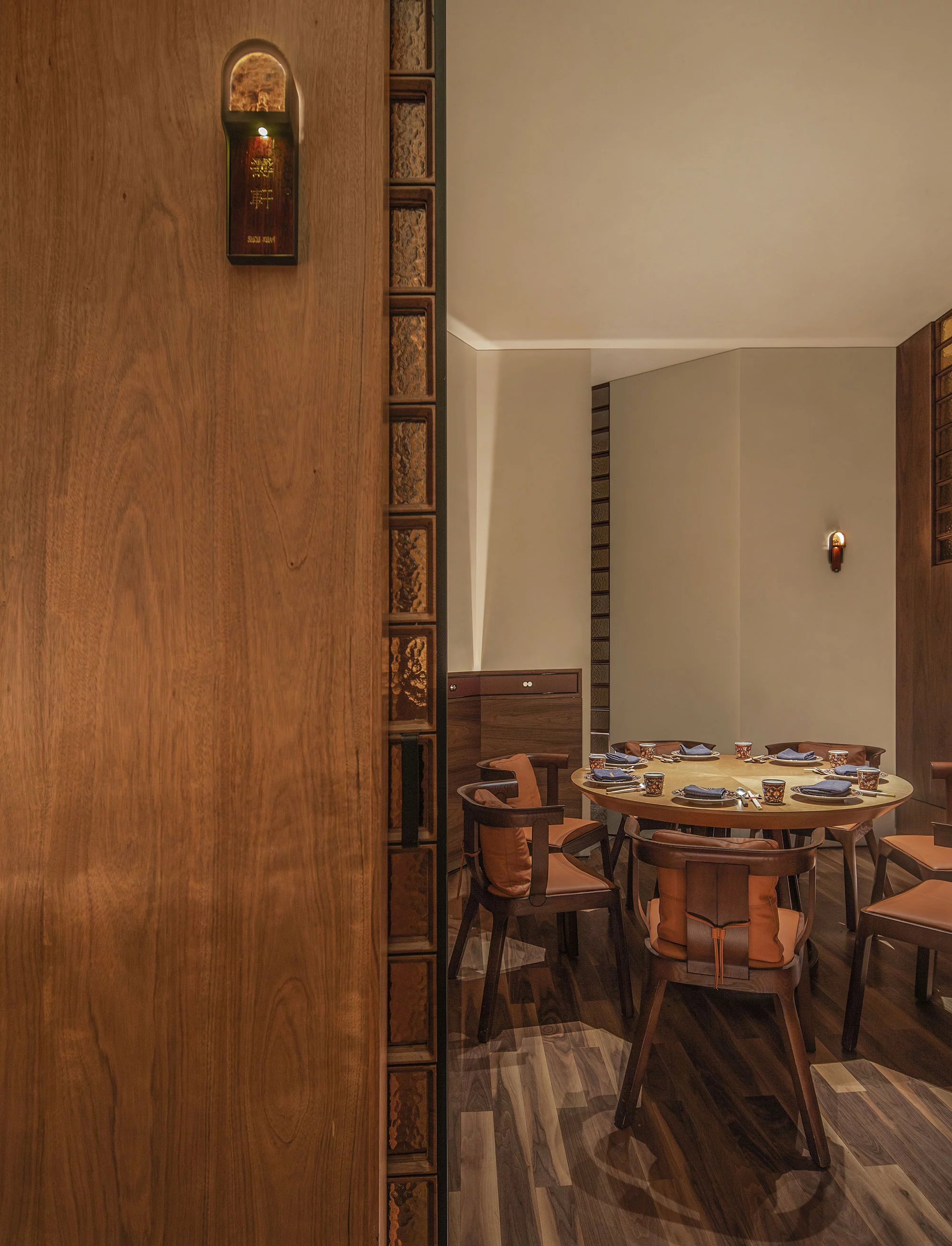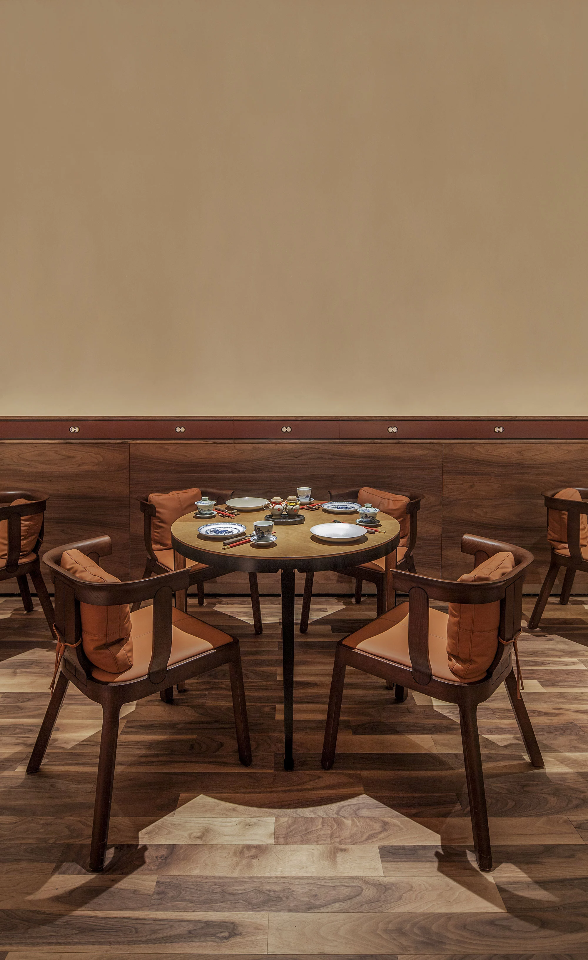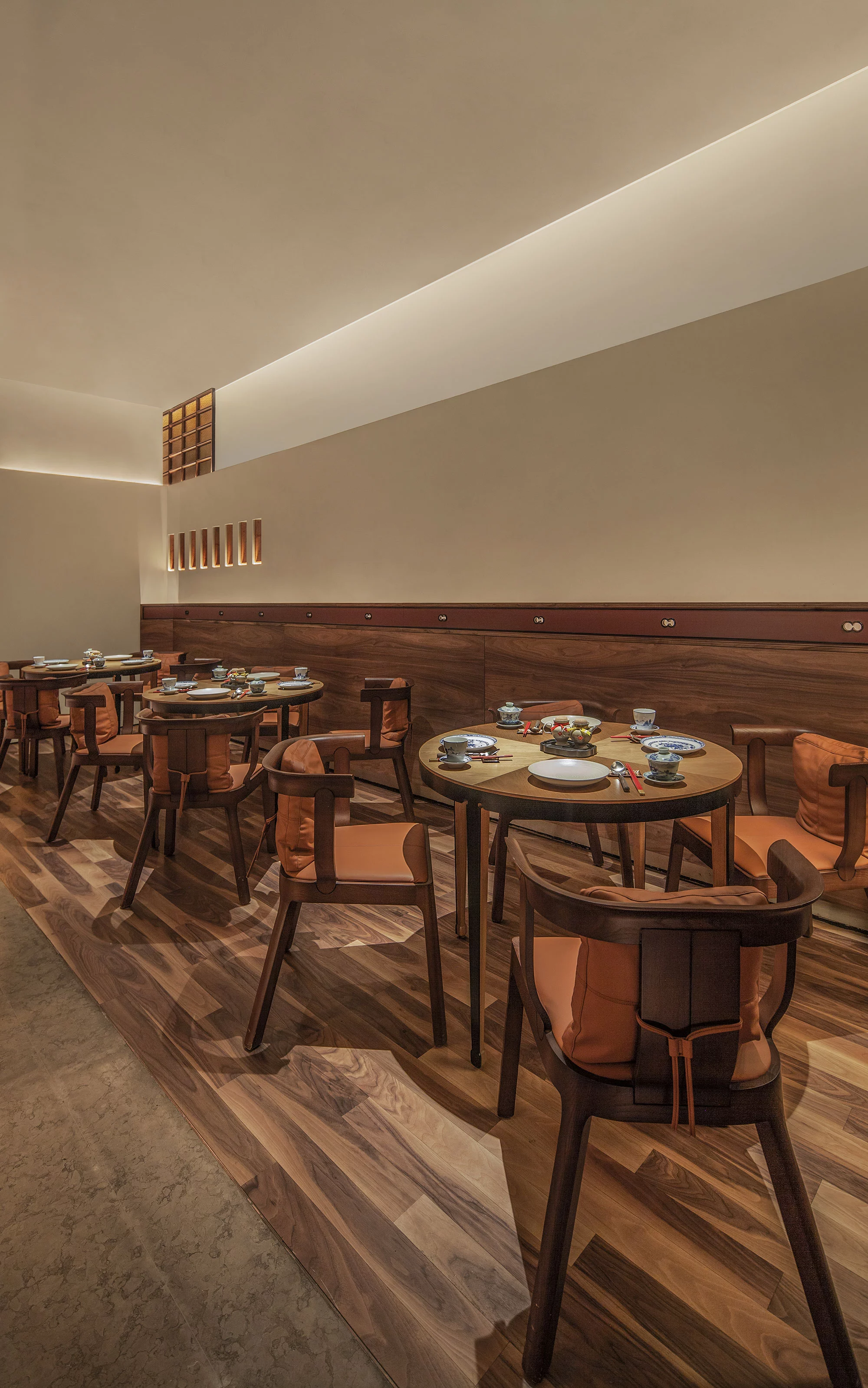 以中国古代建筑和传统文化为基础,运用现代设计理念营造出具有南京文化属性的空间意境。设计沿袭古制的表现形式,以平凡之物造境,触发全新感受。灯光焦聚在空间尺度与感知上力求平衡,营造出舒适的用餐氛围。