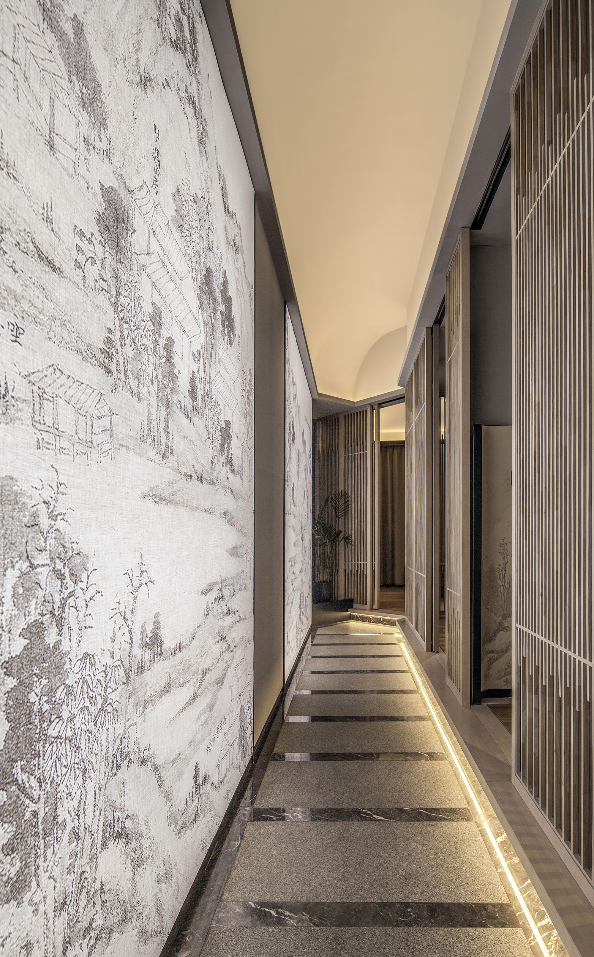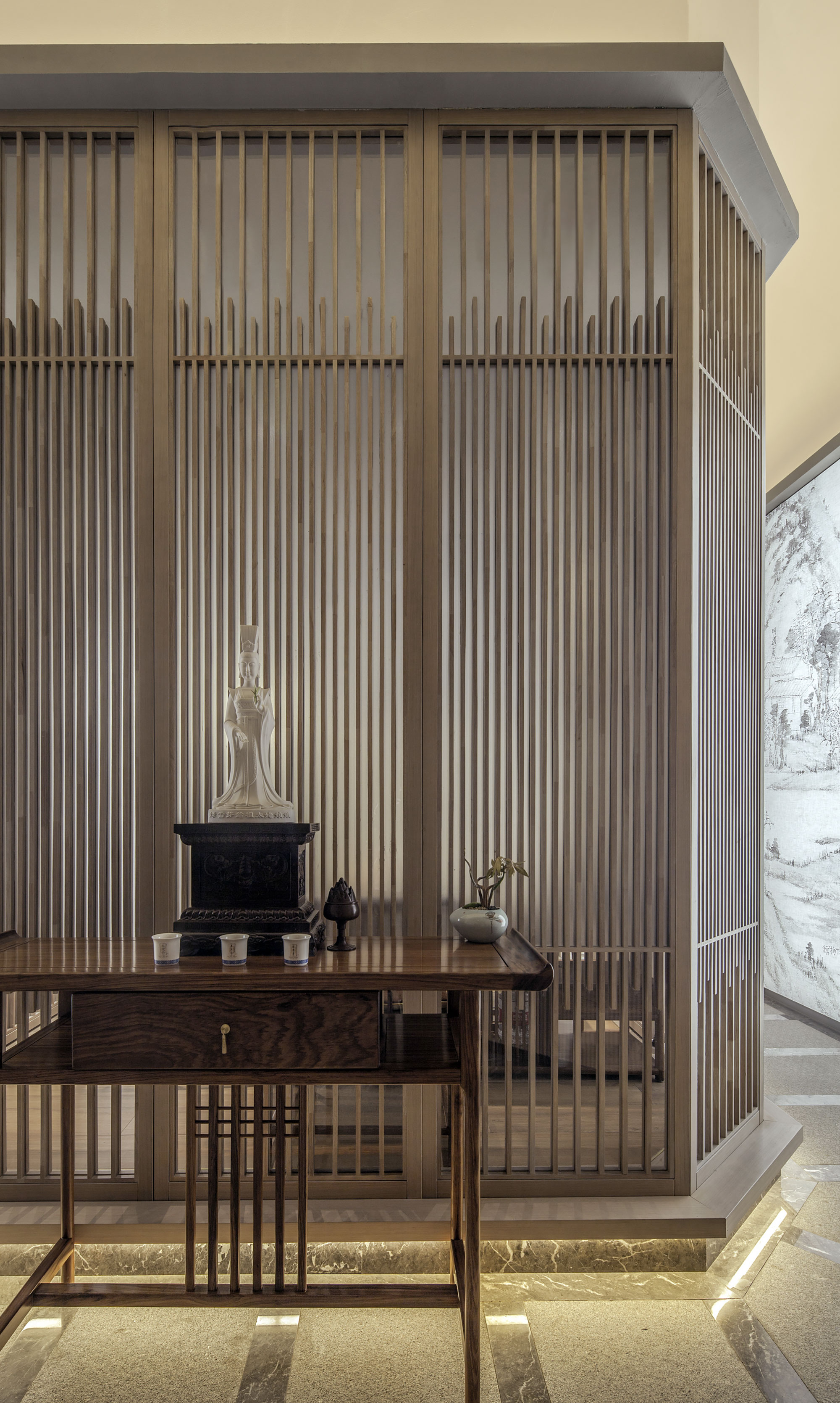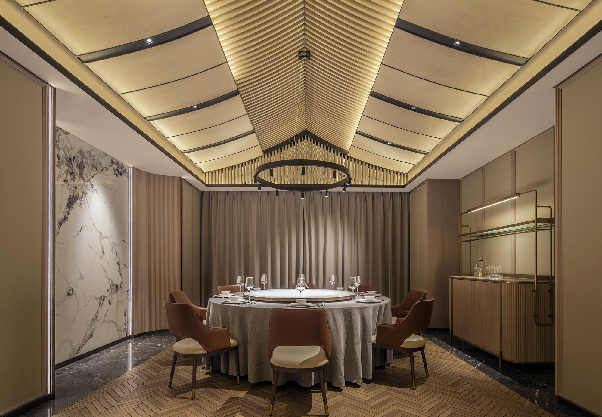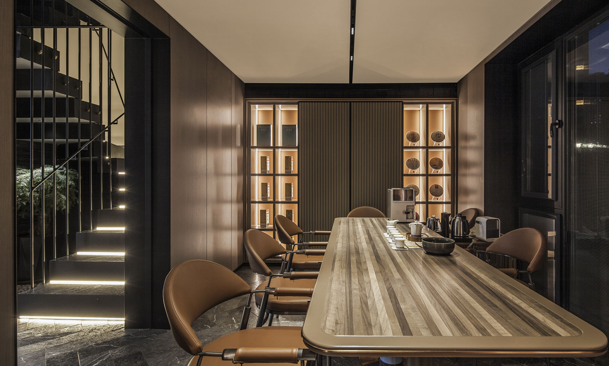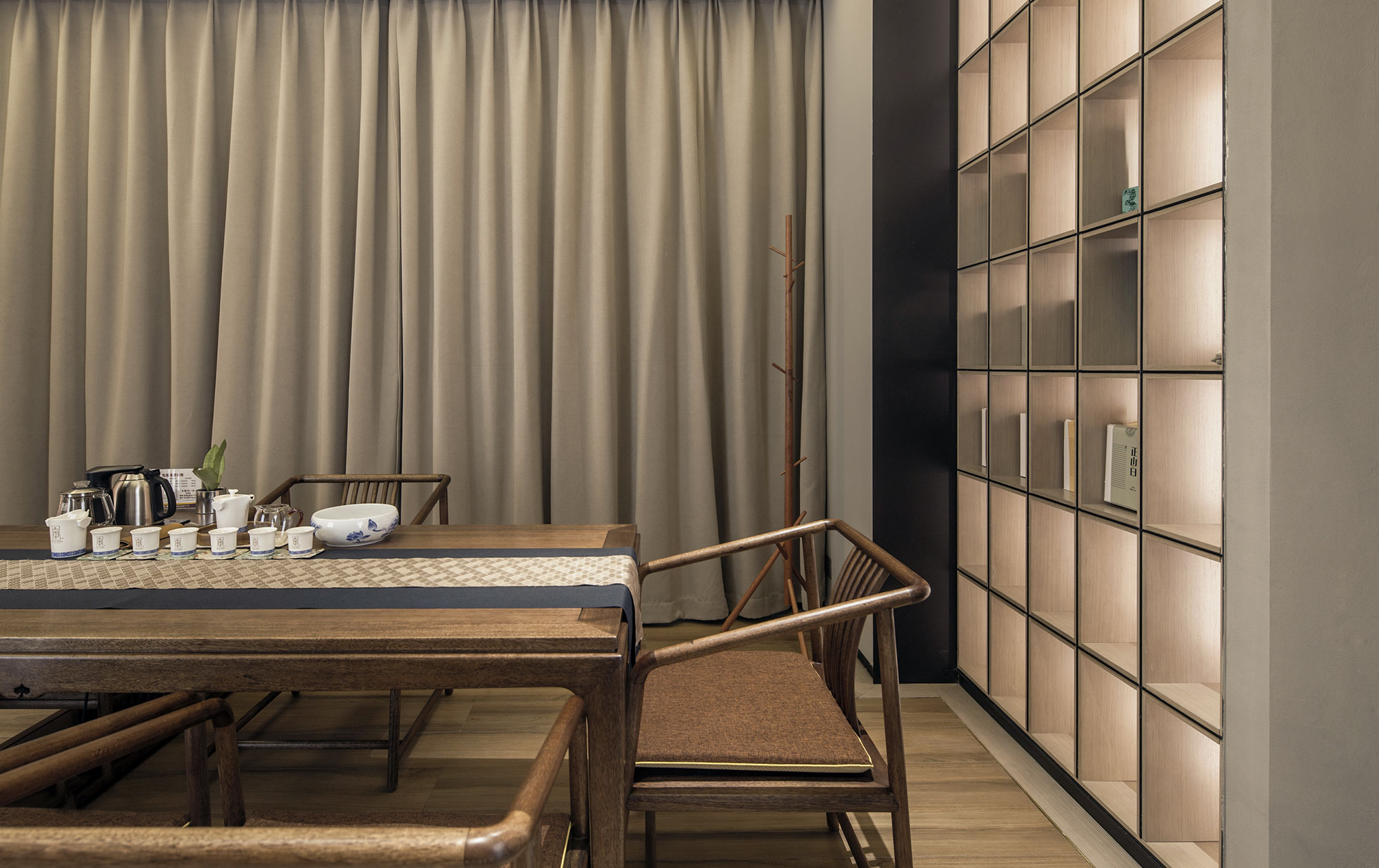 茶楼的风格多样,但以中式风格最能展示茶馆之神韵,以高空间,大深度的表现手法深化设计。材料一般以天然木材为主要装饰材料,保持材料的原始纹理与色泽。同时色彩使用得当,可以突出气氛。此方案以中式轻奢的风格让顾客在感受茶香的同时又不失场景带来的安逸。