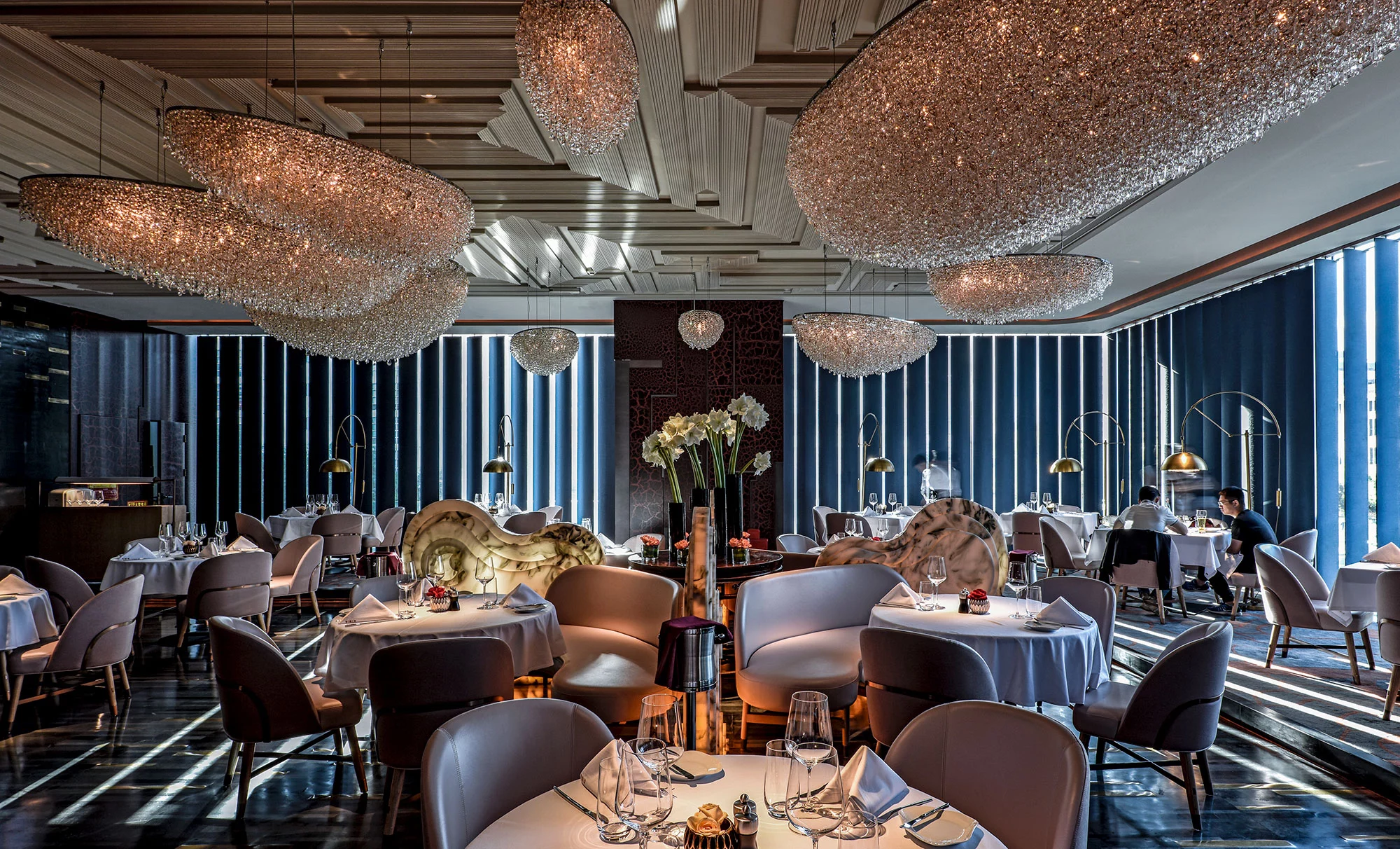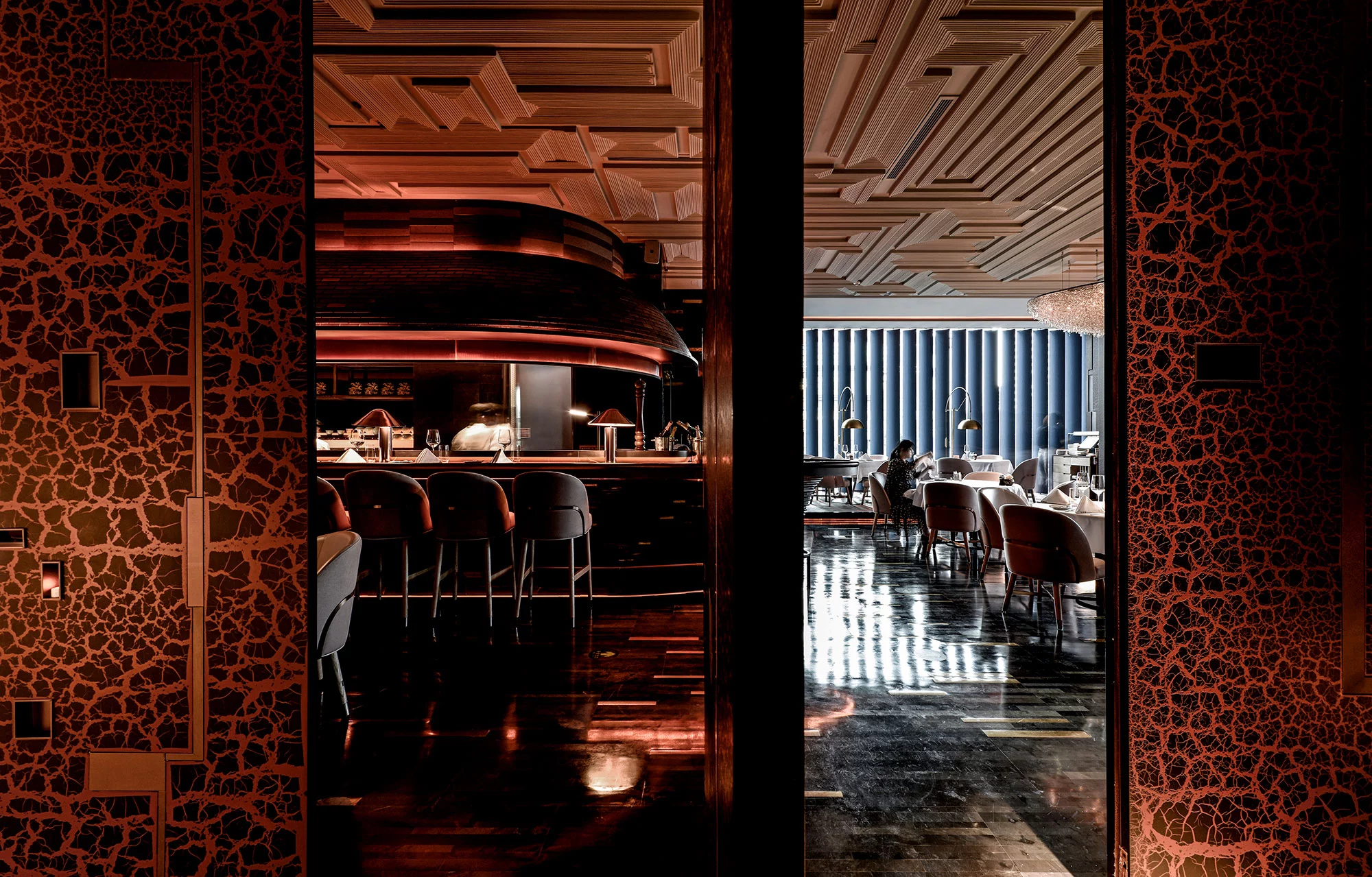 压力变成自信的动力,坚信这一发展投资,我们在这种形势下共同寻找空间的解决方案和商业定位,精准的商业分析才能准确的找出匹配空间形式。经过了几番分析与论证,在投资者的支持下,我们确立了以东方元素为平面材质与肌理,以西餐功能为辅的平面布局,形成一个以大东方审美观的生活方式。包容性美食观点,来展示时下国人对外来食物文化的新姿态,空间不用再追随功能与形式的统一,我们更自信自己的文化。