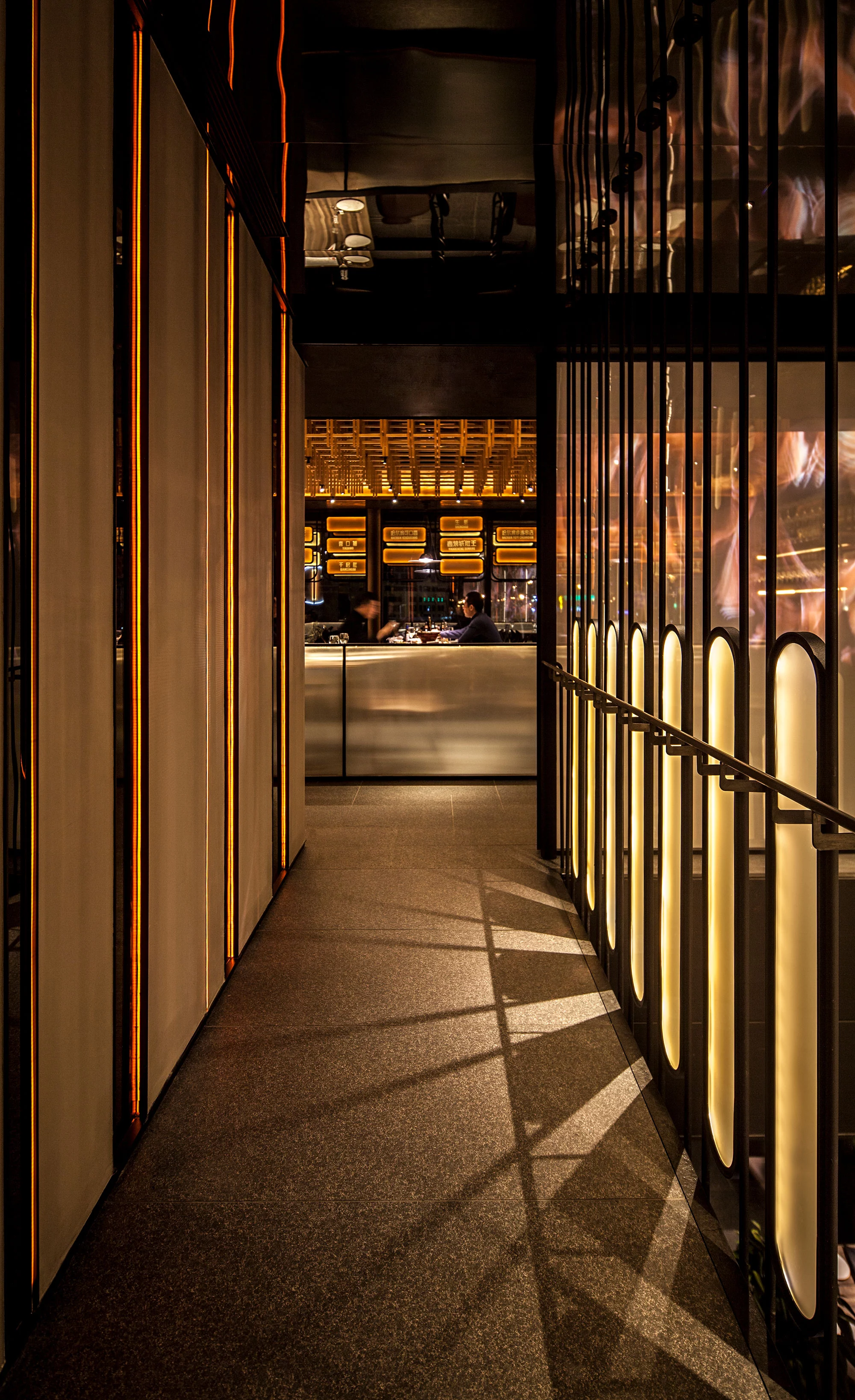 艺术玻璃加上灯光的照射给人一种朦胧与神秘感;灯光的变换赋予了空间更丰富的可能性。