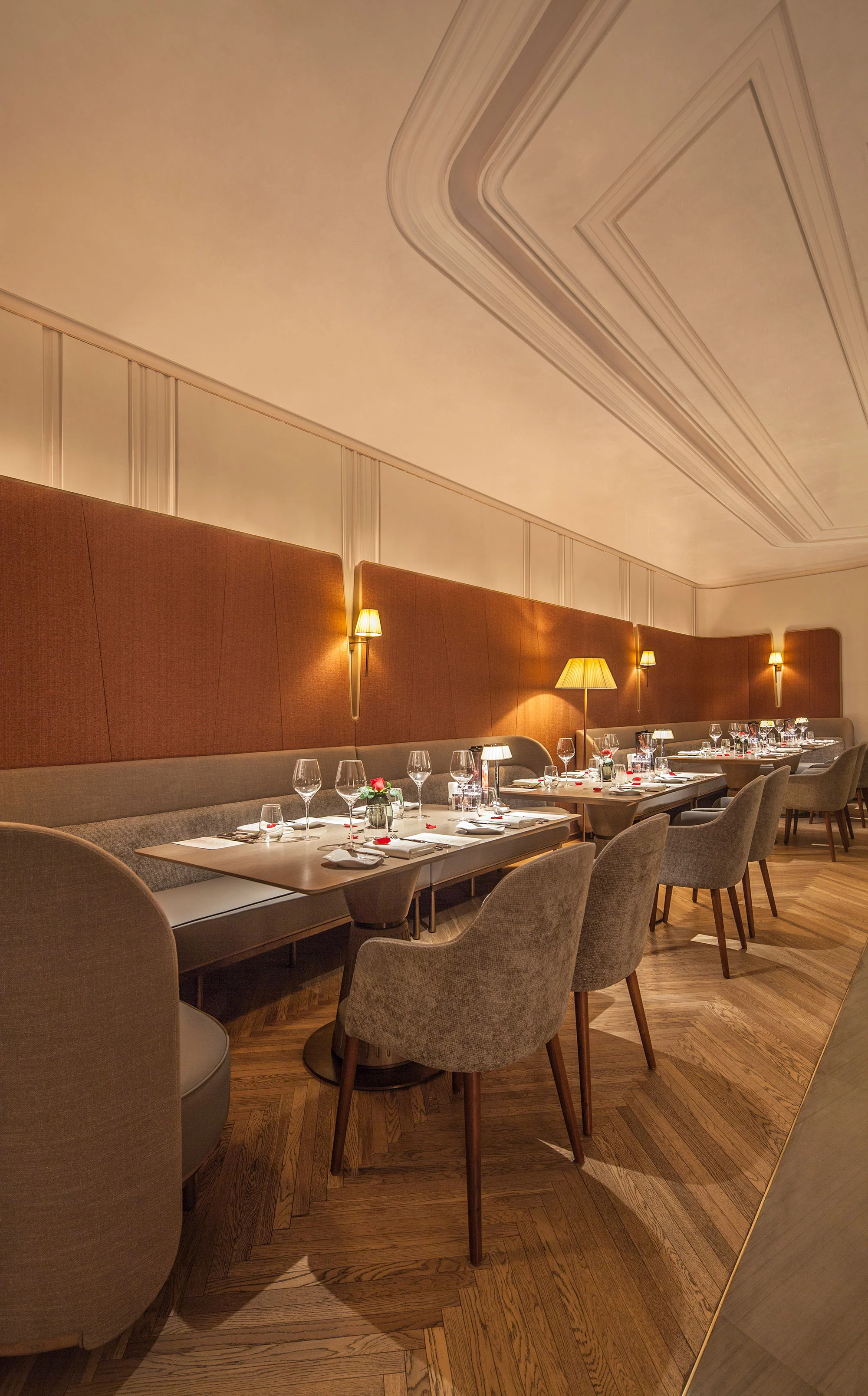 城市变迁的探索过程中充满体验感的空间具有令人向往的力量,它们将原本平凡的日常转化的充满异地特色,材质温润、色调柔和又充满活力,落地的玻璃幕墙围合出自然呼吸的内场空间,其内在是创造情感的视觉语境,温柔且优雅的诚邀客人共赴一场美食之约。