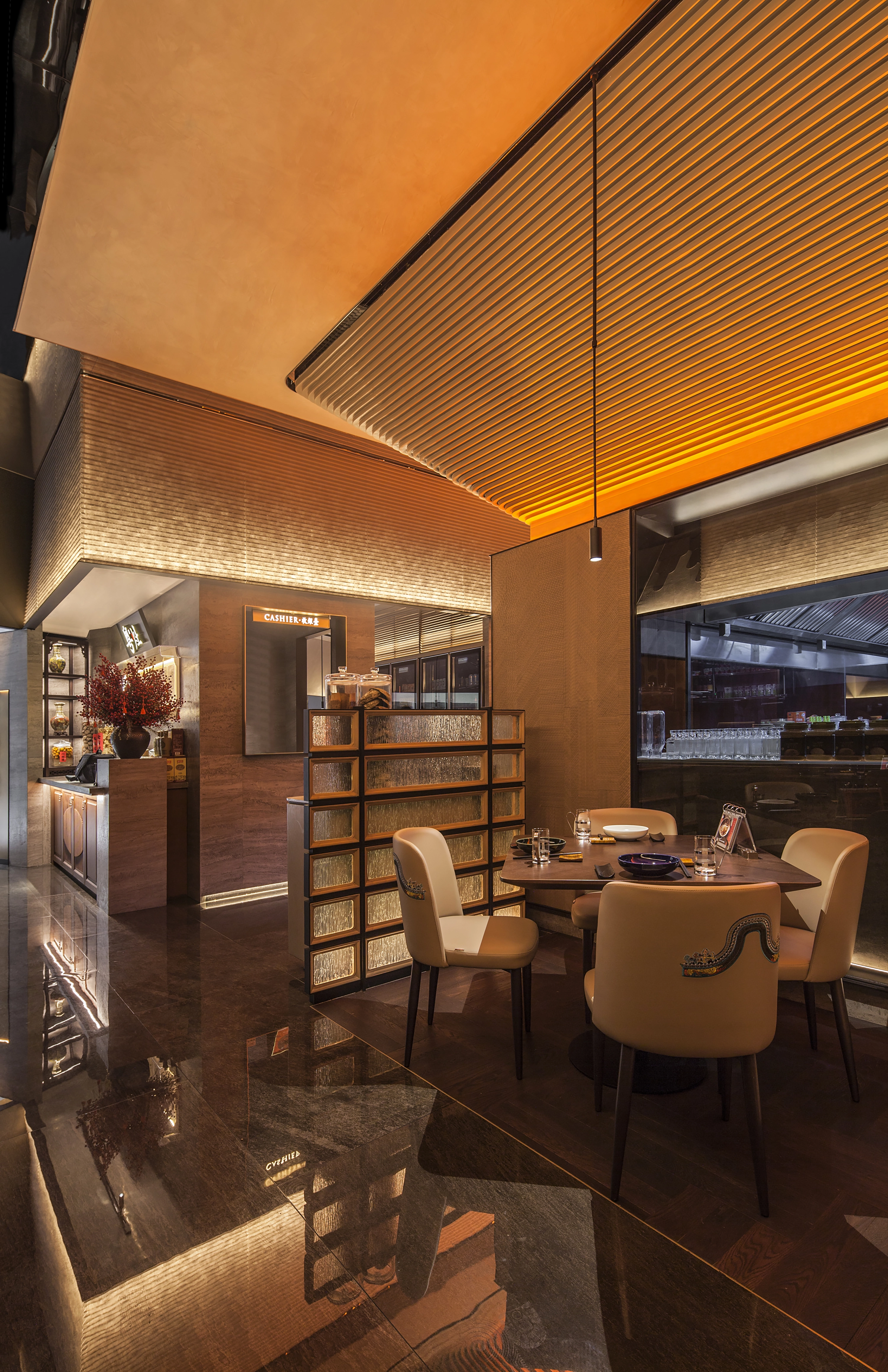 以核心“明厨”烹饪演绎制作,观赏互动成为空间核心主体,大有“广摄四旁,居中自定”的气度与自信。
