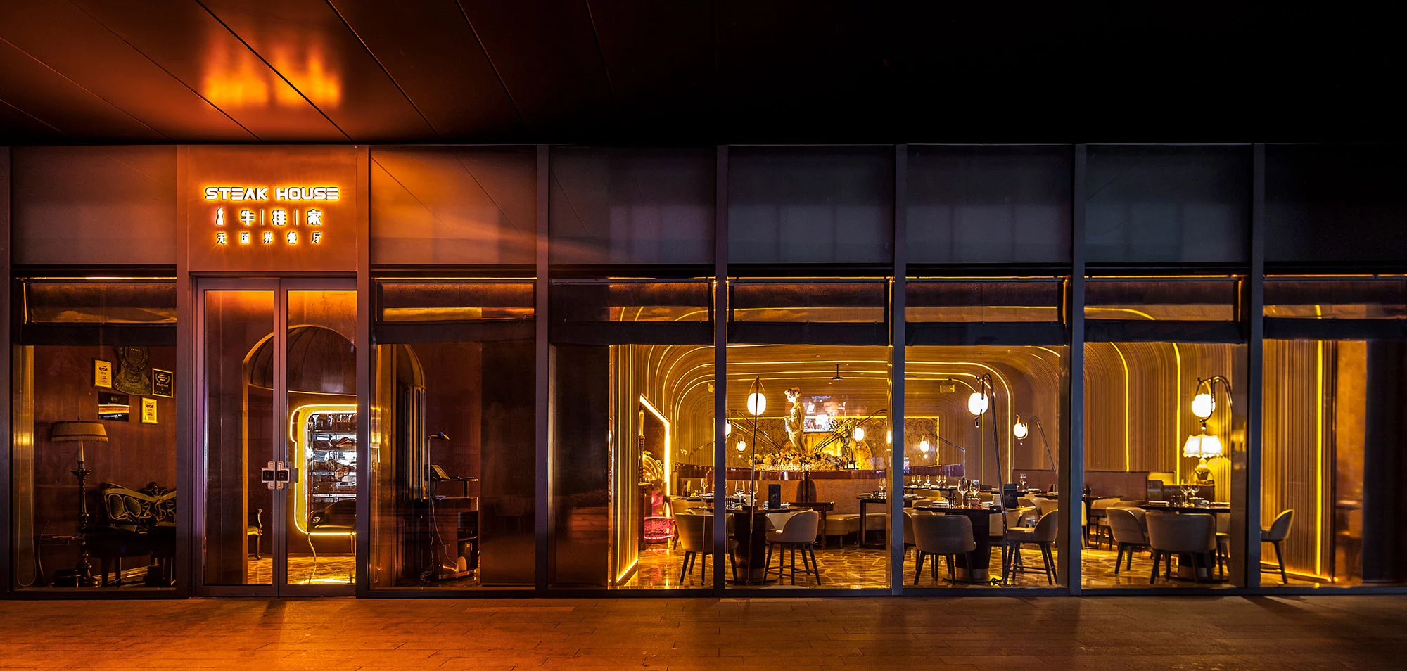 牛排家坐落在望京的步行街上,与其做出冲撞与对比的语言,不如去找寻一种空间的回归。最终呈现出具有新艺术运动风格的装饰效果。这是一次复古的尝试,也是对当下一些餐厅的反思,让人们有一种温暖与精致的空间体验。