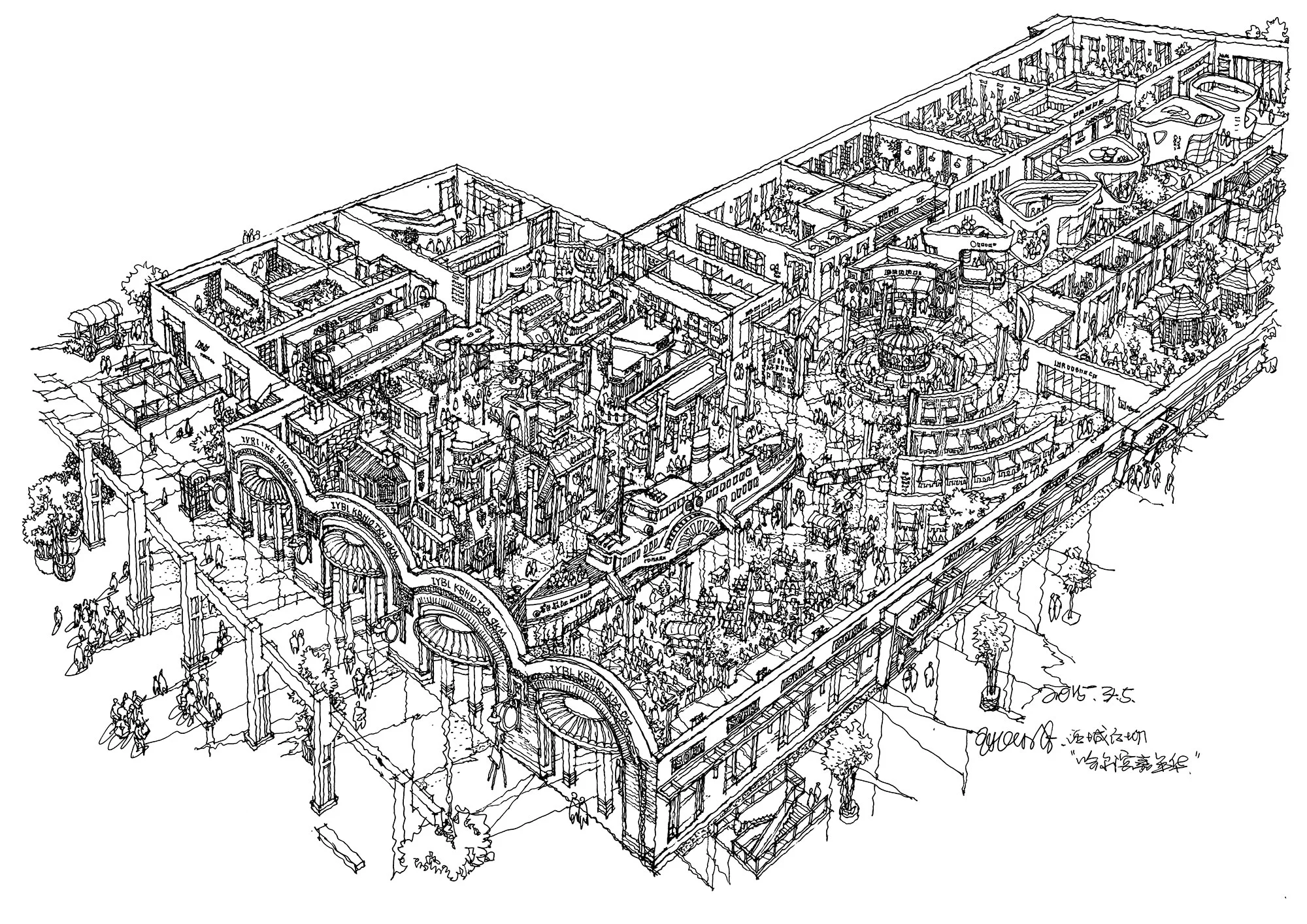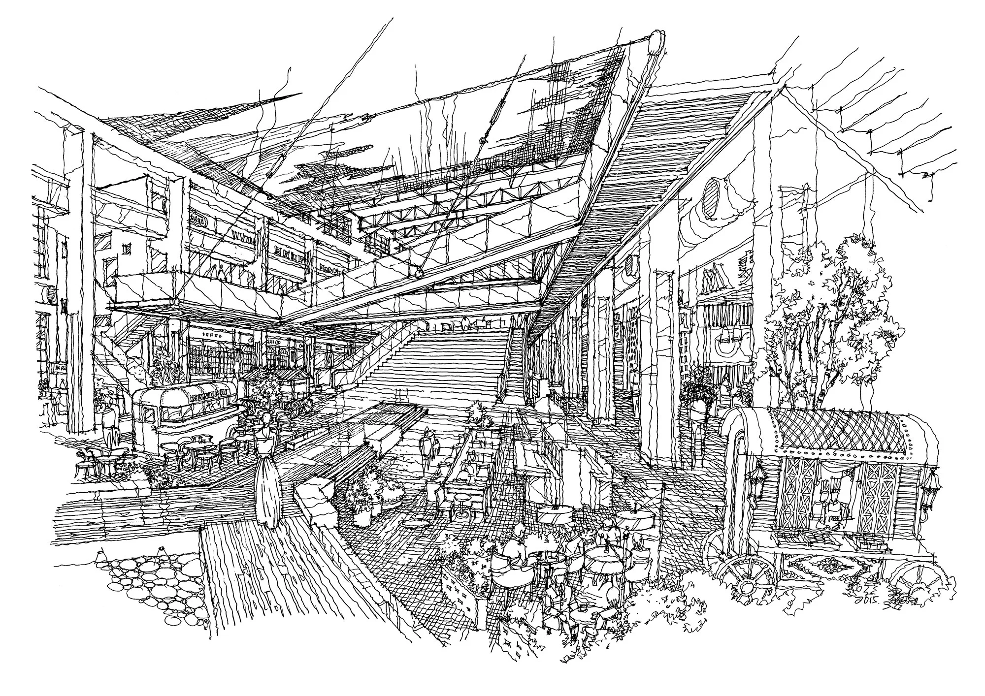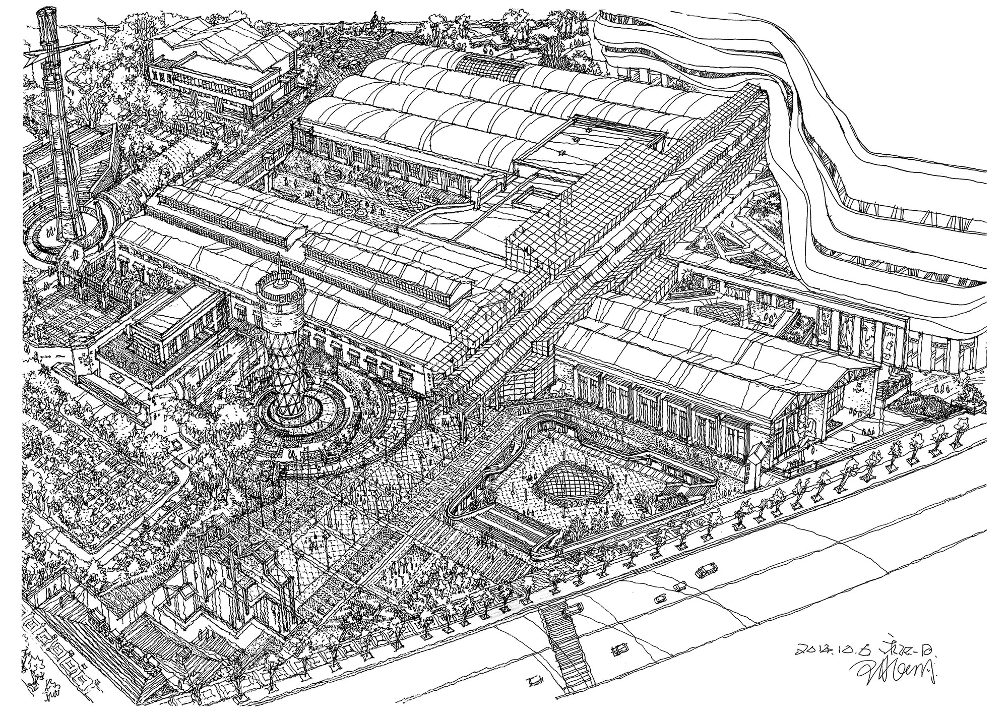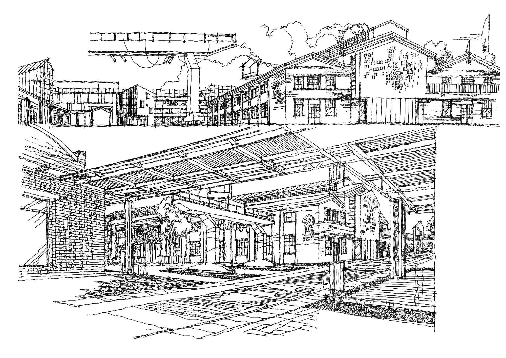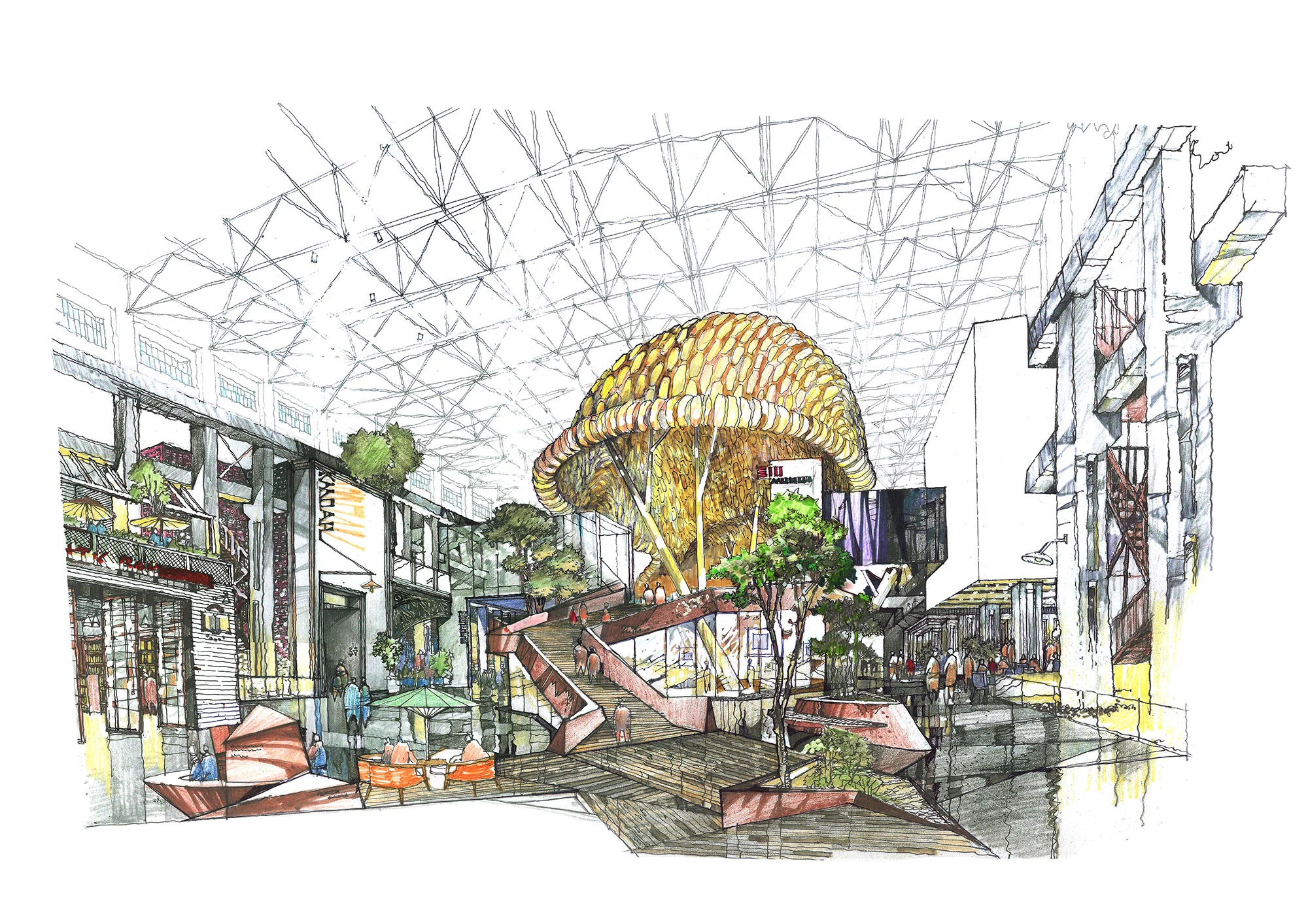 本次建筑设计原则上本着老的更老、新的更新,通过桁架结构及色彩有机的结合,为城市人们呈献一个优雅的文化艺术集群。