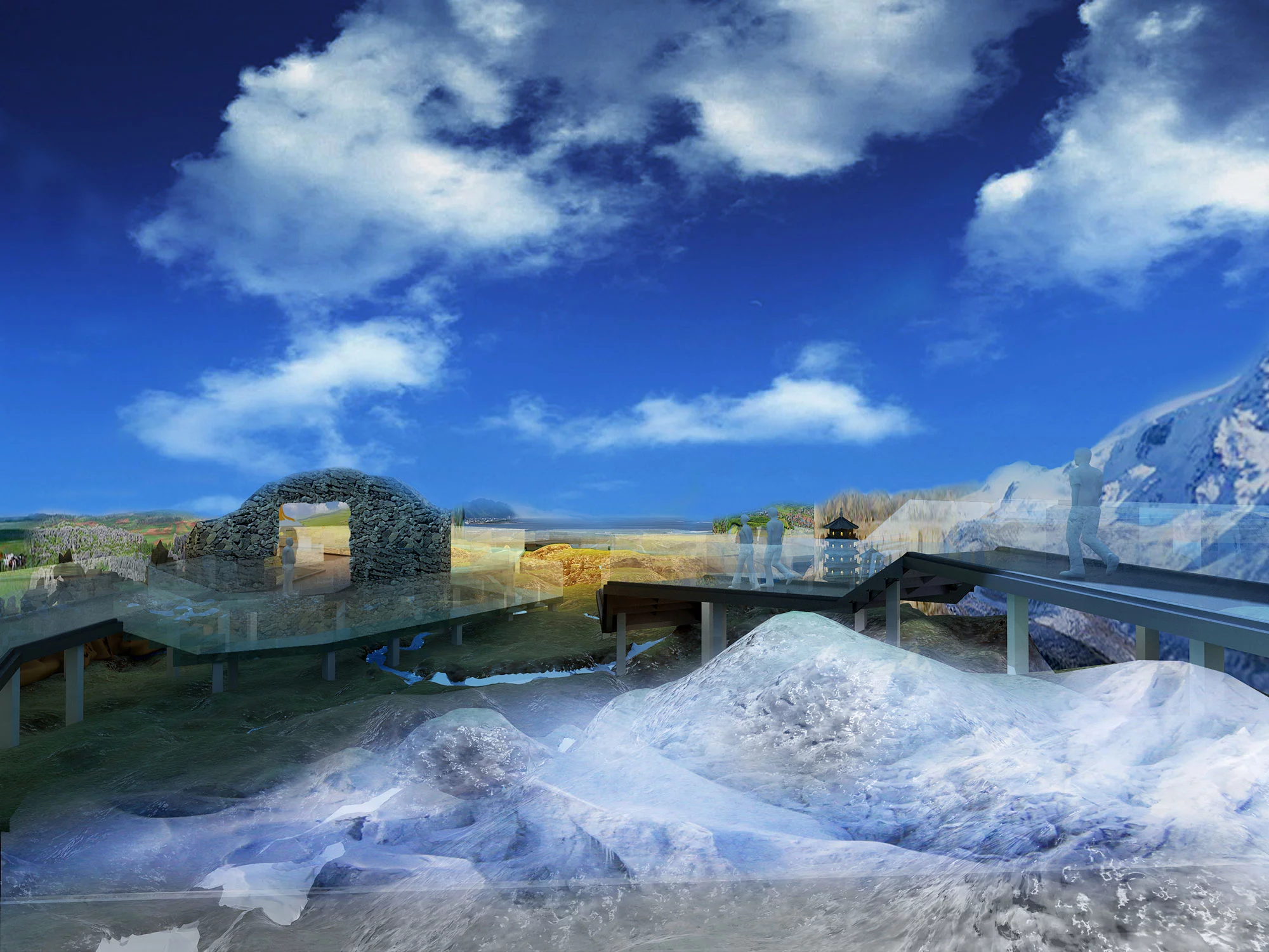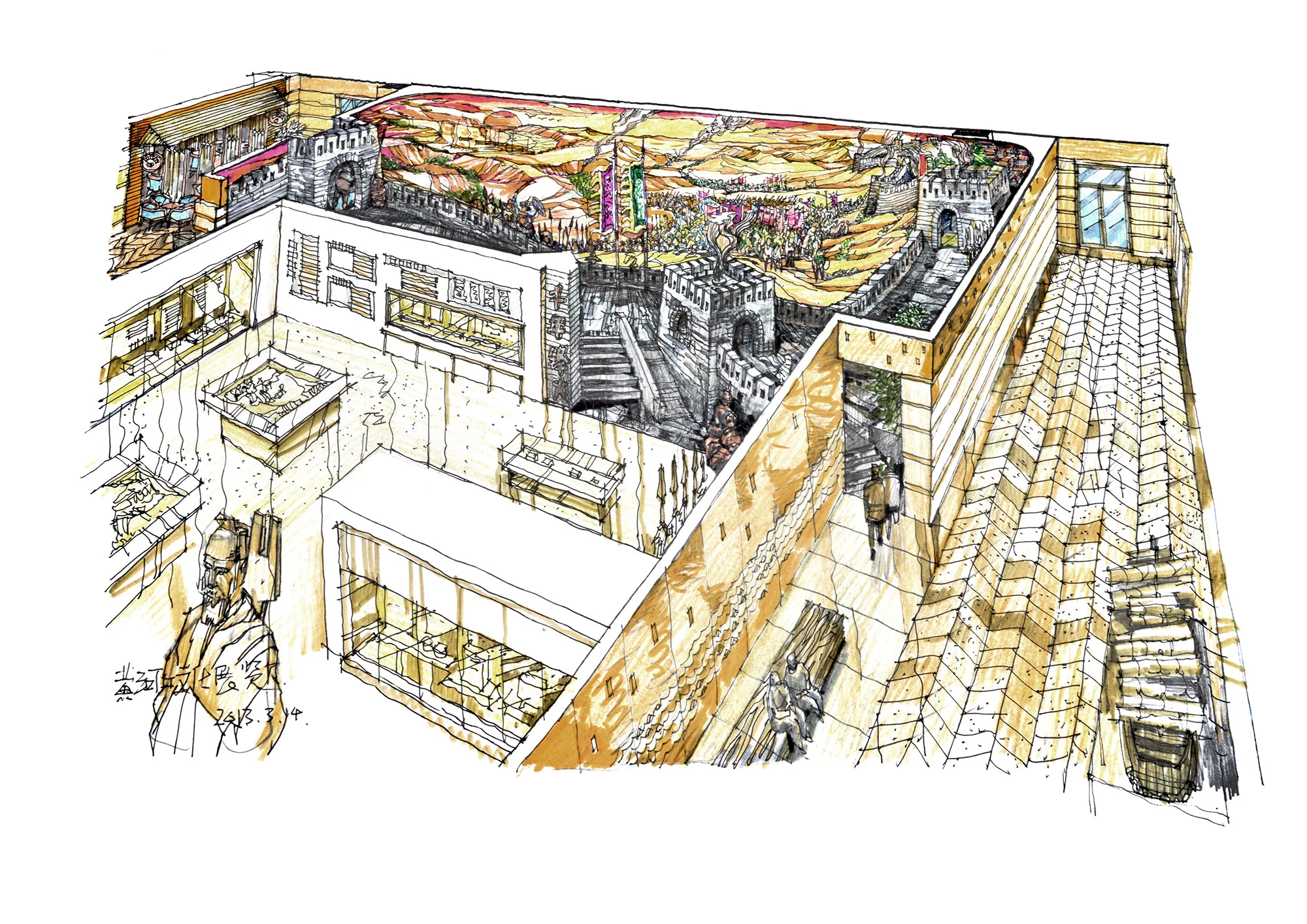 本案的设计主体是以黄河文化——世界上最古老的人类文明为主题的公益性博物馆。设计者喻浓情于其中,努力探求和思考将宏大而深远的黄河主题更完美地呈现。该方案运用赋予思想性艺术性的设计手法,将融合众多展品的八大主题展馆融入有限的展陈空间中,同时也要满足观展交通流线、商业休闲等公共空间的功能布局。使观展者通过浏览展示内容和体验展陈空间后,对黄河有更深层次的认识和感知,从而引发思考,体味黄河之魂与艺术相结合所散发的强大感召力,激发人们内心深处浓浓的黄河情。