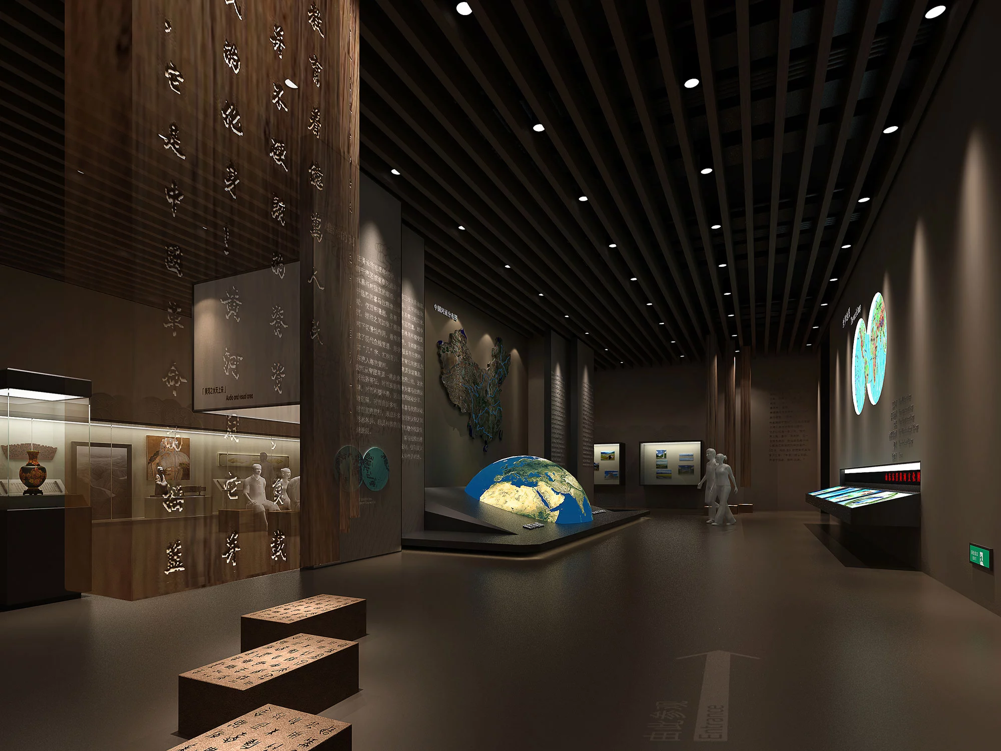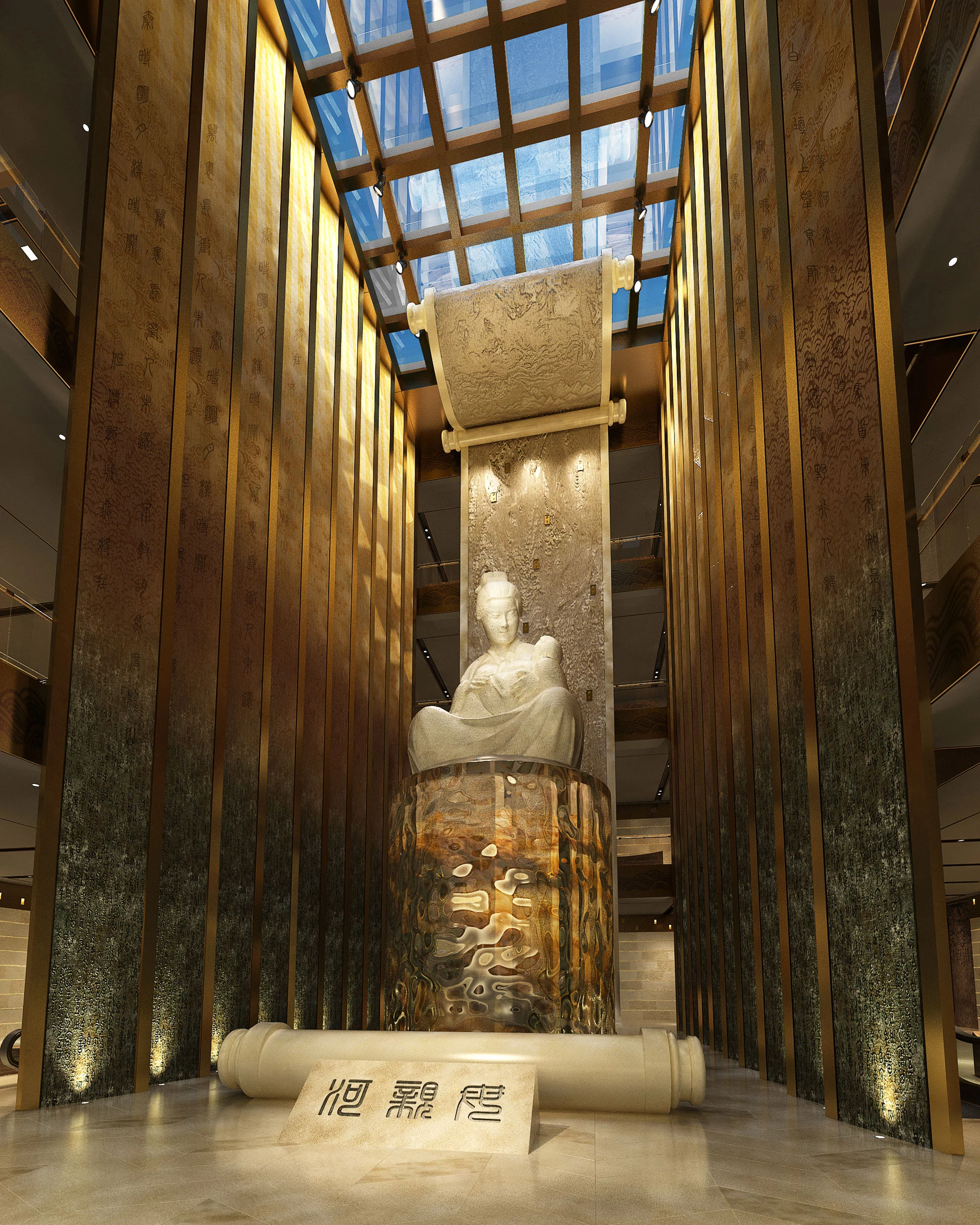展陈空间营造手法融入“无为而无所不为”的哲学思想,在空间中传递着以黄河为主轴的中原文化精神,体现出当代的价值观及中华民族的博大情怀。用现代的设计语言和文化观,诠释来自遥远黄河流域历经千百年前所未有、连绵不绝、不屈不挠、拼搏奋进的中华精神。
