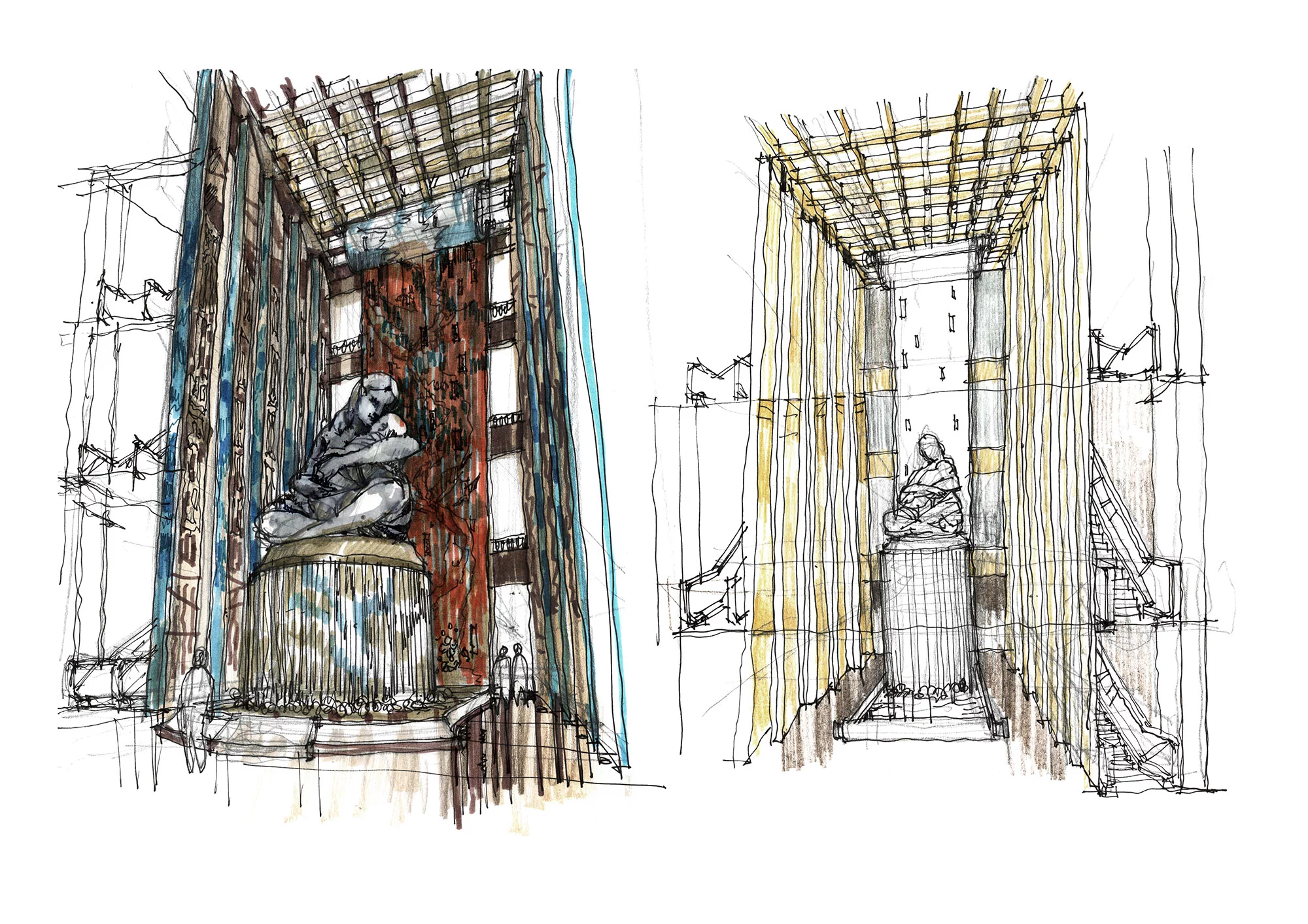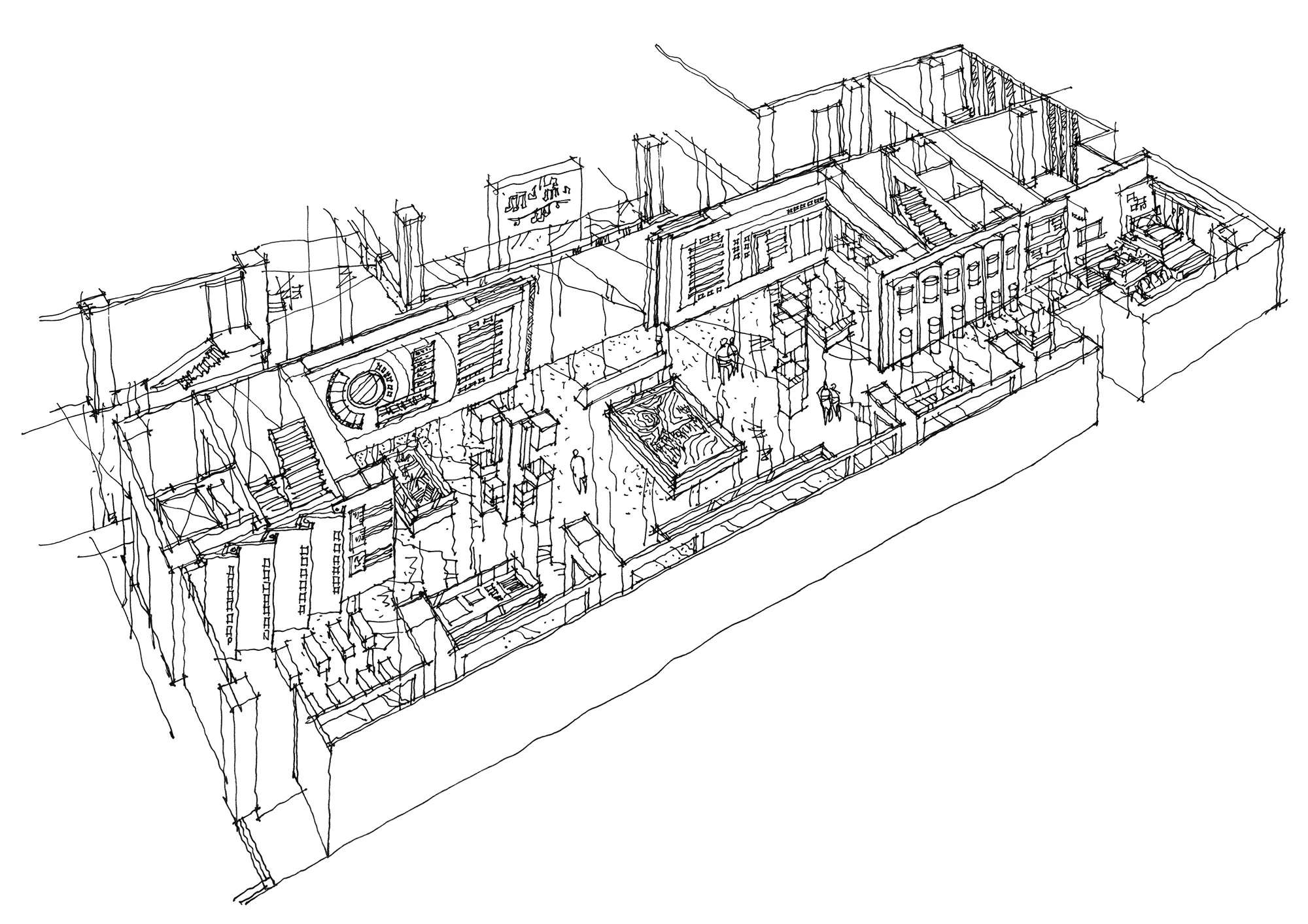 设计者对空间功能及整体风格进行了严密的推敲和精准的定位。观展空间的营造与建筑主题相融,整体风格既尊重主流文化——凝重沉稳,又具有时代气息——活跃灵动。