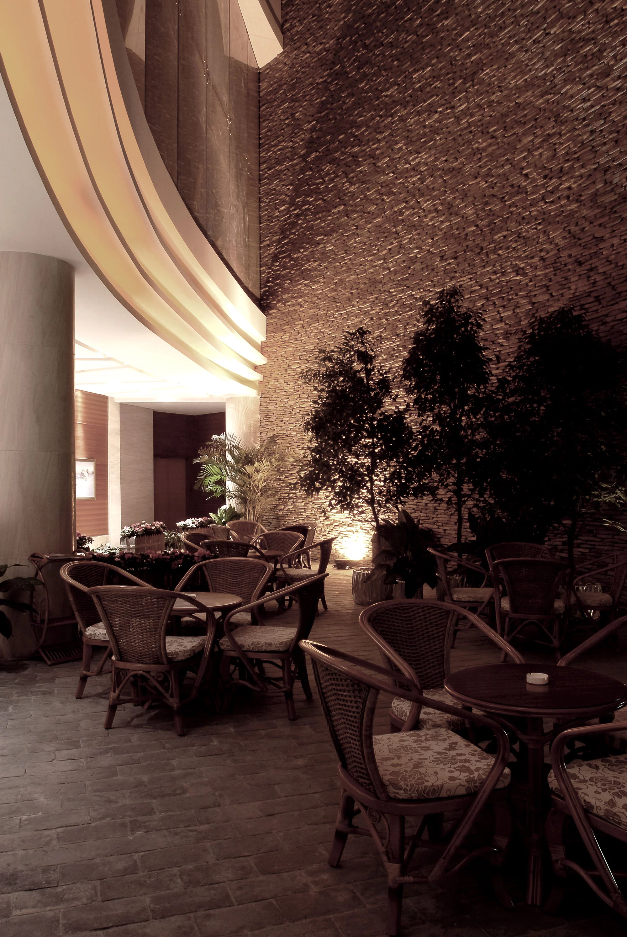 每个酒店空间在规划设计和建筑设计中都会投入了极大的精力,力求通过自己特殊的酒店特色满足人们不断提高的需要,从而可以把更多的客人吸引到酒店来。在设计的过程中,设计师们不断探索,设计出各种各样让人们印象深刻的设计方案与主题。接到本案后我们也在考虑这些问题,在看过众多酒店空间之后,我们发现虽然每位设计师都在各自的空间中创造特色。但总有一些共性存在,这其中就包括:材料、颜色的共性,这些共性不是设计师之间产生的默契,而是人们对酒店空间习惯性的需求,是一种自然而然的视觉需求。我们想摆脱这种“自然”是很难的,所以我们将中国传统风格和现代立体构成相结合,融入到自然中行成一种另样的“自然”