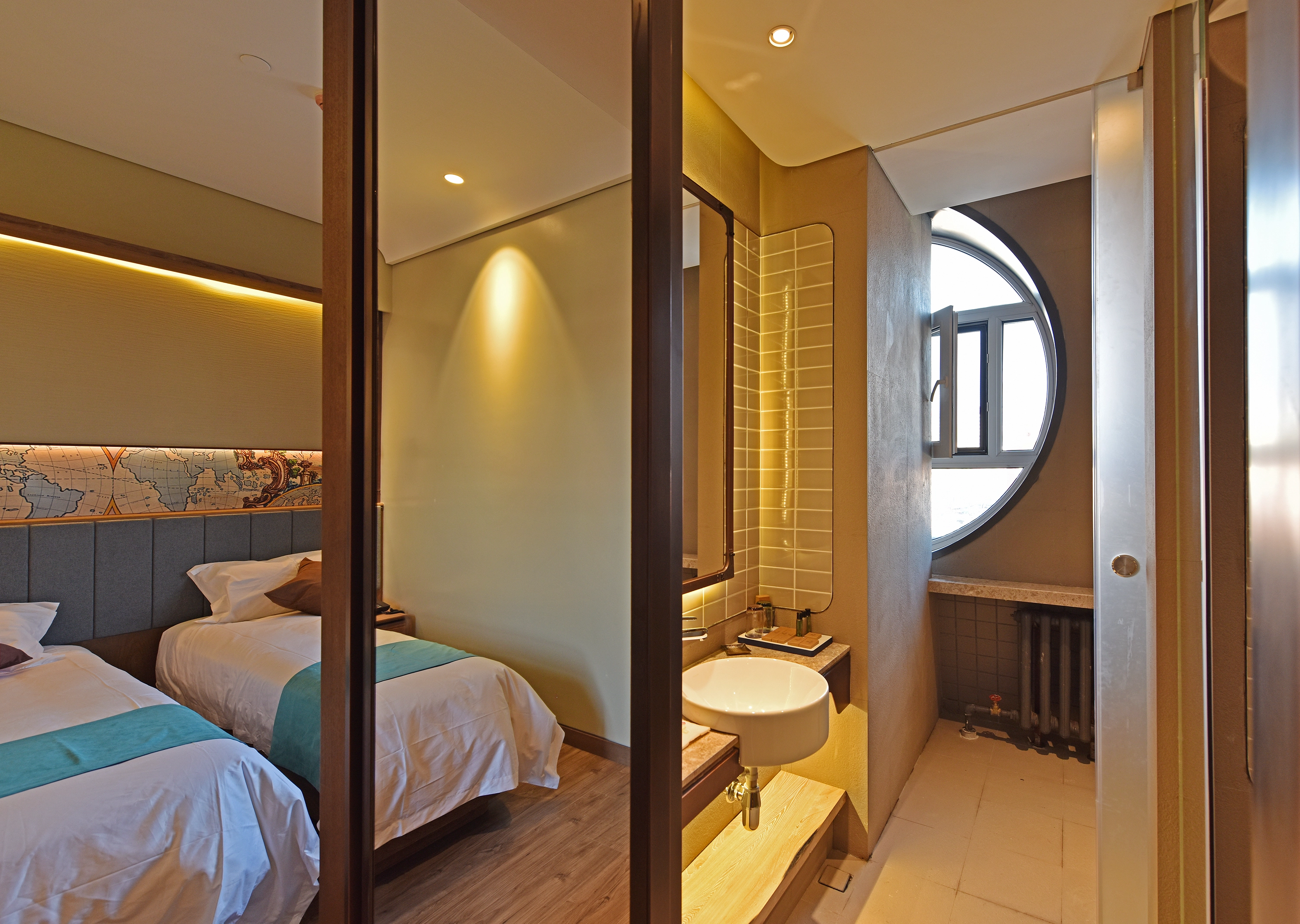她是这座城市进程重要的印记,也是一段百年航运文化的缩影,更是那段曾经历史的永恒!她依水而生,能俯瞰江水,亦可远眺江景,远观如景雅韵犹如一艘即将起航的巨轮正蓄势待发。走进工业风格的酒店里,仿佛穿越了时间,触摸了历史————江风轻柔,江鸥嬉戏,朝霞染红了江水,显得那样宁静与惬意,晨雾中驶来了一艘艘飘着白帆的渔船,水浪轻轻的拍打着船身,船尾留下了一条条发光的水痕,来往的船只穿梭在松花江面上,远处望去水天一色,傅家甸曾经的热闹景象如同昨日重现。